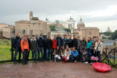 Der nächste Morgen begann mit dem Frühstück in einer Kaffeebar und dem Spaziergang zum „Mund der Wahrheit“ („bocca della verita“). Diese steinerne Fratze im Vorraum der Kirche „Santa Maria in Cosmedin“ wurde früher vermutlich zur Wahrheitsfindung eingesetzt. Der Verdächtige musste seine Hand in die Mundöffnung strecken und hoffen, dass sie nicht abgebissen wurde – was einer Verurteilung gleichkam. So streckten auch die Jugendlichen mit gemischten Gefühlen ihre Hand in die Öffnung – und konnten sie glücklicherweise auch alle wieder unversehrt herausziehen!