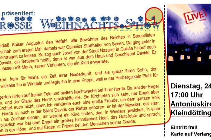 Zu einer "Grossen Weihnachts-Show" waren die Leute an Heiligabend in die Antoniuskirche Kleindöttingen eingeladen - und erlebten gemeinsam die Weihnachtsgeschichte neu.