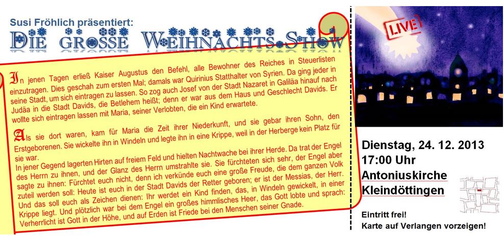 "Es begab sich aber in unserer Zeit..." Weihnachtsspiel an Heiligabend