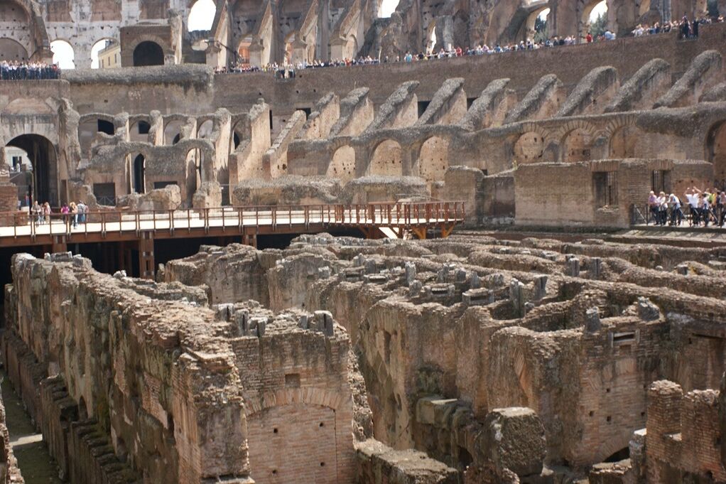 Nach dem Frühstück am nächsten Morgen führte die Metro-Fahrt zur Laterankirche, deren Grösse und Pracht alle überwältigte. Von dort ging es mit dem Bus weiter zum Kolosseum und danach zu Fuss über den Palatin und das „Forum Romanum“. Die Überreste lassen auch heute noch die riesigen Dimensionen und prächtige Ausstattung der früheren Palast- und Tempelanlagen erahnen. Vorbei am „Marmertinischen Kerker“, wo Petrus und Paulus einst gefangen gehalten worden waren, wanderten die jungen Pilger aus dem Aargau über den Kapitolshügel zum Nationaldenkmal. Wer schwindelfrei war, fuhr mit dem Lift auf die 70m höher gelegene Dachterrasse und genoss von dort abermals einen phantastischen Rundblick über die Stadt. Inzwischen sehnten sich alle nach einem ersten „Gelati“, und dieser Wunsch wurde in der Nähe des Pantheon im Zentrum der Altstadt verwirklicht. Zum Abendessen gingen alle dann in die Nähe des Trevi-Brunnen, der allerdings zurzeit einen enttäuschenden Anblick bietet: wegen Restaurierungsarbeiten infolge Vandalismus ist der grösste Teil der Fassade eingerüstet, es fliesst kein Wasser und auch die Beleuchtung ist ausgeschaltet.