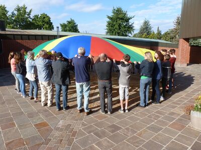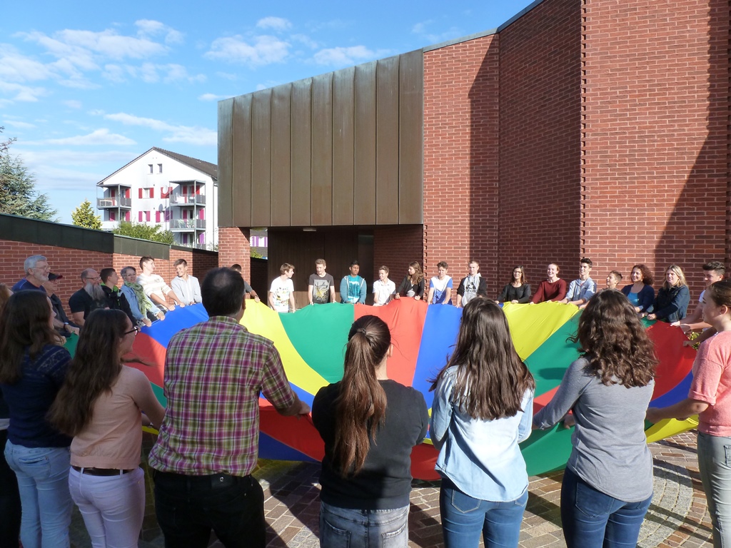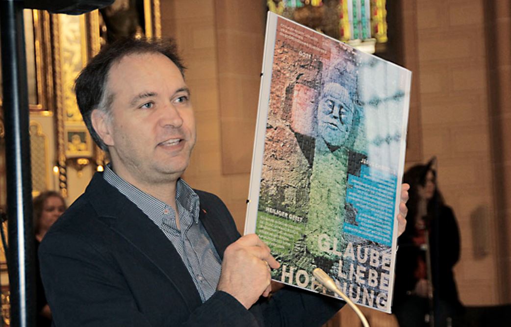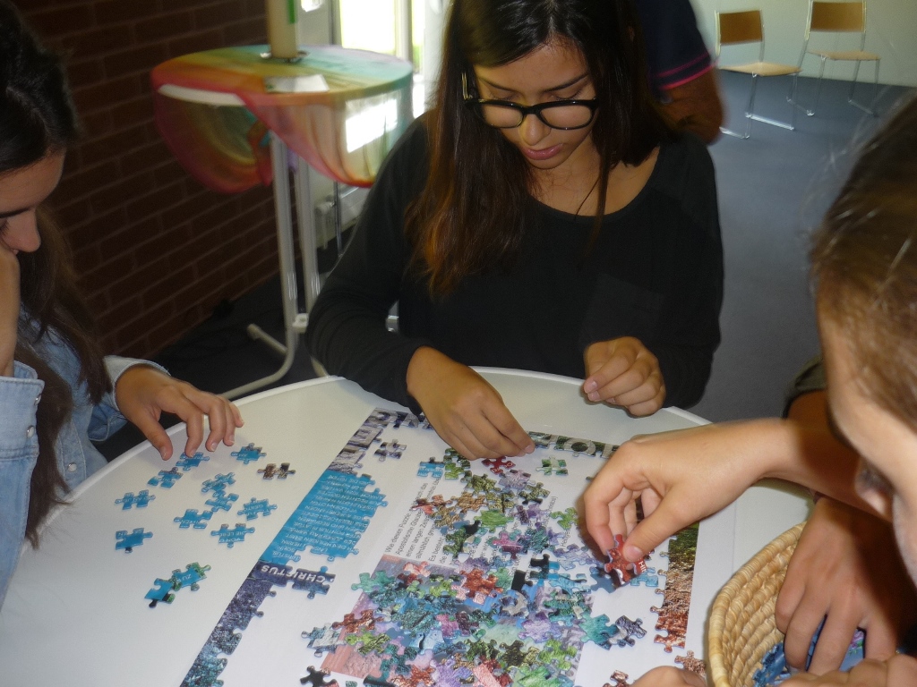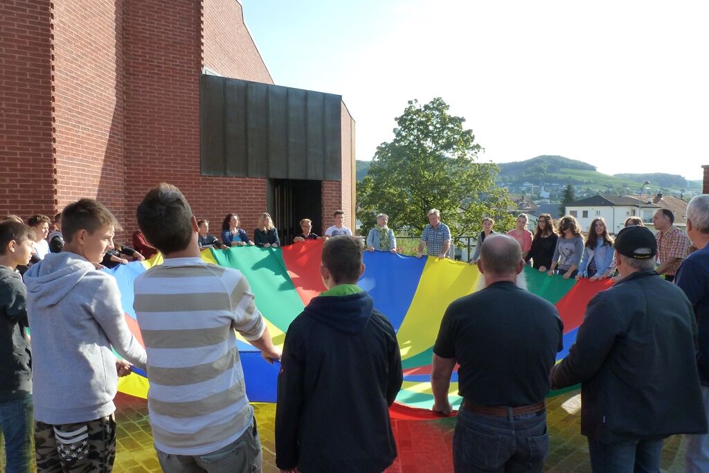Jugendseelsorger Thomas Scheibel verglich bei der Begrüssung den Glauben mit einem Puzzle. Die ersten Teile werden bei der Taufe ausgelegt. Eltern und Paten, später der Religionsunterricht helfen dabei, immer neue Teile hinzuzufügen, bis ganz allmählich aus vielen Einzelteilen ein Bild entsteht. Dieses Puzzle-Bild ist mit der Firmung natürlich keineswegs fertig. Es bestehen noch immer Lücken, die im Laufe des Lebens gefüllt werden. Oder vielleicht entdeckt man auch einmal ein Teil, das an einer falschen Stelle liegt und verschoben werden muss.