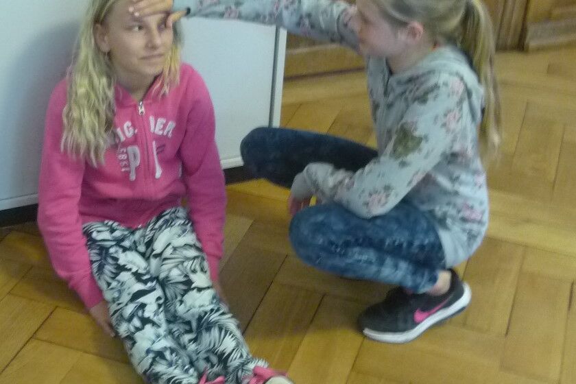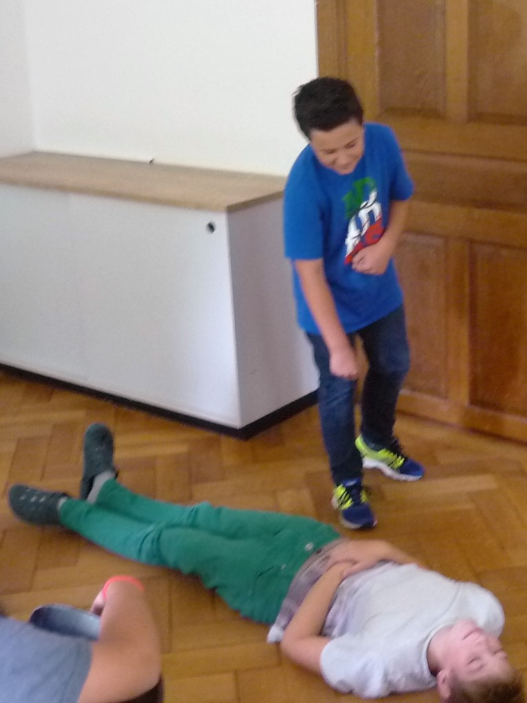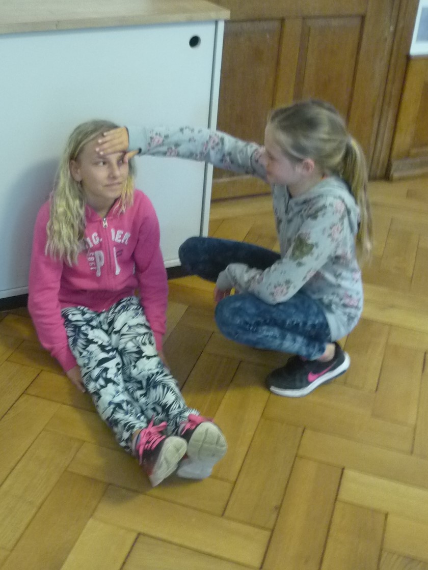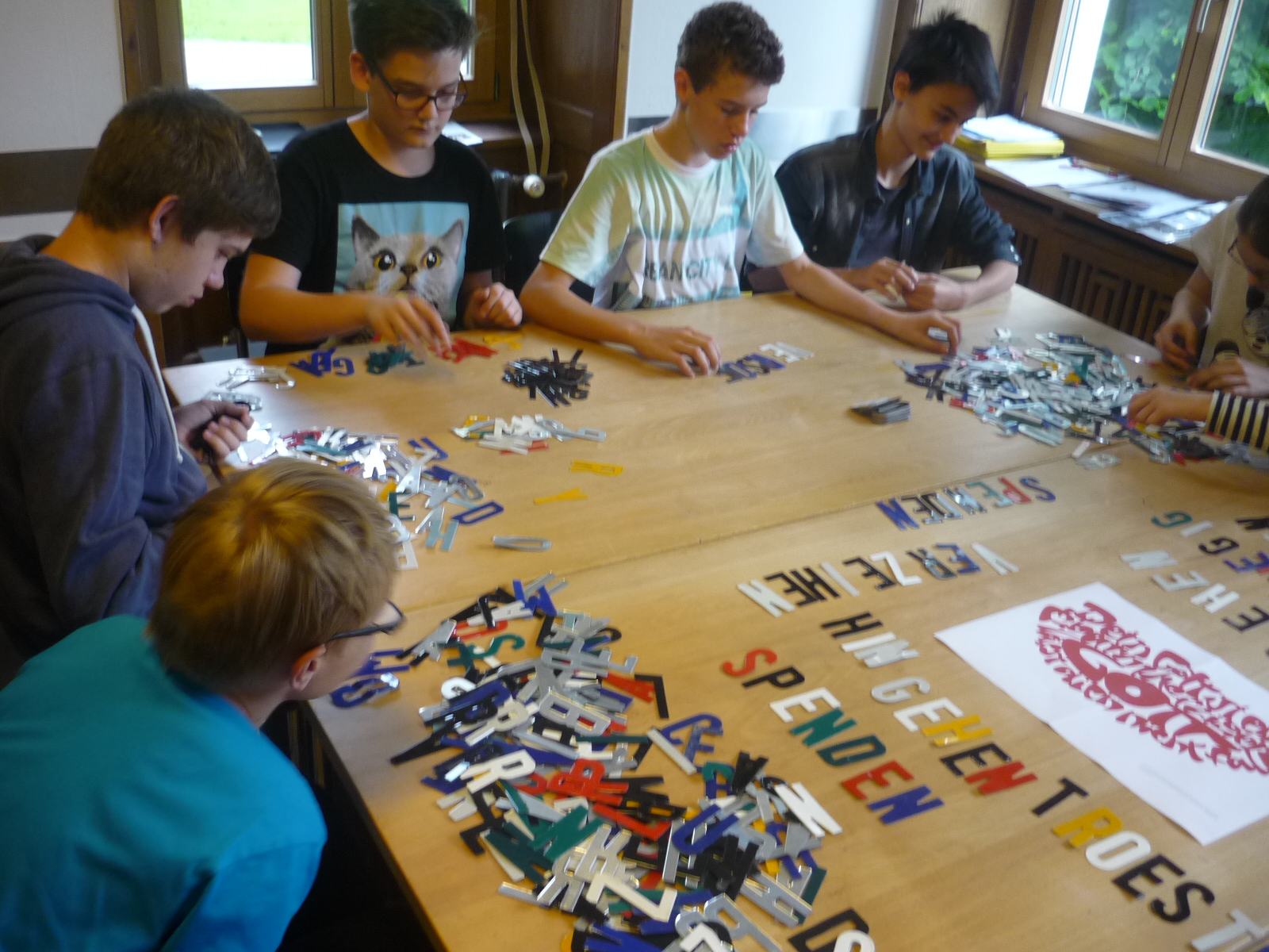 in diesem "Heiligen Jahr der Barmherzigkeit" stand ein Bibelwort aus dem alttestamentlichen Buch Deuteronomium im Mittelpunkt: "Dein Gott ist ein barmherziger Gott; er lässt dich nicht fallen." (Dtn 4,31) Die Jugendlichen konnten auf mehrfache Weise erfahren, dass dieser Zuspruch jeder und jedem Einzelnen von ihnen gilt. Sie hörten die neutestamentliche Geschichte, die am kommenden Sonntag auch im Gottesdienst vorgelesen wird. Eine Frau macht sich mutig zu Jesus auf den Weg machte, obwohl sie in den Augen ihrer Mitmenschen als Sünderin gilt und keinerlei Achtung geniesst. Aber Jesus kümmert sich genauso um sie wie um alle anderen, vermeintlich "gerechten" oder "frommen" Menschen; so macht er die Barmherzigkeit Gottes erfahrbar. Die Kirche kennt verschiedene "Werke der Barmherzigkeit", welche die Jugendlichen zunächst theoretisch und spielerisch erfahren durften. Wenn dann aber drei ältere Oberstufenschülerinnen und -schüler zusammen mit Pfarrer Stefan Essig Pizza backen, 9 kg Kartoffeln in Pommer Frites verwandeln und nebenbei noch Zopf fürs z'Morge am Sonntag backen, dann wird "Hungrige Speisen" plötzllich ganz konkret. Wenn Leiterinner und Leiter von Jungwacht und Blauring Leuggern extra am Samstag anreisen, um ein Nachmittagsprogramm mit den Jugendlichen zu gestalten, dann könnte man das durchaus als "Kranke besuchen" durchgehen lassen. Und "Trauernde trösten" könnte auch heissen, jemandem über Heimweh hinweghelfen. Viele Beispiele aus ihrem Alltag konnten auch die 9 Buben und 14 Mädchen beisteuern, in denen sie ertragen, trösten, teilen und helfen.