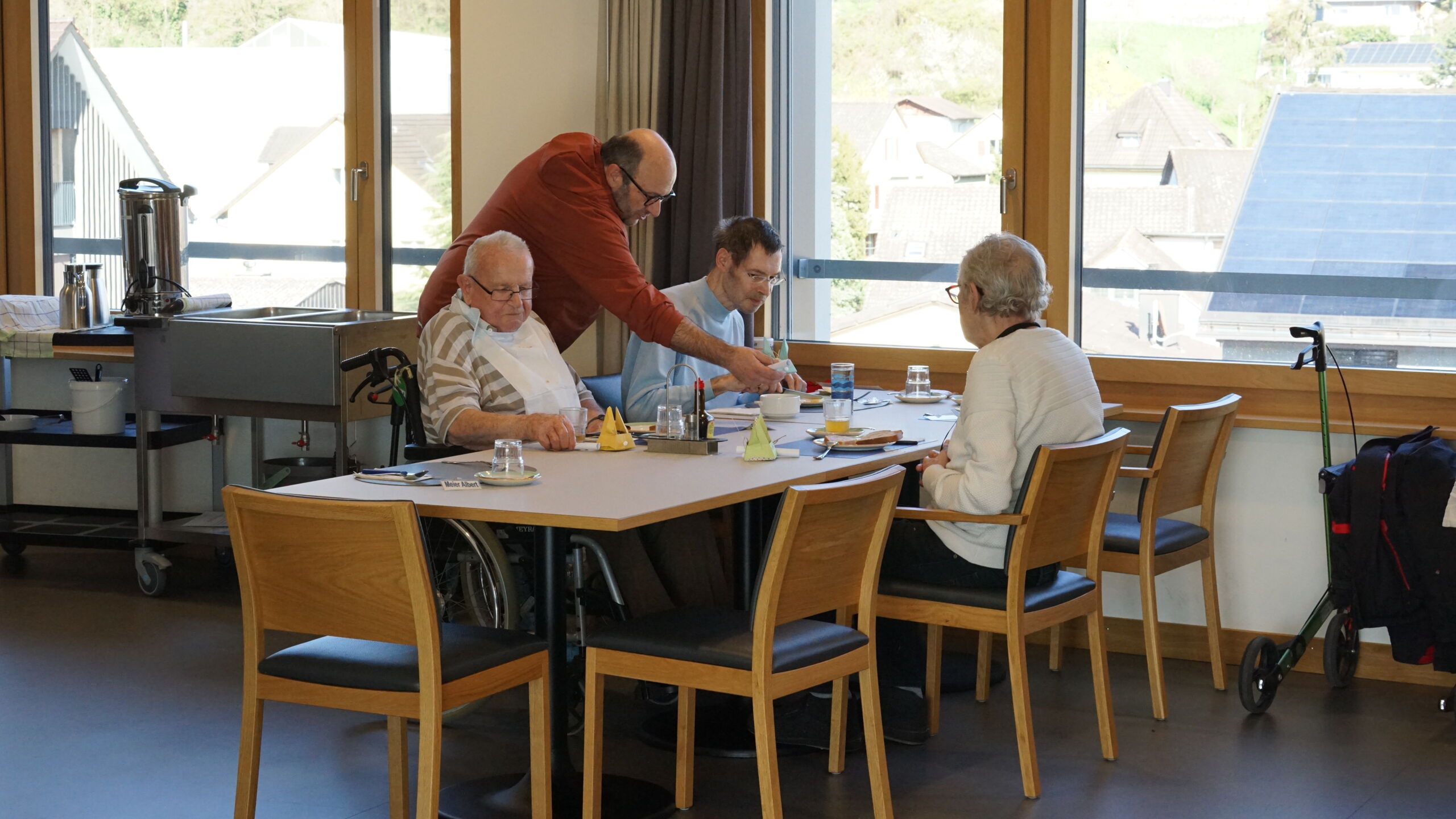 Das Kernteam der Pfarrei überrascht die Bewohner*innen der "Aareperle" Döttingen