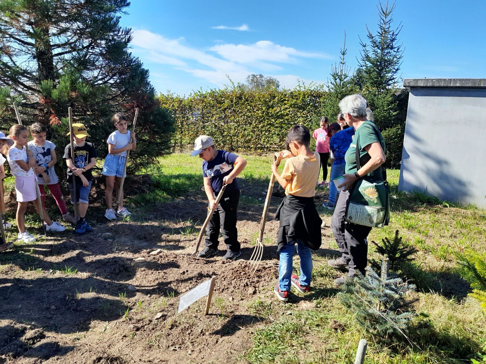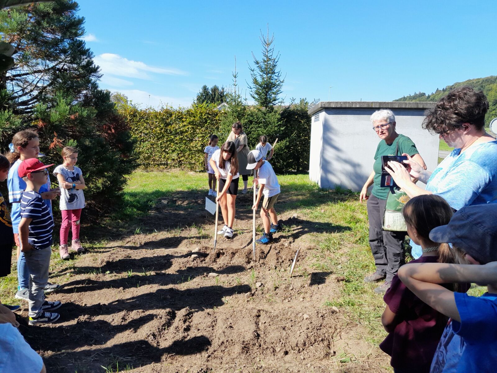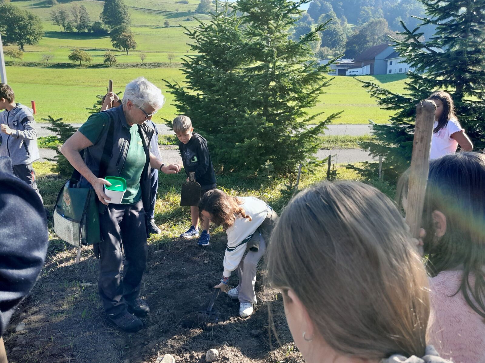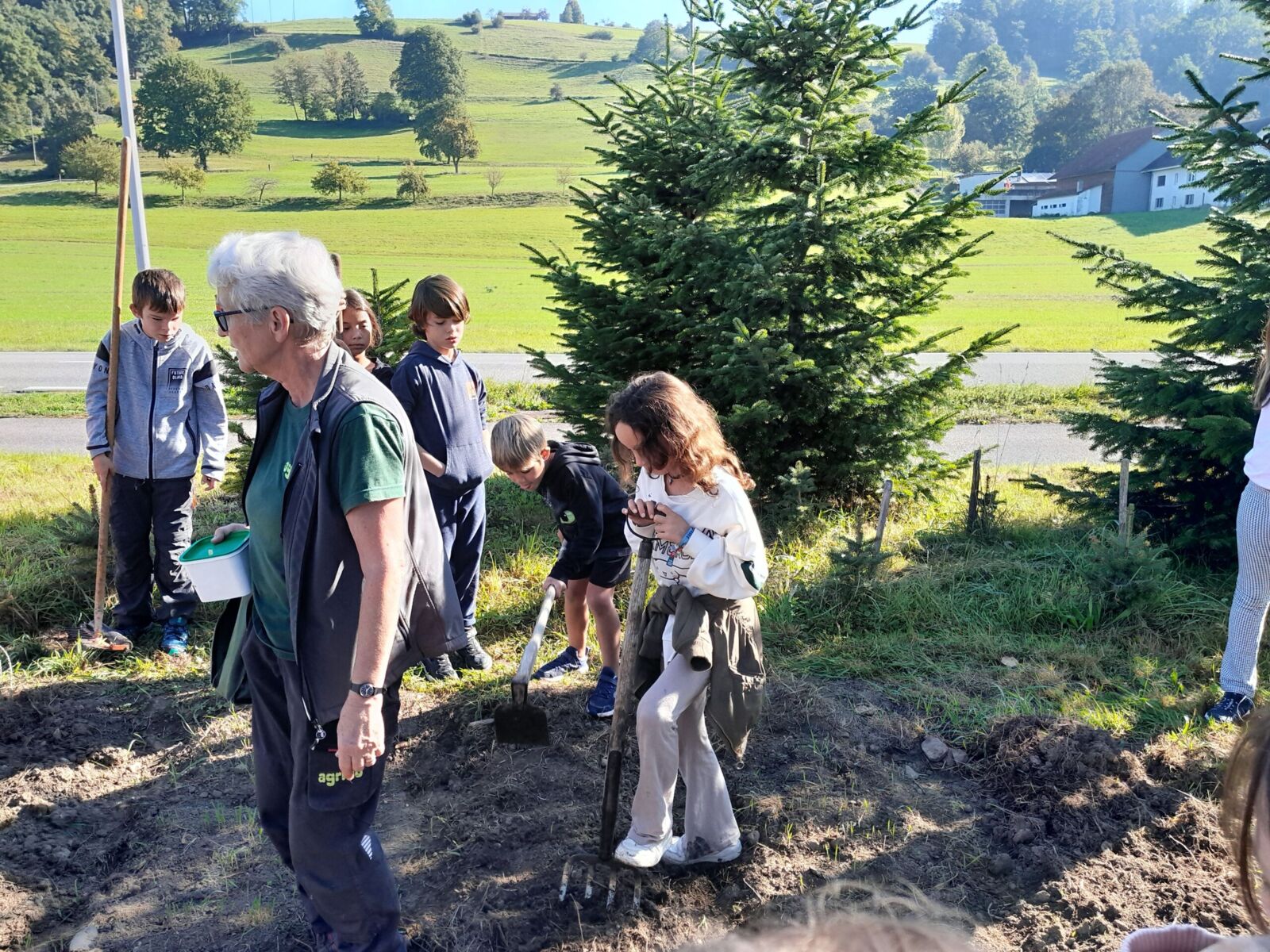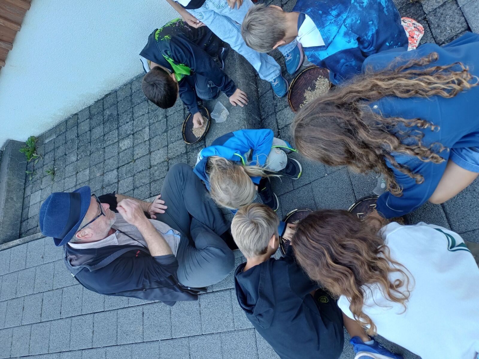 Das Korn auf dem Feld selber säen, den Boden dazu mit Gartengeräten bereit machen, da brauchte es viele Hände. Damit das Korn wachsen und gedeihen kann, braucht es guten Boden, Wasser, Licht, Wärme, gute Pflege und Gottes Segen. Diese Aussage beeindruckte die Kinder.