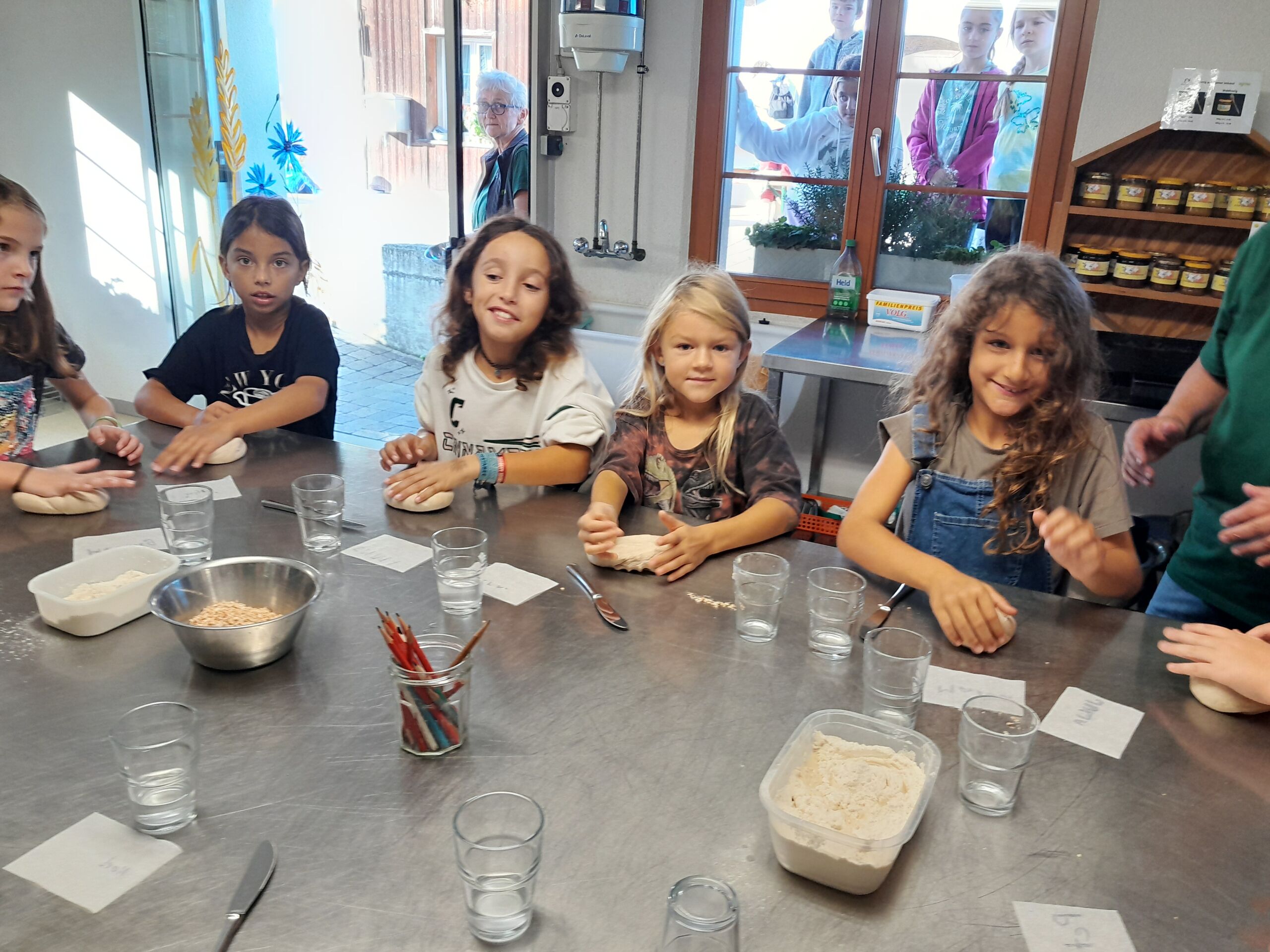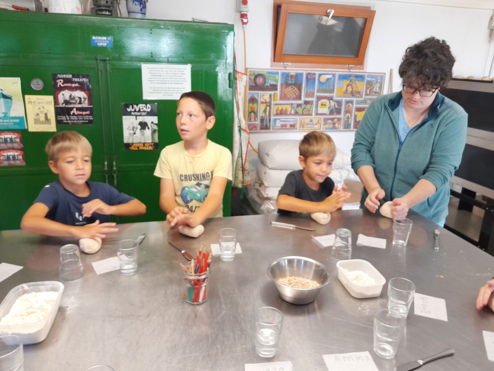 In der Backstube gemeinsam um einen Tisch stehen und aus einem Teig ein Brot formen und es mit Kleie verzieren, das machte den Kindern besonders viel Freude.