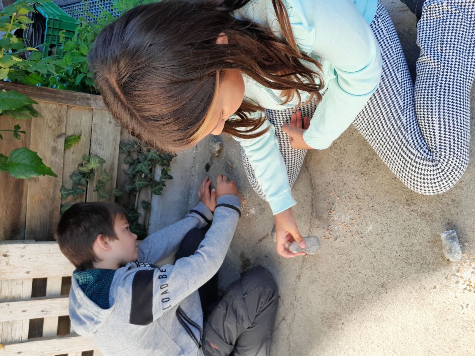 Das Korn selber malen ist nicht ganz leicht. Die harte Schale kann man nicht einfach so aufbrechen. Die Kinder versuchten es mit ihren Zähnen, auch mit einem Stein oder mit einer Mühle. Selber ausprobieren machte Spass.