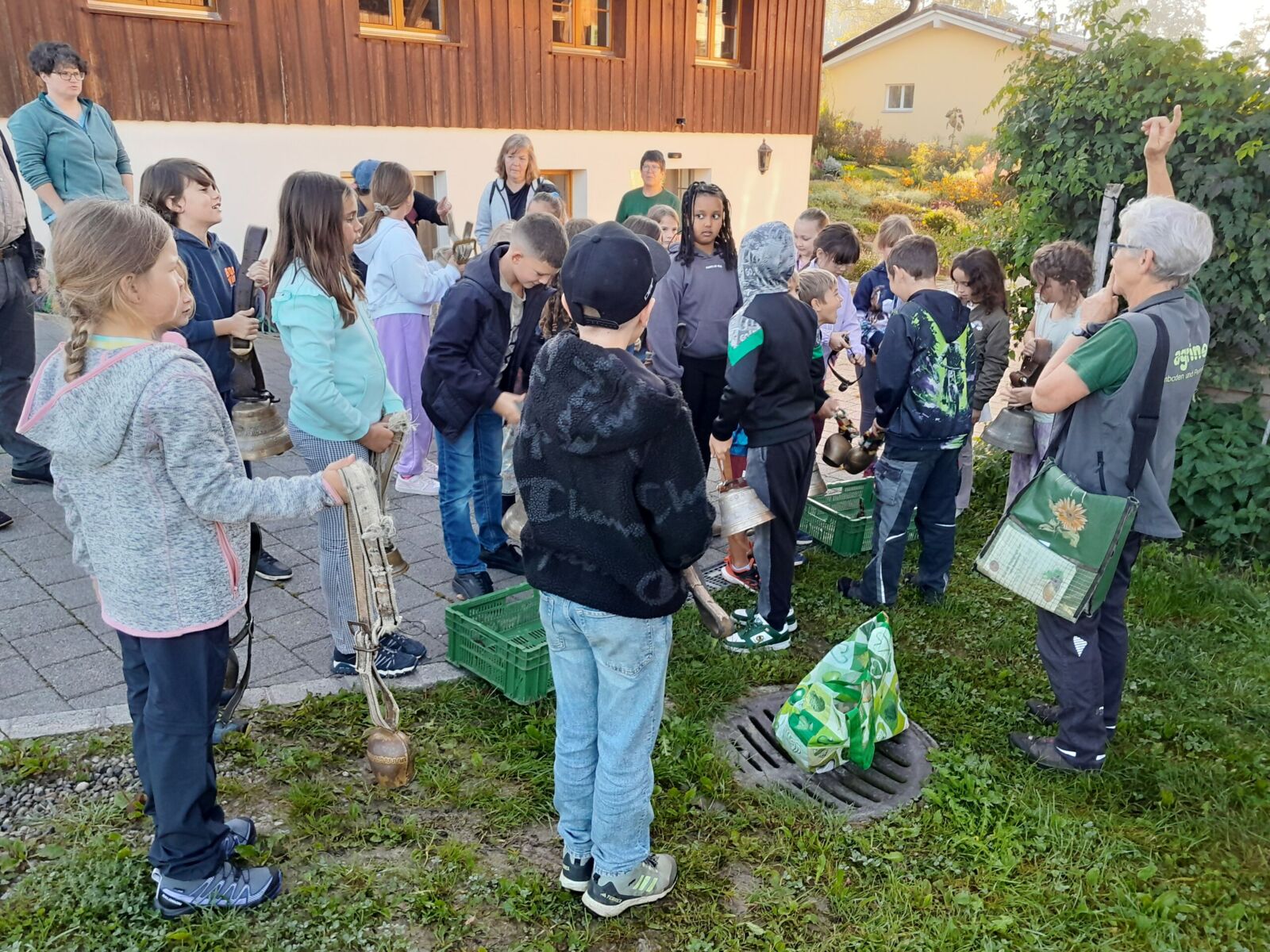 Zum Start und zum Abschluss läuteten die Kinder mit vielen verschieden Kuh- Glocken und Schellen ihre Erstkommunion, ihr besonderes Fest im Frühling, ein. Da wurde es laut und machte Riesenspass.