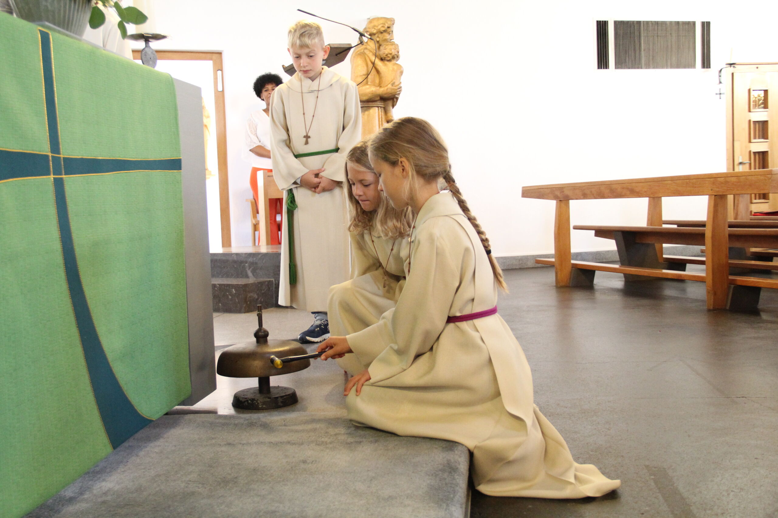 Hochmotiviert waren sie sowohl in der Sakristei bei der Inspektion der künftigen Ausrüstung als auch beim Gongschlag im Gottesdienst, der die Mitfeiernden dazu einlädt, dem Schöpfer hinzuhalten was verwandelt werden will.