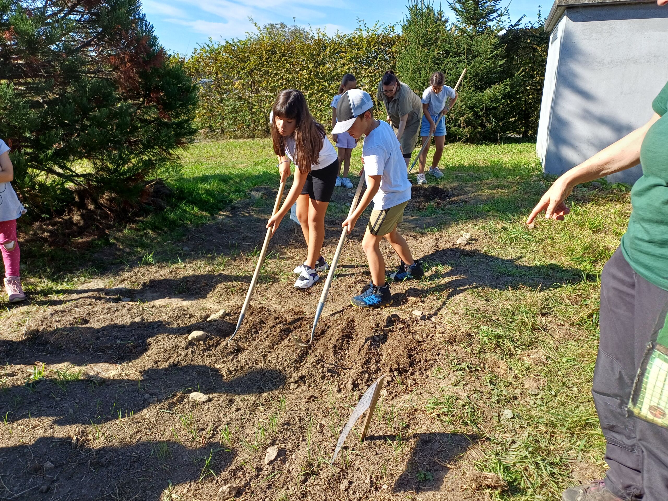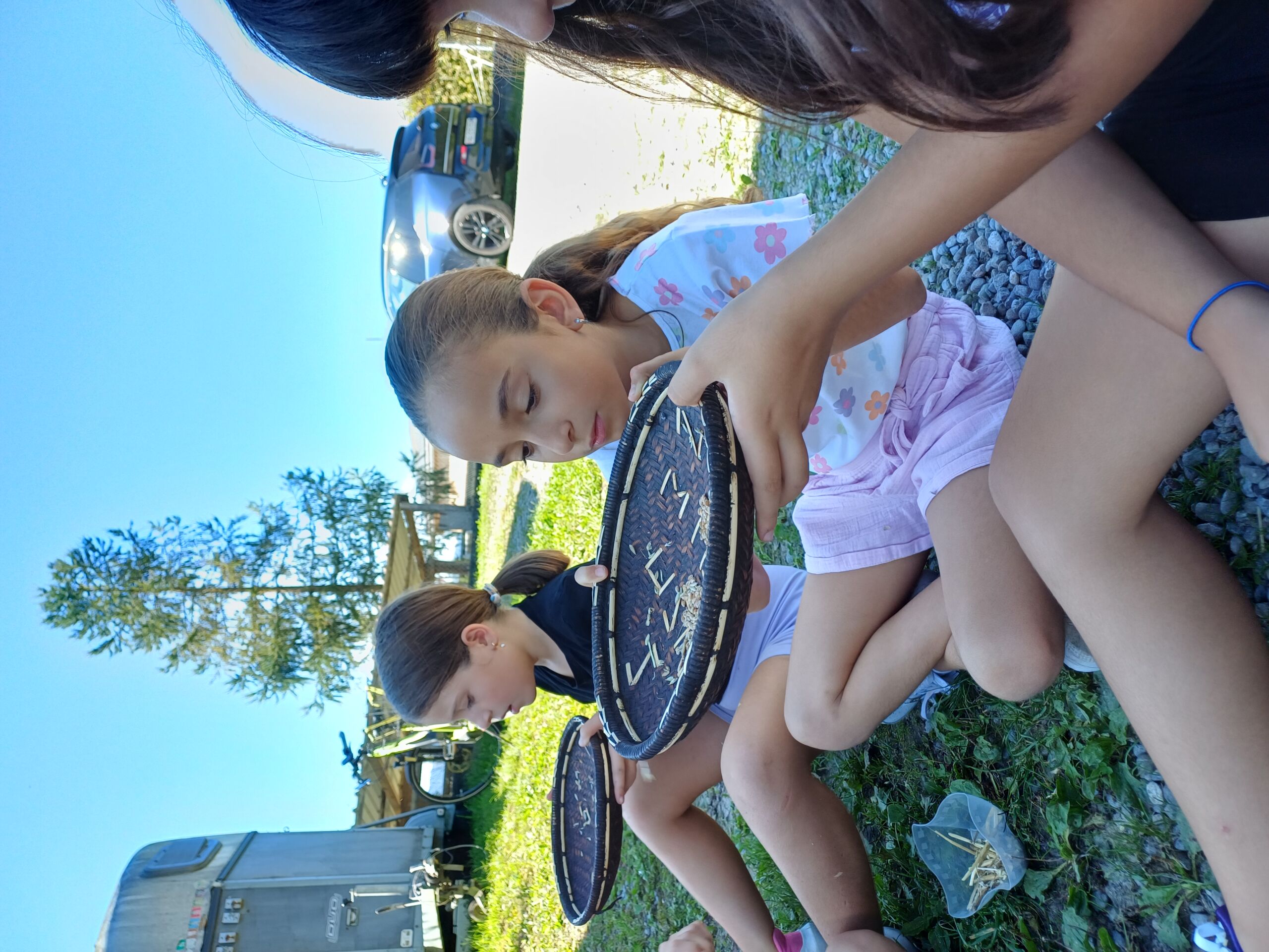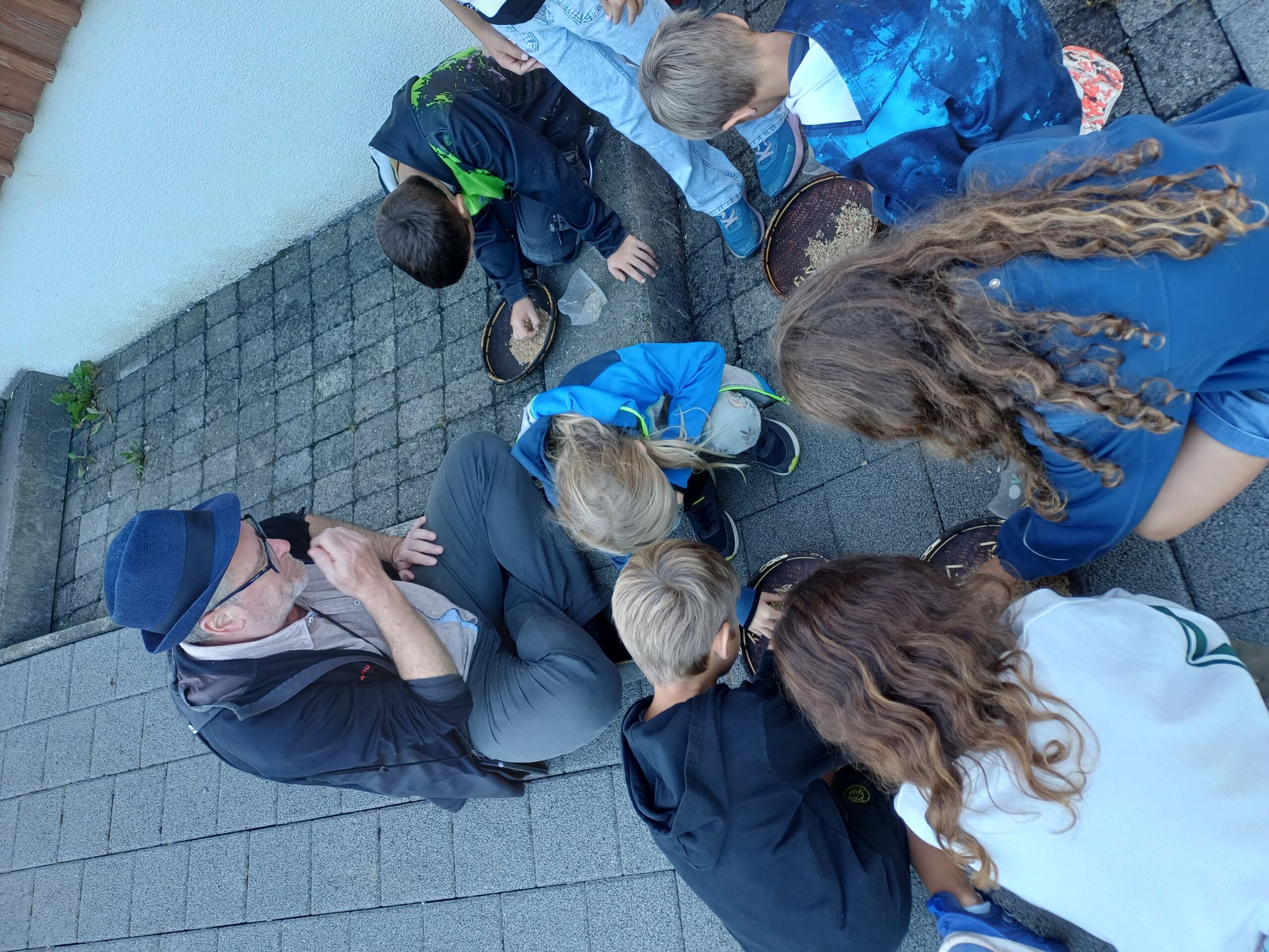 Vroni Peterhans zeigte ihnen nicht nur, was es auf so einem grossen Bauernhof alles zu tun gibt und hat, sondern auch wie aus Getreidekörnern Brot und aus Weintrauben Wein wird. Die Kinder durften auch selber mit Hand anlegen, vieles ausprobieren und am Ende sogar selbst gebackenes Brot mit nach Hause nehmen.