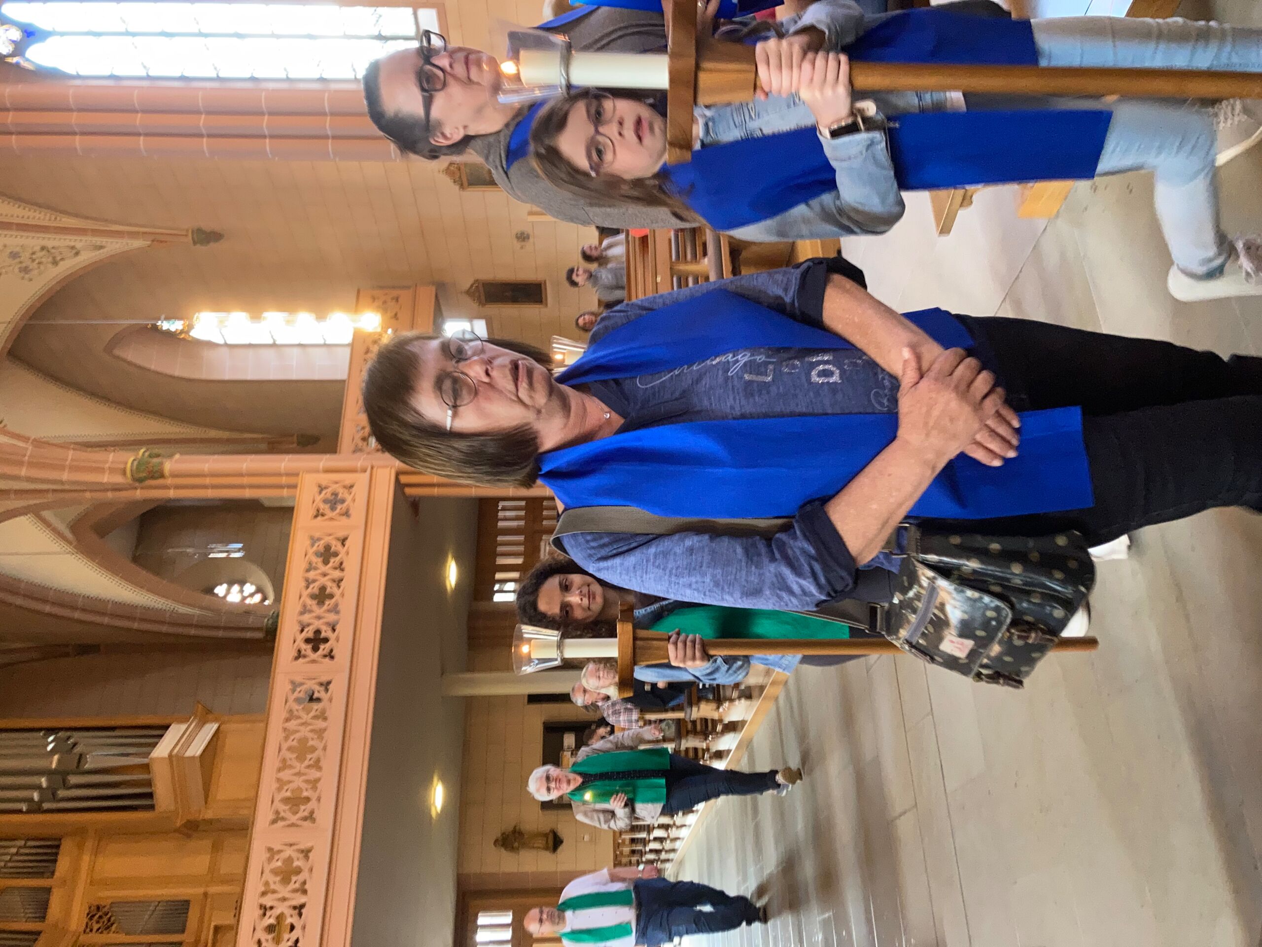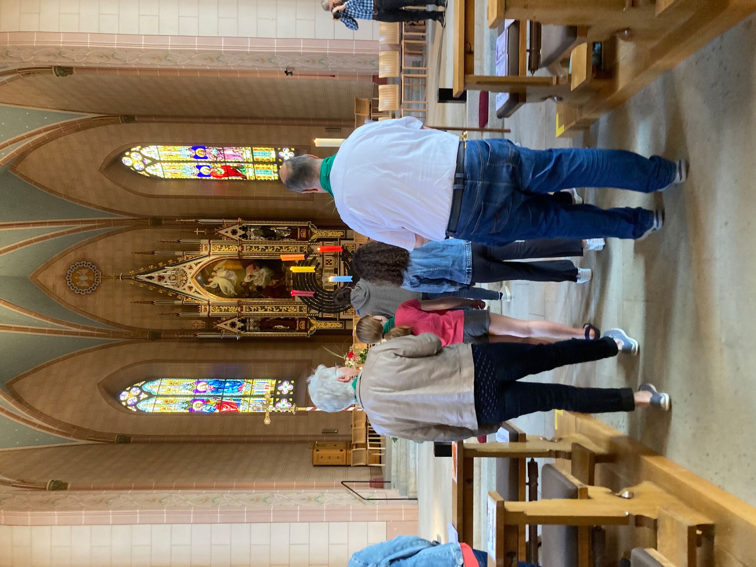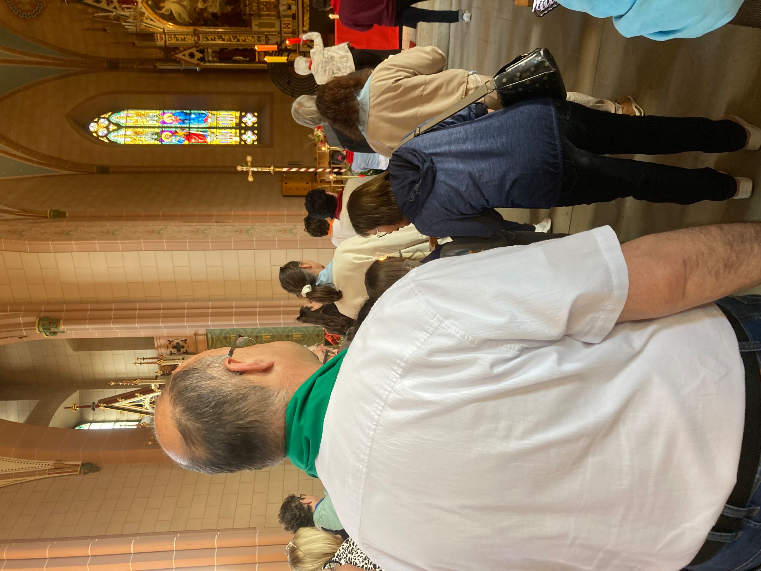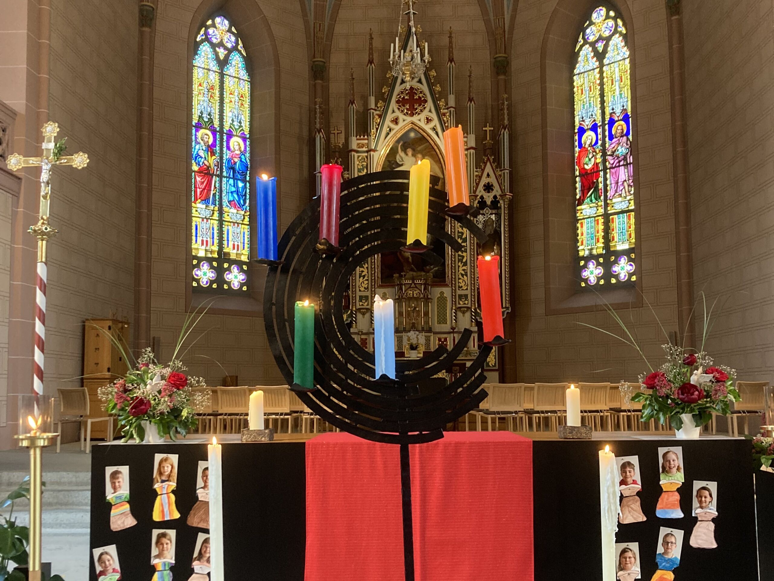 Überhaupt war die Stimmung toll. Die Impulse und Gebete der Seelsorgenden und der Lektor:innen/ Freiwilligen strahlten Dankbarkeit und Wärme aus. Und auch die Botschaft war eine pfingstliche: Zusammenstehen auch auf Durststrecken, Träume behalten, bunt und regenbogenfarben für ALLE Menschen da sein. Dazu verband Peter Zürn den grossen Sieg von Nemo am Eurovision 2024 mit der Geisteshaltung des Pastoralraums Aare-Rhein und legte sich dazu in Solidarität für Menschen, die oftmals ausgeschlossen werden, einen rosa Schal um und einen Regenbogenmantel obendrauf.