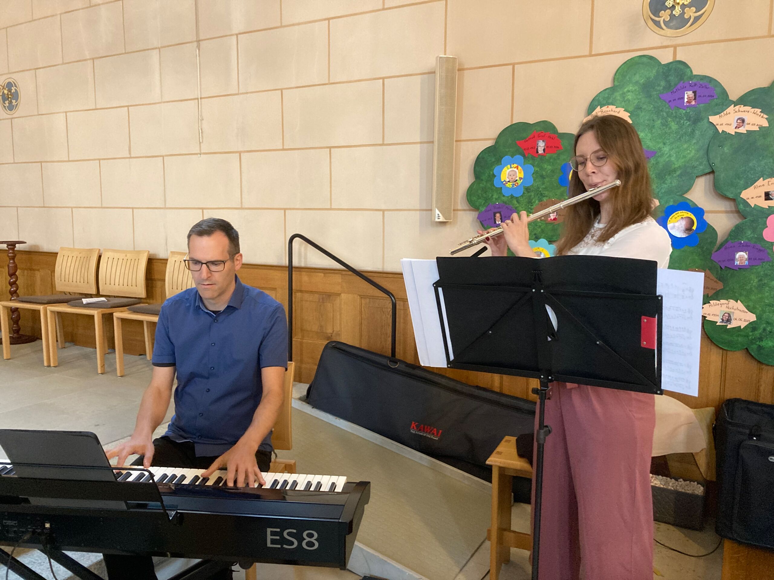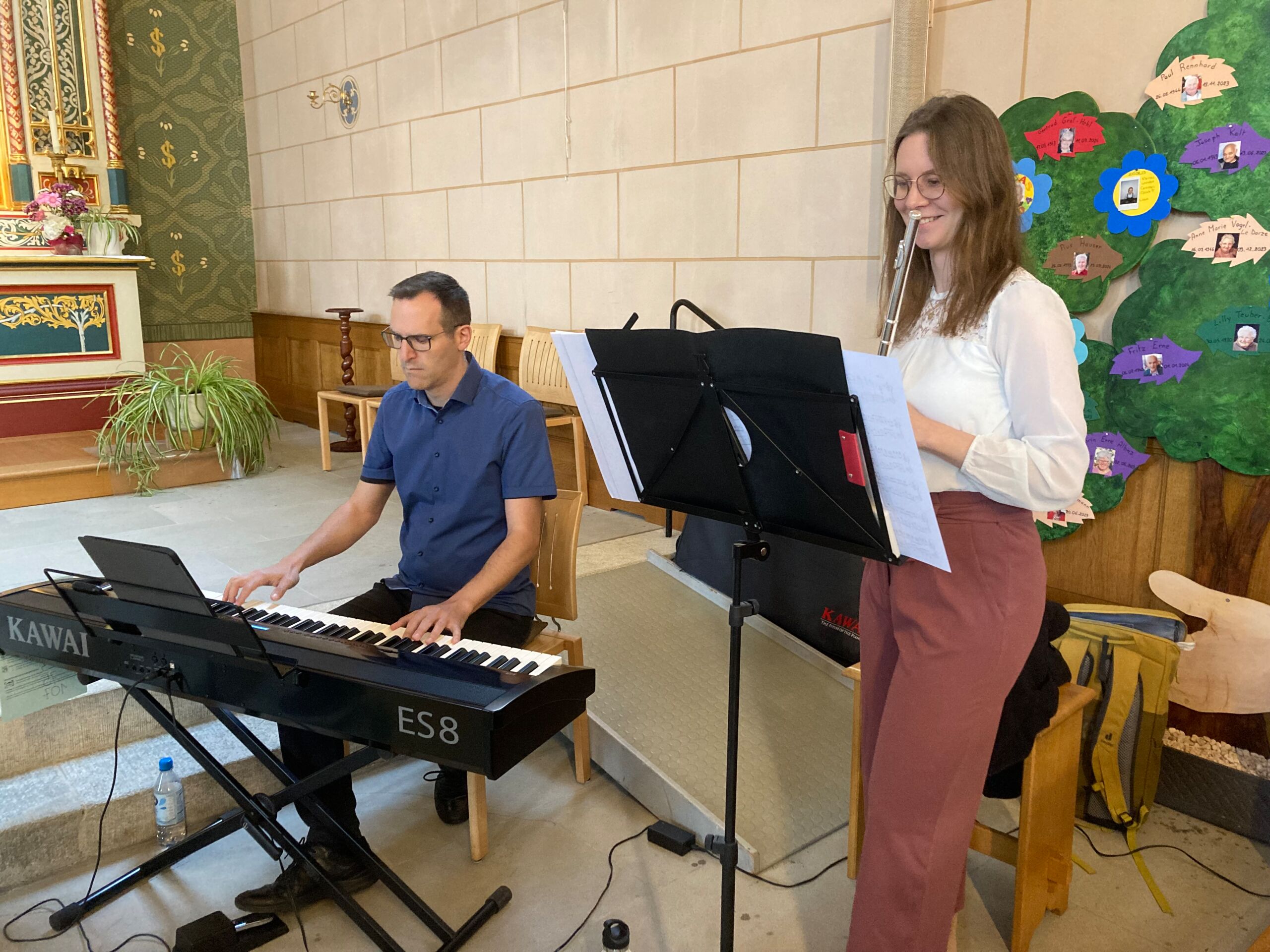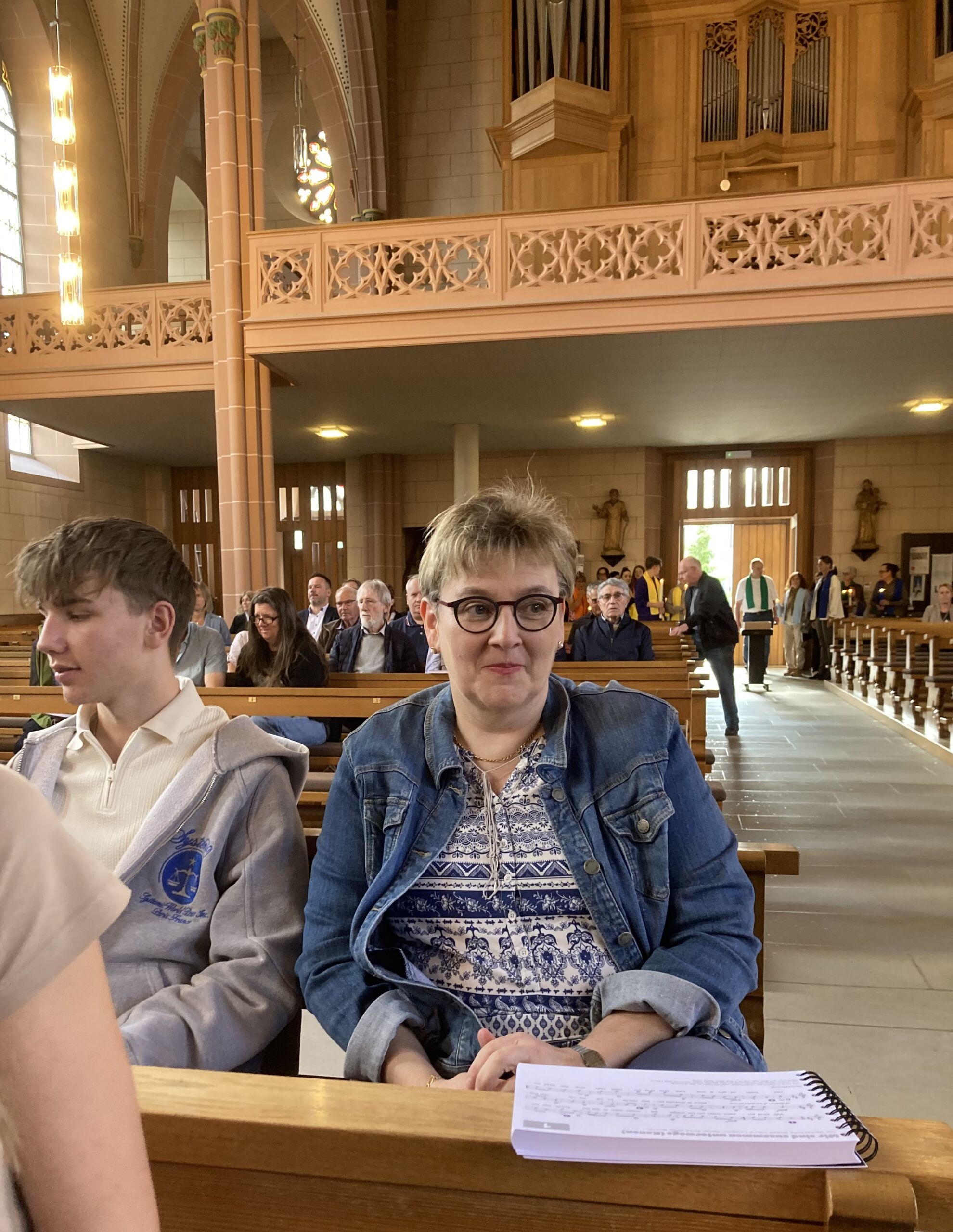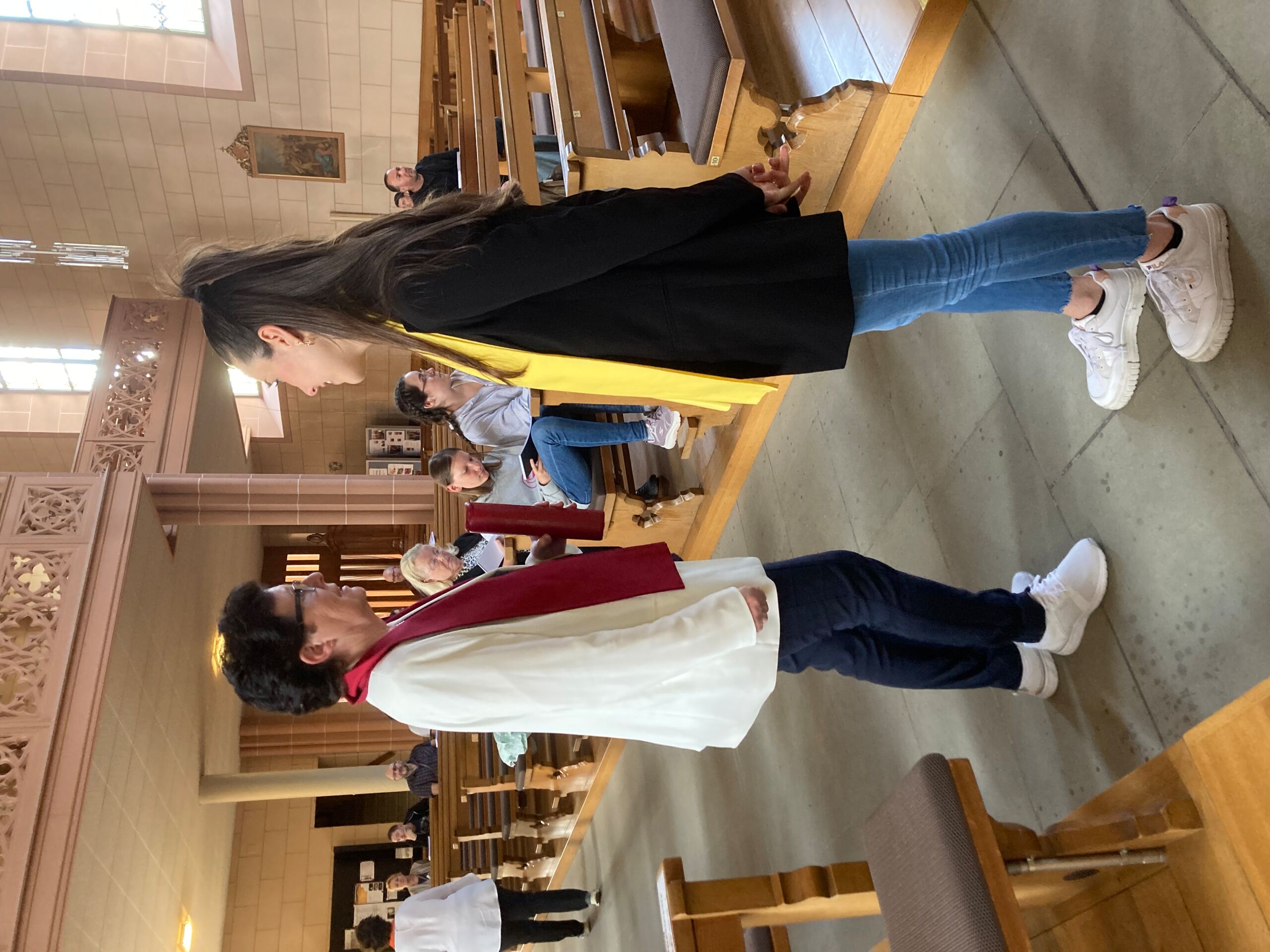 Auch wenn der Jubiläumsgottesdienst nicht wie ursprünglich geplant in der Lourdes Grotte stattfinden konnte: Das Pastoralraumteam Aare-Rhein und die Pfarreiangehörigen aller Pastoralraum-Kirchen als auch die geladenen Gäste liessen sich dadurch nicht die Laune verderben. Nach herzlicher Begrüssung durch Stefan Essig kam Thomas Scheibel schnell auf das Wichtigste: Ein Geburtstagskind braucht ein Geburtstags-geschenk! Und so blätterten die Gottesdienst-besucher:innen staunend im neuen Liederbuch, für das ganz viele Menschen nach ihren Lieblingsliedern gefragt worden waren und für das Kinder und Jugendliche an einem Malwettbewerb teilgenommen hatten. Selbstverständlich wurde auch gleich aus dem tollen Werk wortwörtlich beGEISTert gesungen und ein eigens dazu gebildeter und sogar konfessionsdurchmischter Projektchor half dabei, dass die neuen Lieder gleich ins Ohr und ans Herz gingen.