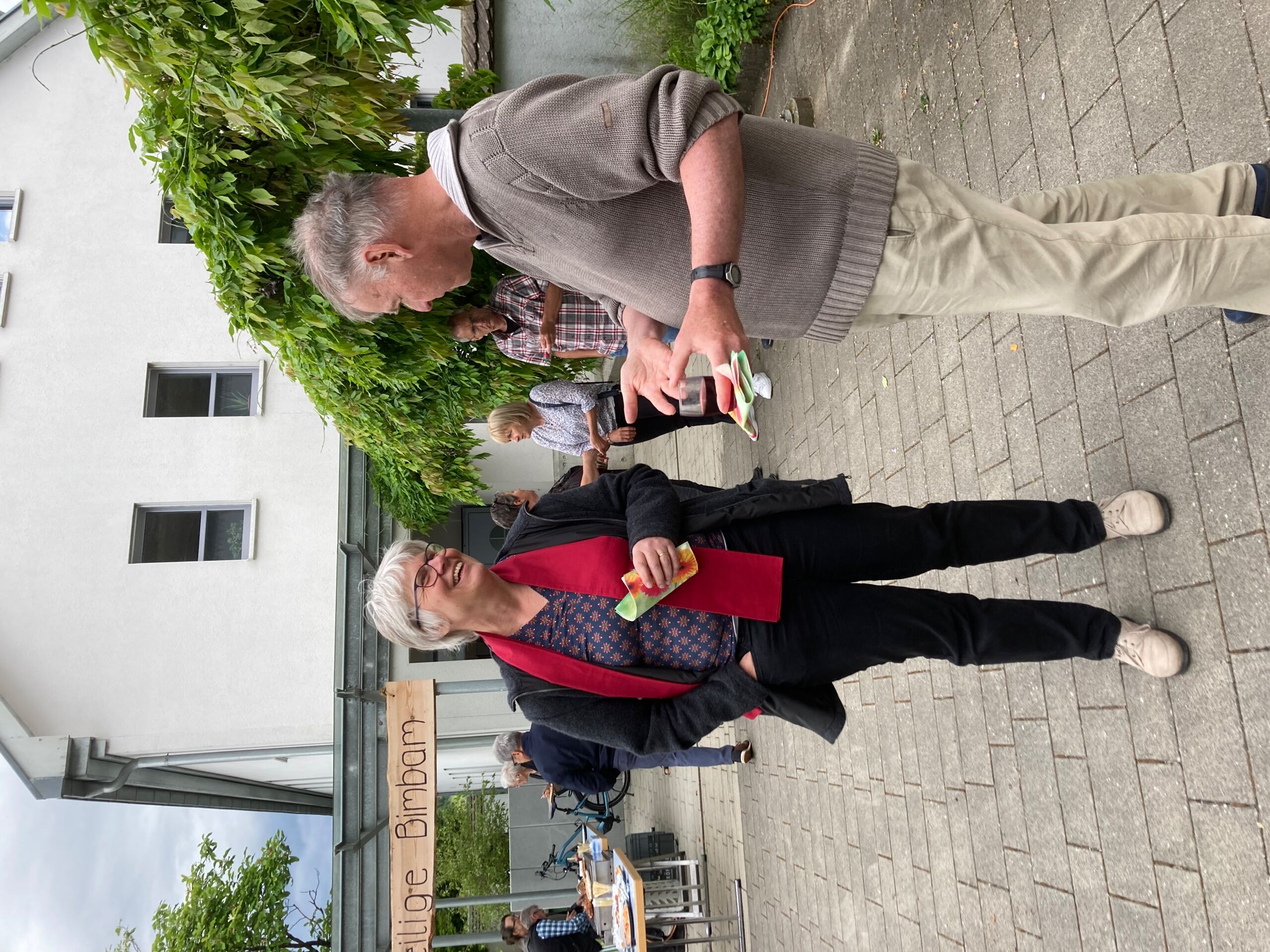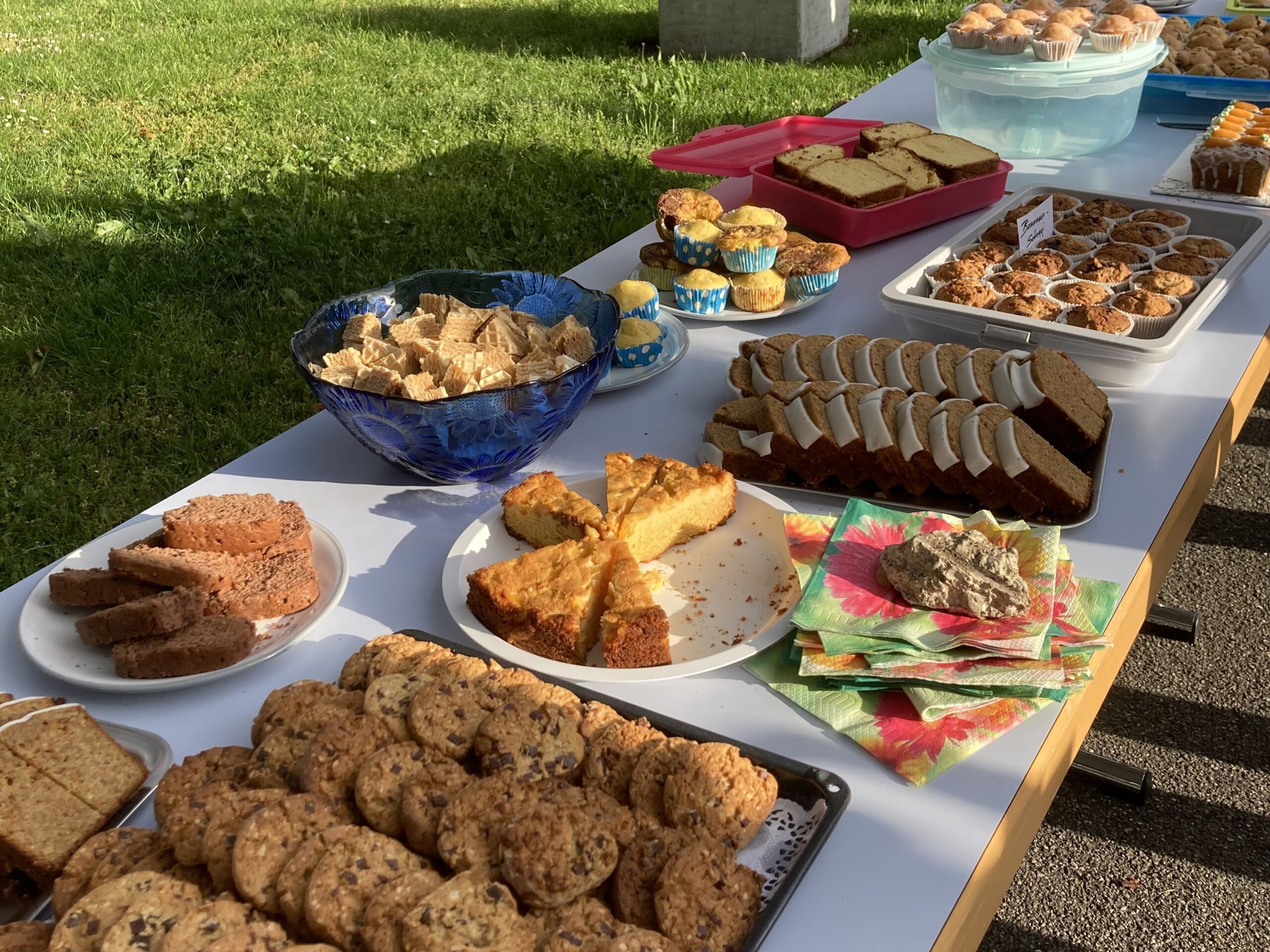 Nach dem eindrücklichen und lebendigen Gottesdienst mit wunderbarer Musik vom Chor, geleitet von Thomas Scheibel, lud das Team zum Geburtstagsessen auf dem Kirchenplatz ein. Dort erwartete die Gäste dank vieler Freiwilliger, jung wie alt, ein Festschmaus-Apero, der genauso bunt war wie die Feier in der Kirche.