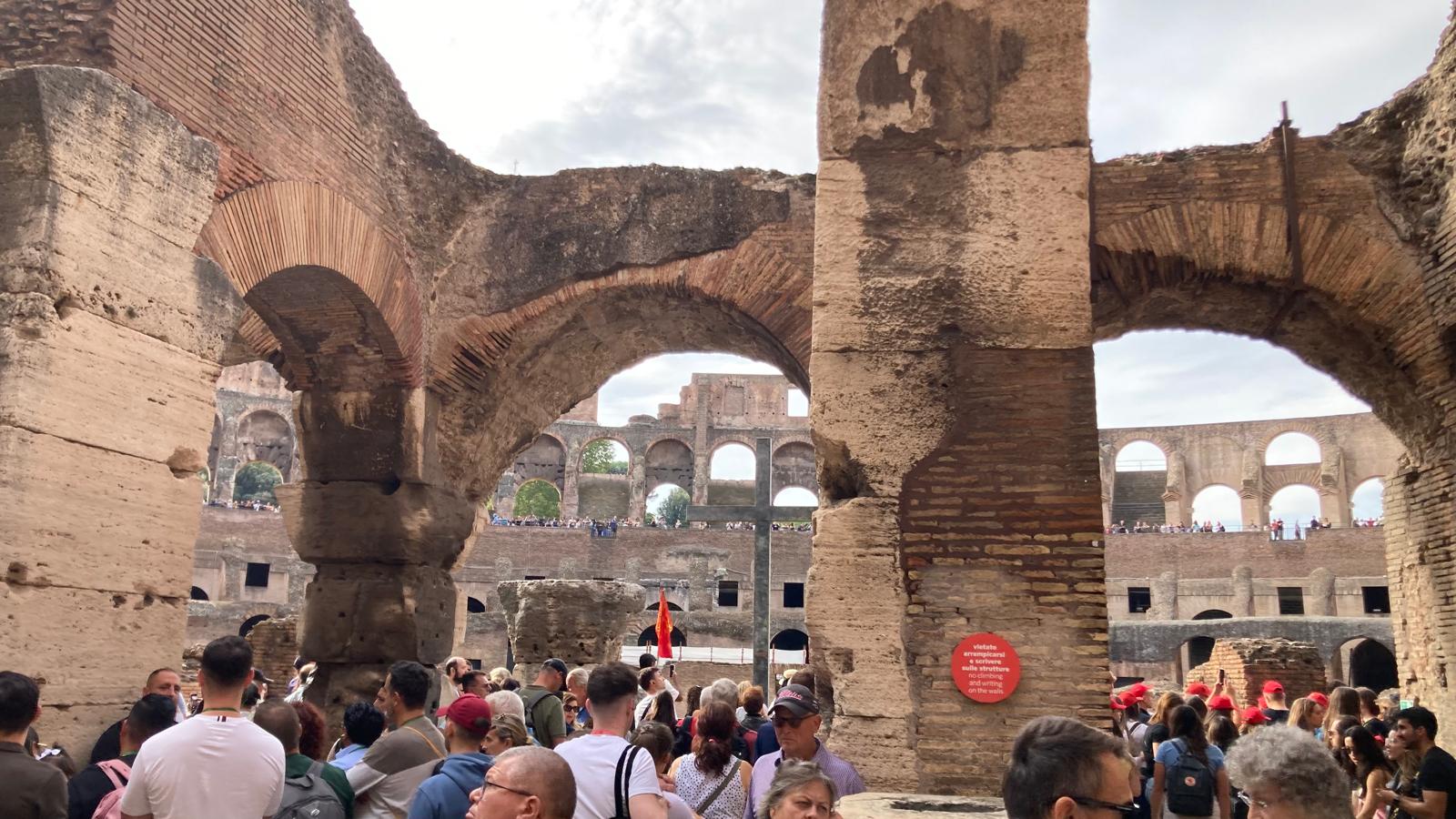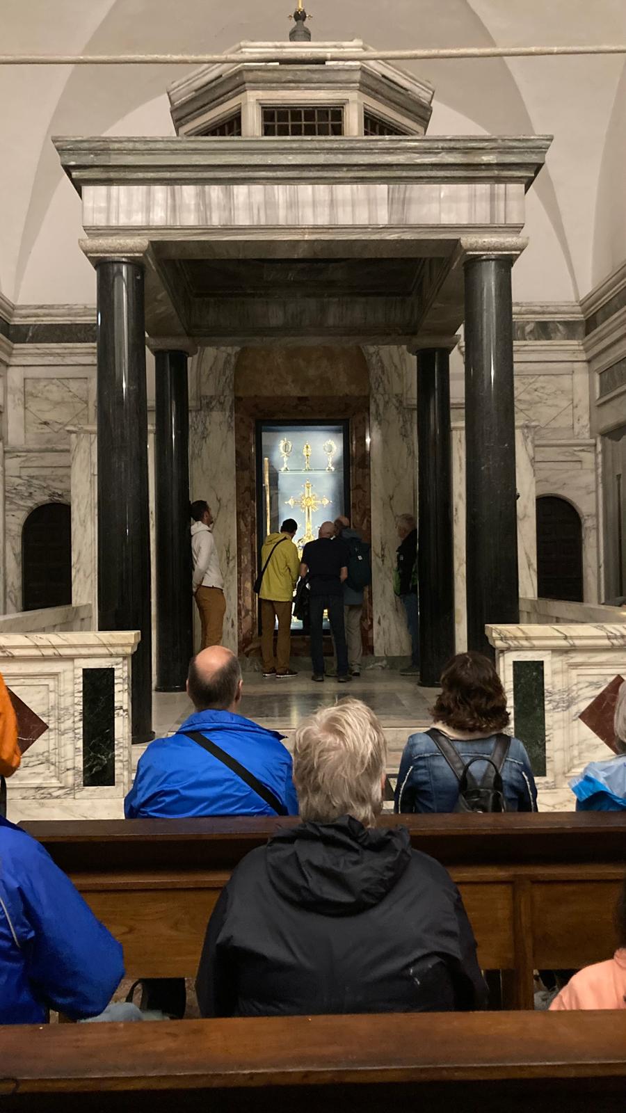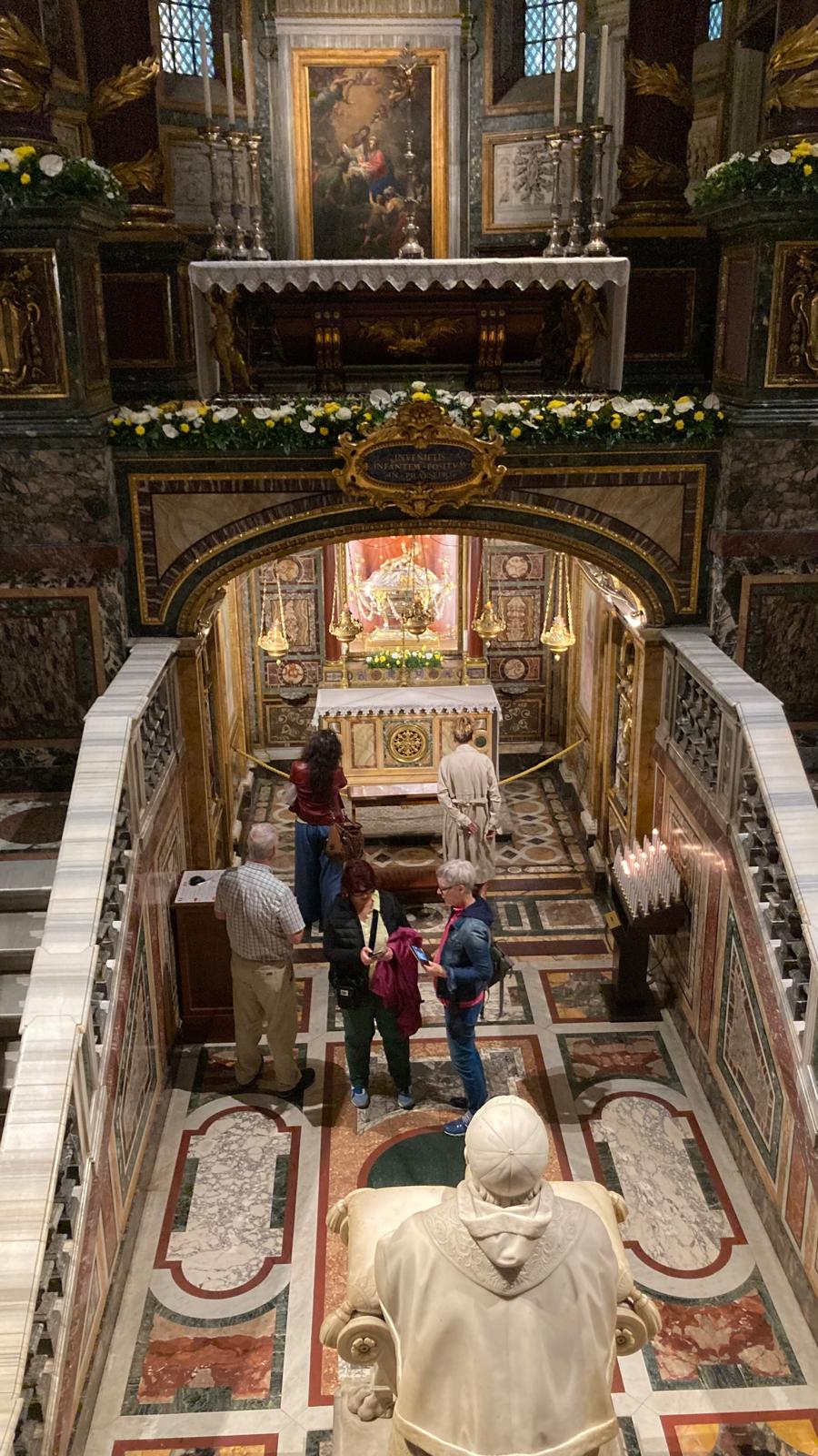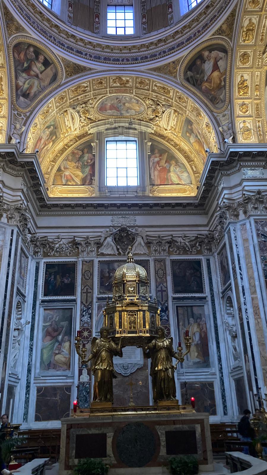 Dienstagmorgen ging es nach dem Führstück los zum «Colosseo». Zu Fuss kamen wir dem «Colosseo» immer nähre und das Staunen wurde immer grösser. Mit ein paar Hindernissen (italienische Logik) kamen dann alle hinein und konnten sich frei bewegen und viele Eindrücke sammeln. Um den Mittag herum traf man sich wieder beim Ausgang und besprach das weitere Vorgehen. Als sich alle gut verpflegt hatten, ging es zu Fuss zu der ersten Pilgerkirche, der Basilika San Giovanni in Laterano, die einen bleibenden Eindruck hinterliess. Anschliessend besichtigte die Gruppe Santa Croce in Gerusalemme und zum Schluss die Lieblingskirche von Papst Franziskus, Santa Maria Maggiore. Das Abendessen konnte man im Stadtviertel «Trestevere» einnehmen, denn es gibt dort wunderbare kleine Restaurants, die sehr gute Küchen haben. Einen besinnlichen Abschluss gab es dann noch beim Abendgebet mit der Gemeinschaft Sant’Egidio in der wunderschönen Kirche Santa Maria, wo die Gruppe sogar persönlich begrüsst wurde und Liveübersetzung bekam.