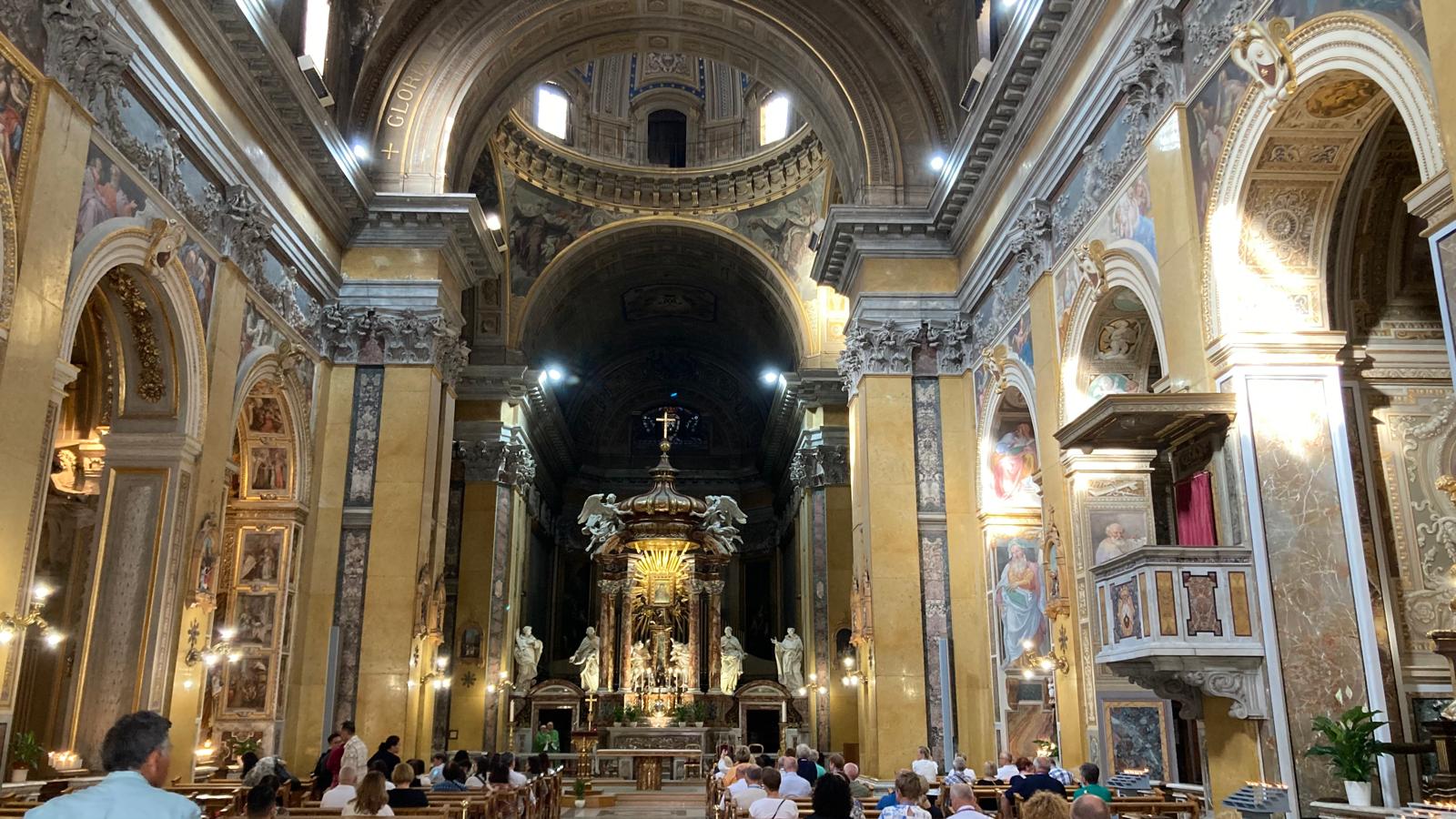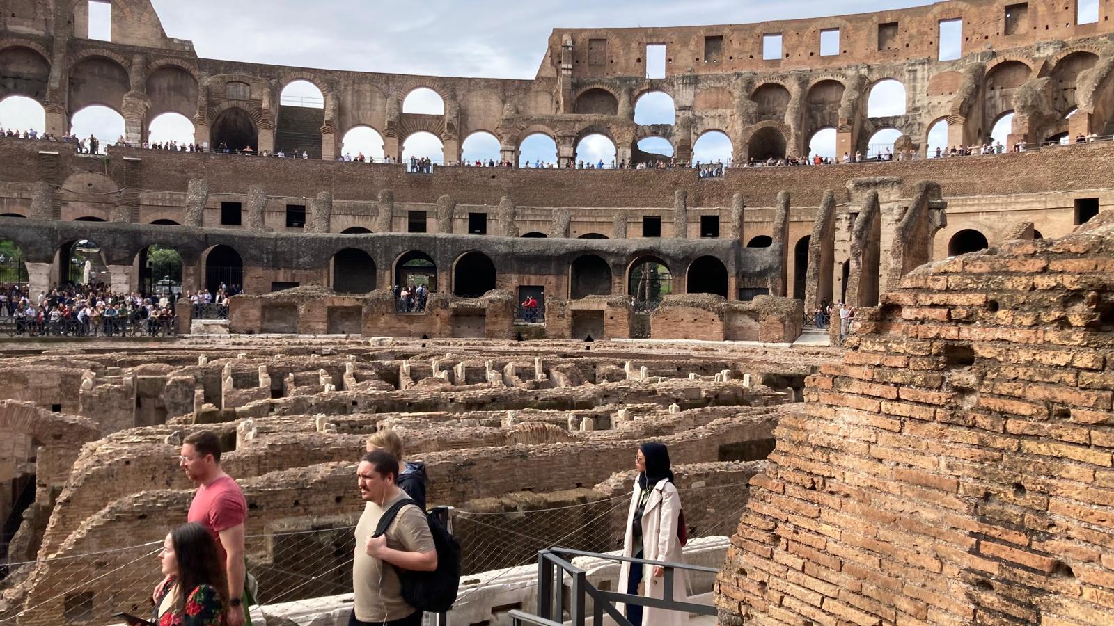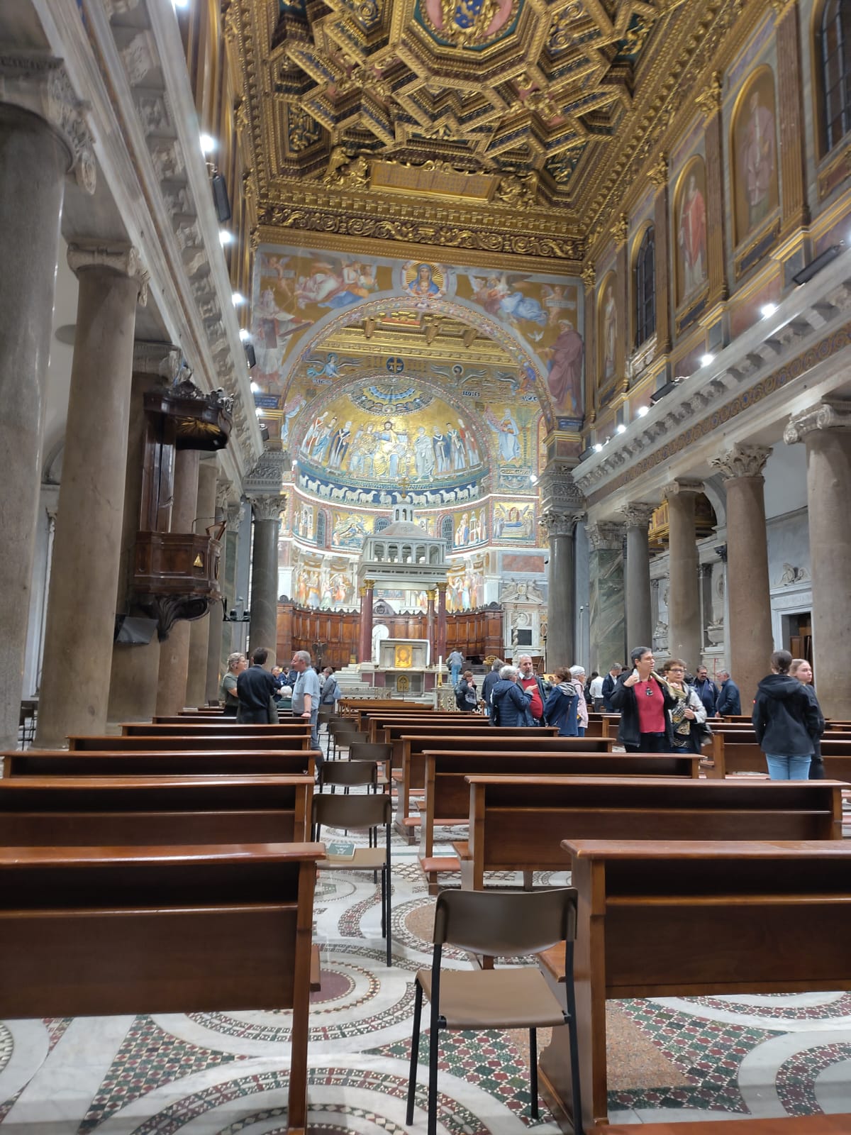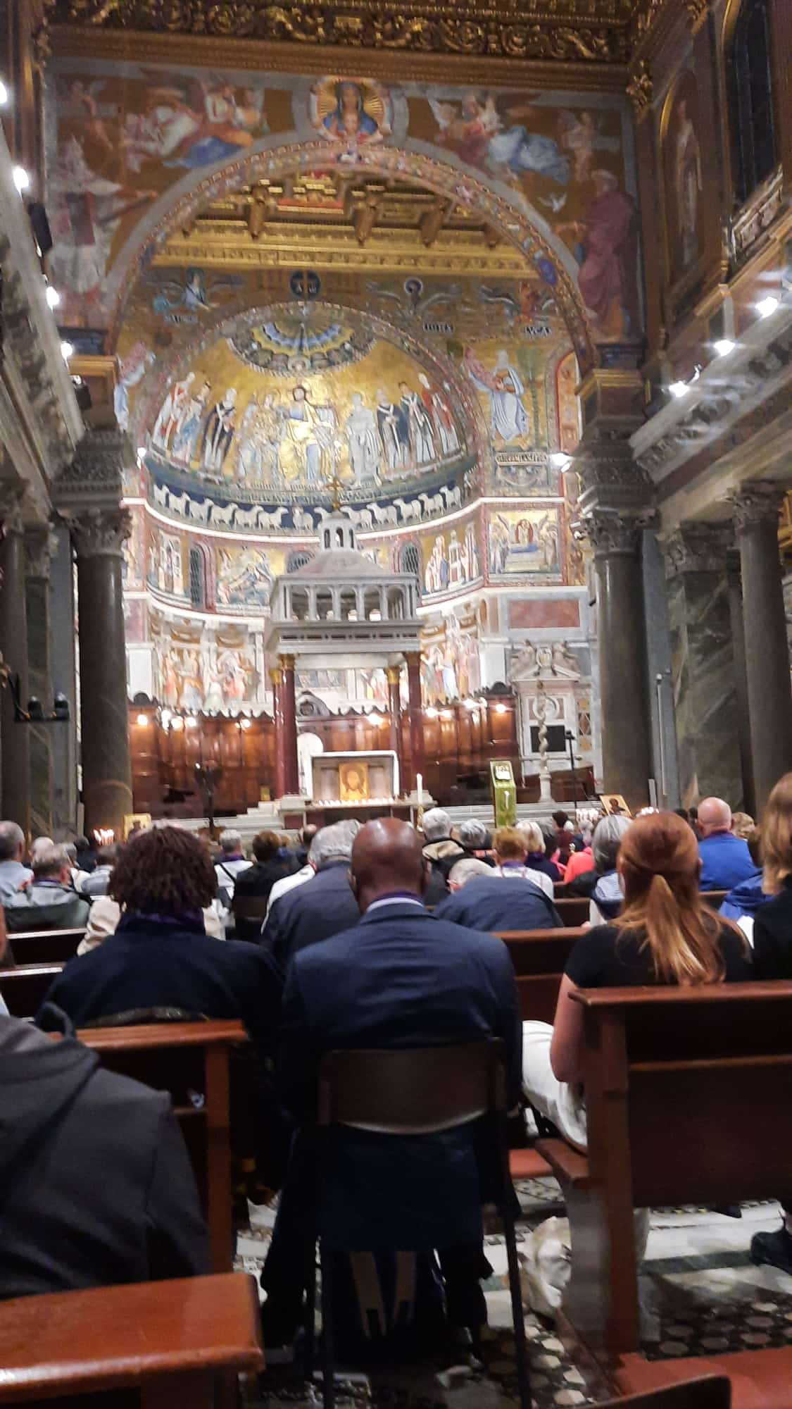 Dienstagmorgen ging es nach dem Führstück los zum «Colosseo». Zu Fuss kamen wir dem «Colosseo» immer nähre und das Staunen wurde immer grösser. Mit ein paar Hindernissen (italienische Logik) kamen dann alle hinein und konnten sich frei bewegen und viele Eindrücke sammeln. Um den Mittag herum traf man sich wieder beim Ausgang und besprach das weitere Vorgehen. Als sich alle gut verpflegt hatten, ging es zu Fuss zu der ersten Pilgerkirche, der Basilika San Giovanni in Laterano, die einen bleibenden Eindruck hinterliess. Anschliessend besichtigte die Gruppe Santa Croce in Gerusalemme und zum Schluss die Lieblingskirche von Papst Franziskus, Santa Maria Maggiore. Das Abendessen konnte man im Stadtviertel «Trestevere» einnehmen, denn es gibt dort wunderbare kleine Restaurants, die sehr gute Küchen haben. Einen besinnlichen Abschluss gab es dann noch beim Abendgebet mit der Gemeinschaft Sant’Egidio in der wunderschönen Kirche Santa Maria, wo die Gruppe sogar persönlich begrüsst wurde und Liveübersetzung bekam.