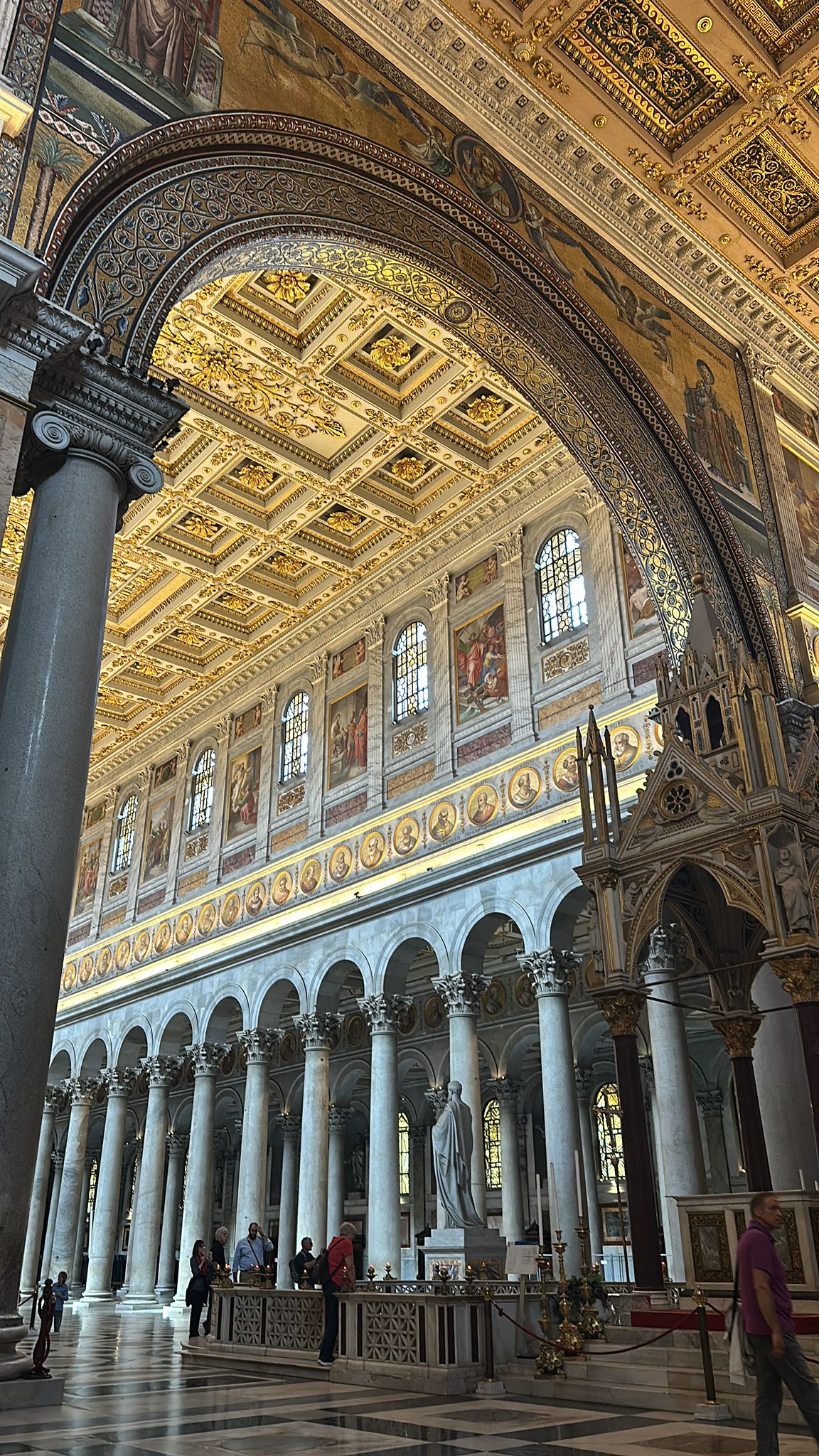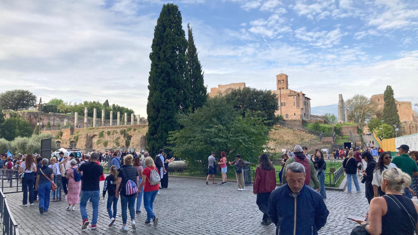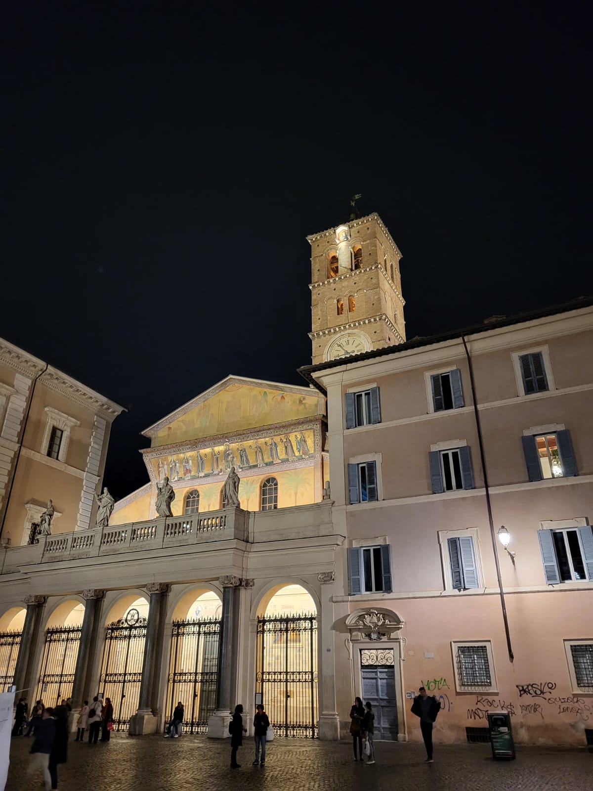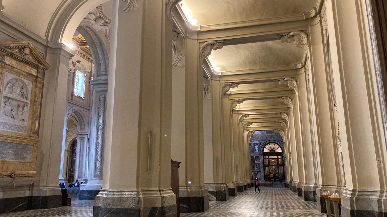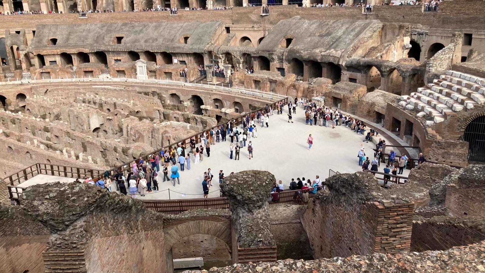 Dienstagmorgen ging es nach dem Führstück los zum «Colosseo». Zu Fuss kamen wir dem «Colosseo» immer nähre und das Staunen wurde immer grösser. Mit ein paar Hindernissen (italienische Logik) kamen dann alle hinein und konnten sich frei bewegen und viele Eindrücke sammeln. Um den Mittag herum traf man sich wieder beim Ausgang und besprach das weitere Vorgehen. Als sich alle gut verpflegt hatten, ging es zu Fuss zu der ersten Pilgerkirche, der Basilika San Giovanni in Laterano, die einen bleibenden Eindruck hinterliess. Anschliessend besichtigte die Gruppe Santa Croce in Gerusalemme und zum Schluss die Lieblingskirche von Papst Franziskus, Santa Maria Maggiore. Das Abendessen konnte man im Stadtviertel «Trestevere» einnehmen, denn es gibt dort wunderbare kleine Restaurants, die sehr gute Küchen haben. Einen besinnlichen Abschluss gab es dann noch beim Abendgebet mit der Gemeinschaft Sant’Egidio in der wunderschönen Kirche Santa Maria, wo die Gruppe sogar persönlich begrüsst wurde und Liveübersetzung bekam.