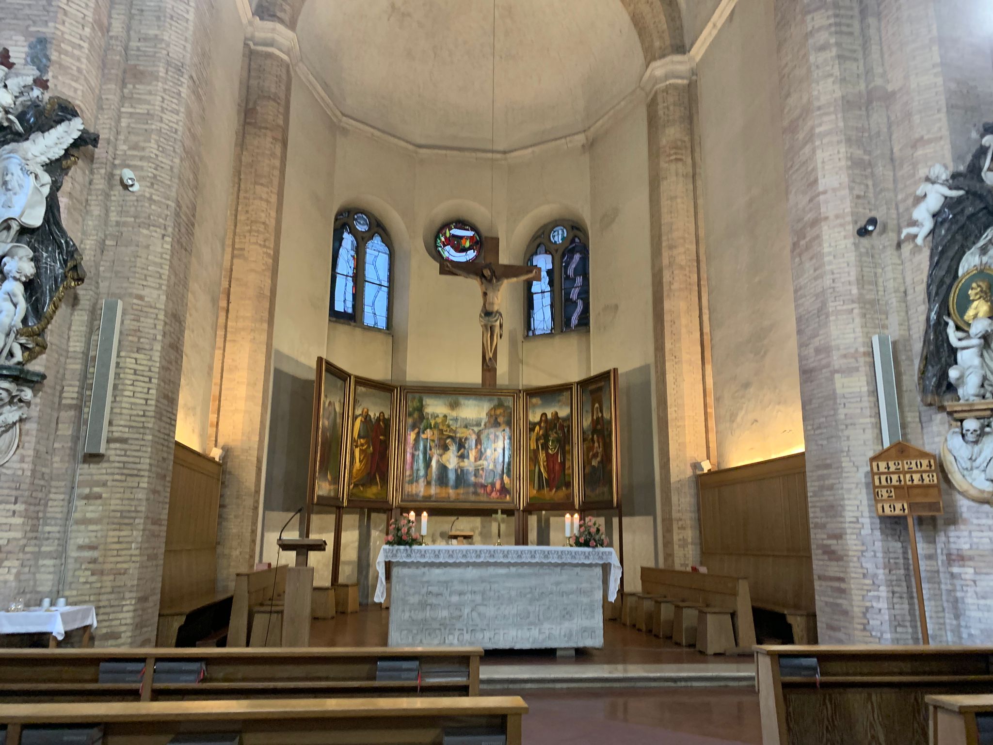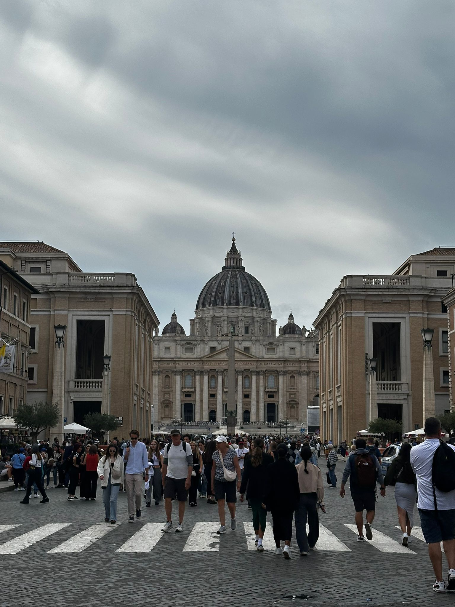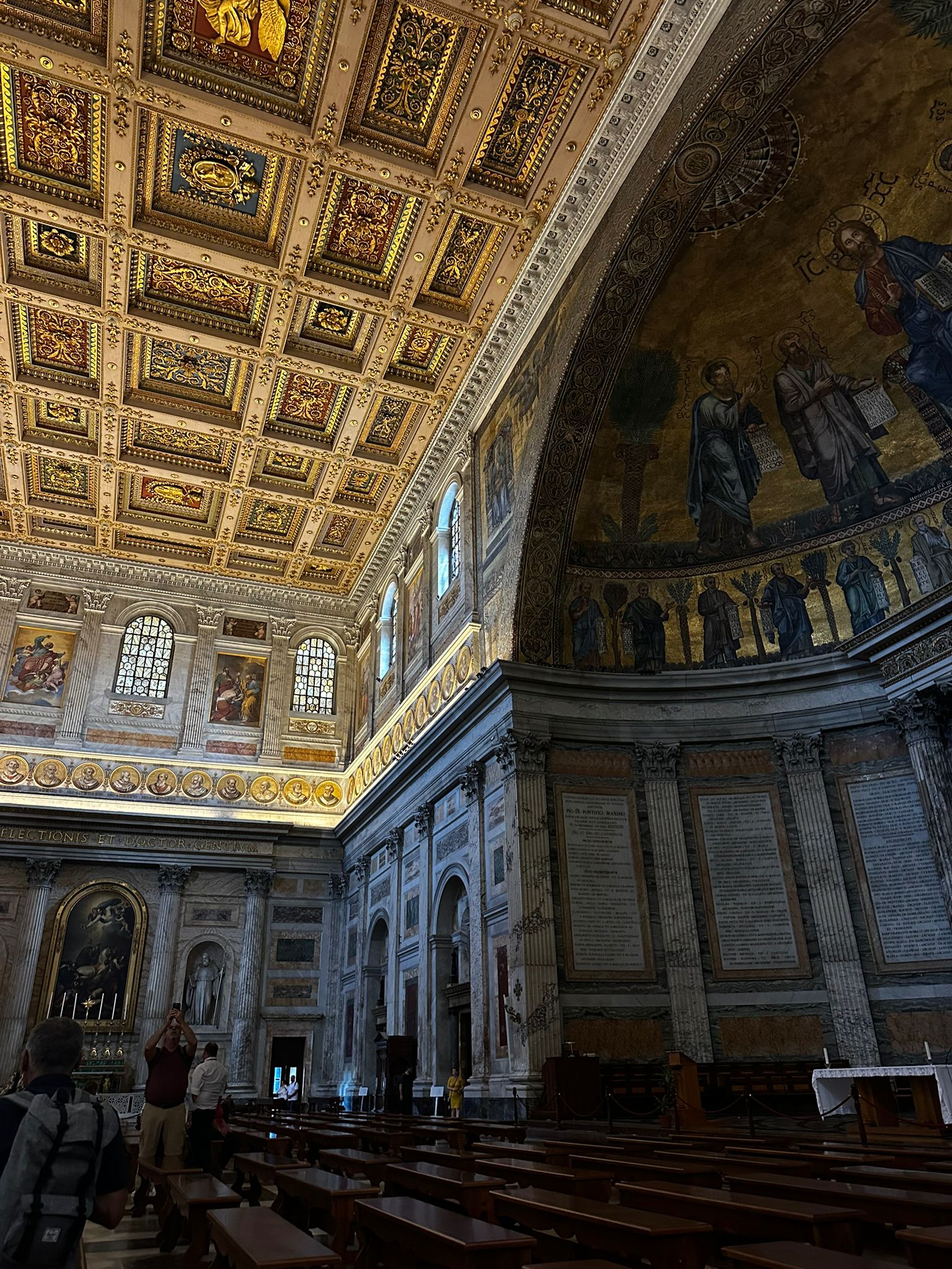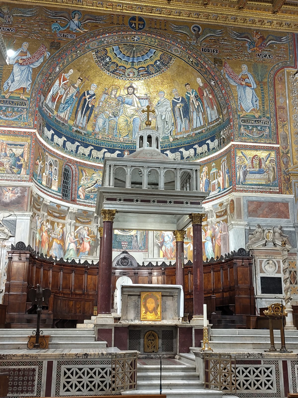 Dienstagmorgen ging es nach dem Führstück los zum «Colosseo». Zu Fuss kamen wir dem «Colosseo» immer nähre und das Staunen wurde immer grösser. Mit ein paar Hindernissen (italienische Logik) kamen dann alle hinein und konnten sich frei bewegen und viele Eindrücke sammeln. Um den Mittag herum traf man sich wieder beim Ausgang und besprach das weitere Vorgehen. Als sich alle gut verpflegt hatten, ging es zu Fuss zu der ersten Pilgerkirche, der Basilika San Giovanni in Laterano, die einen bleibenden Eindruck hinterliess. Anschliessend besichtigte die Gruppe Santa Croce in Gerusalemme und zum Schluss die Lieblingskirche von Papst Franziskus, Santa Maria Maggiore. Das Abendessen konnte man im Stadtviertel «Trestevere» einnehmen, denn es gibt dort wunderbare kleine Restaurants, die sehr gute Küchen haben. Einen besinnlichen Abschluss gab es dann noch beim Abendgebet mit der Gemeinschaft Sant’Egidio in der wunderschönen Kirche Santa Maria, wo die Gruppe sogar persönlich begrüsst wurde und Liveübersetzung bekam.