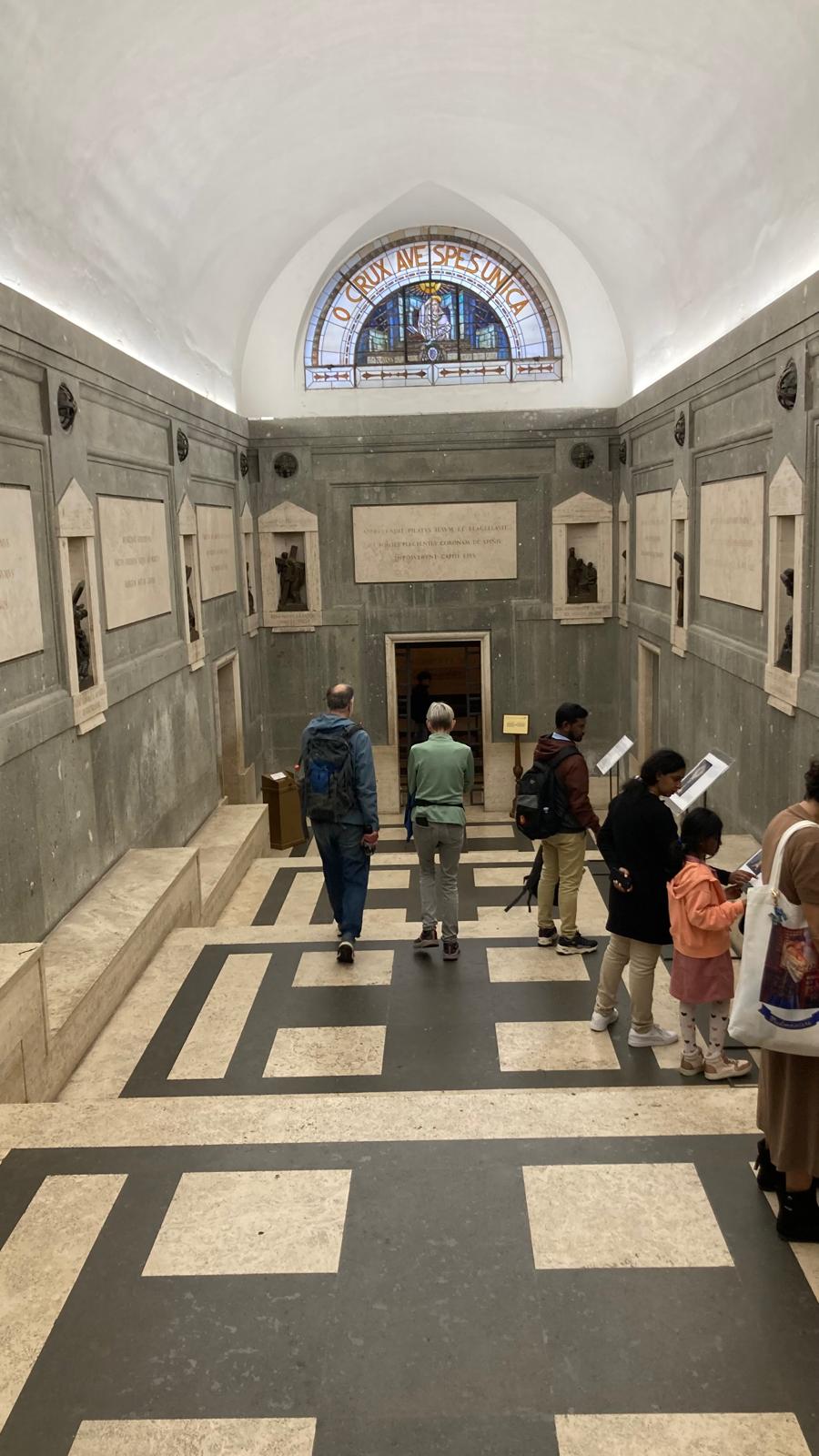 Freitagmorgen packten wir unsere Koffer schweren Herzens. Nach dem letzten Morgenessen im Hotel traf sich die Gruppe vor dem Eingang, und gemeinsam ging es mit den öffentlichen Verkehrsmitteln zu den «Catacombe die San Callisto», die sehr eindrücklich war aber für die, die Platzangst haben, nicht empfehlenswert ist. Auch dort feierten wir einen gemeinsamen Gottesdienst.