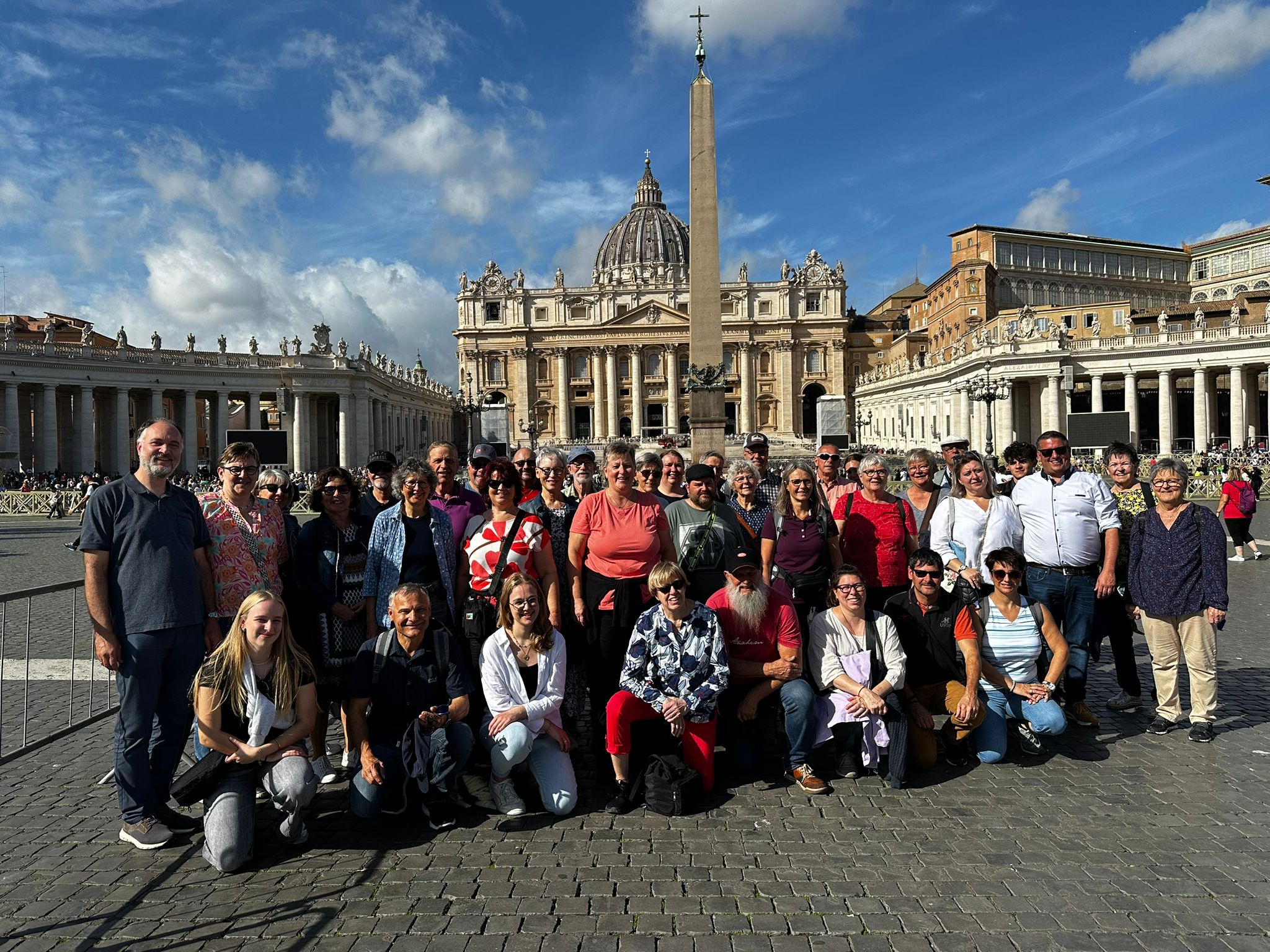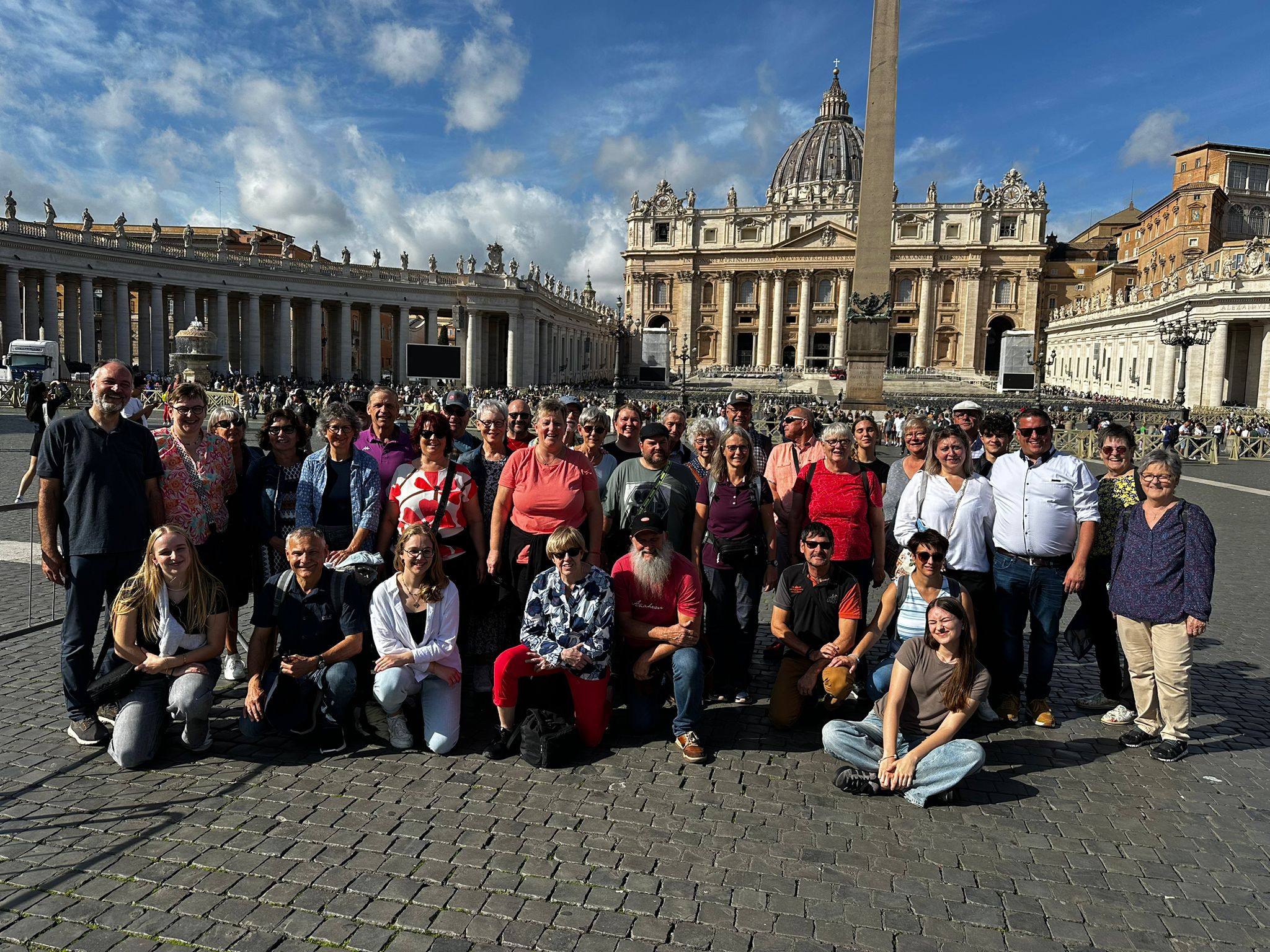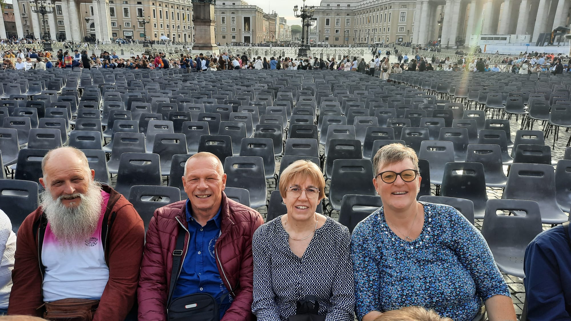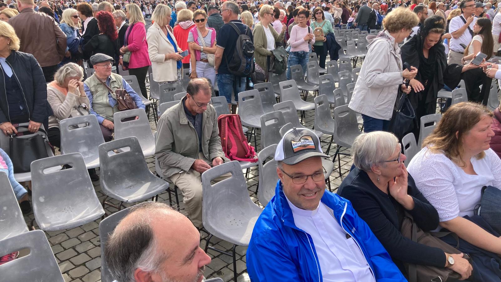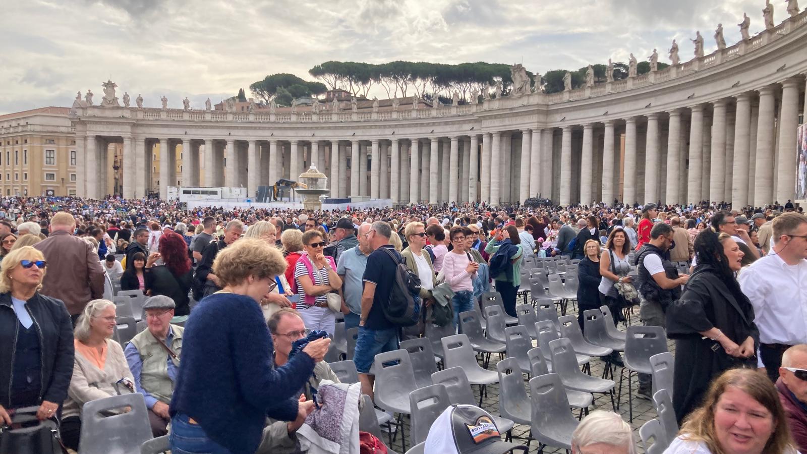 Um 7 Uhr am Mittwochmorgen hiess es Abmarsch zum Petersplatz. Mit dem inzwischen Lieblingsbus Nummer 46 fuhren wir gemeinsam zu der Generalaudienz mit Papst Franziskus. Dank erfahrenem Reisebegleiter konnten die Gruppe aus nächster Nähe den Papst sehen. Eindrücklich war es, dass Papst Franziskus Ansprache nur 45 Minuten ging aber er sich danach ca. 90 Minuten Zeit nahm für die persönliche Begegnung mit den Menschen. Nach einer kleinen Stärkung konnten die Reisenden bei der Schweizergarde im Theatersaal eine besondere Begegnung mit Helena Jeppesen wahrnehmen. Frau Jeppesen gehört zu den Auserwählten, die an der Synode teilnehmen können, und so erzählte sie, dass die Aussichten gross sind und dass es einige Änderungen in der Kirche geben könnte. Wie sie sprach, gibt uns Hoffnung und motiviert sehr.