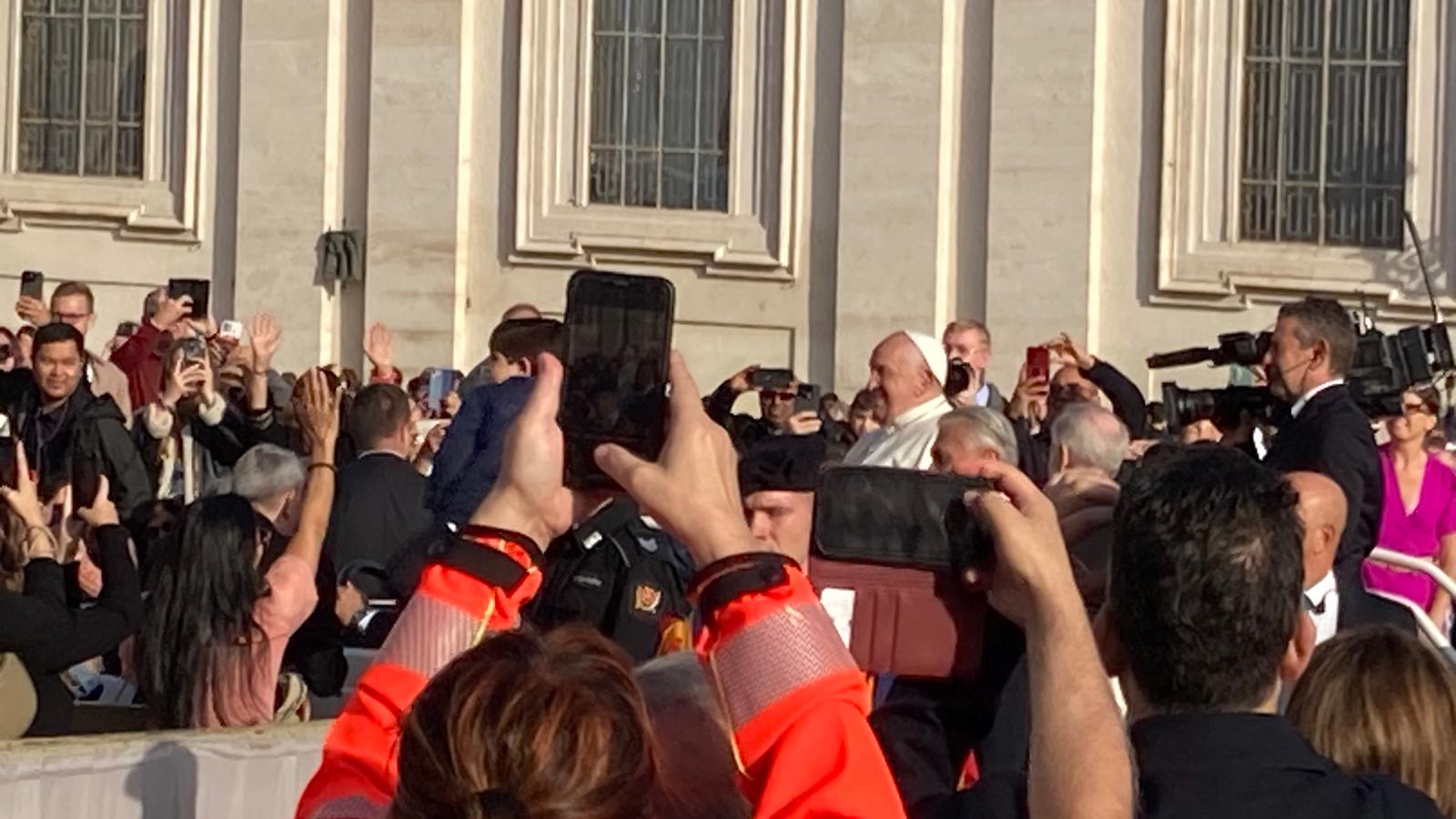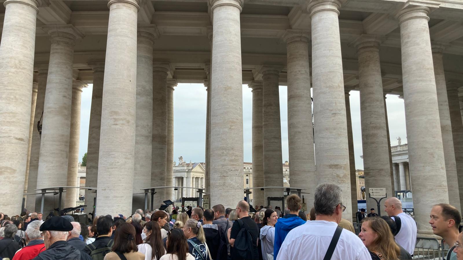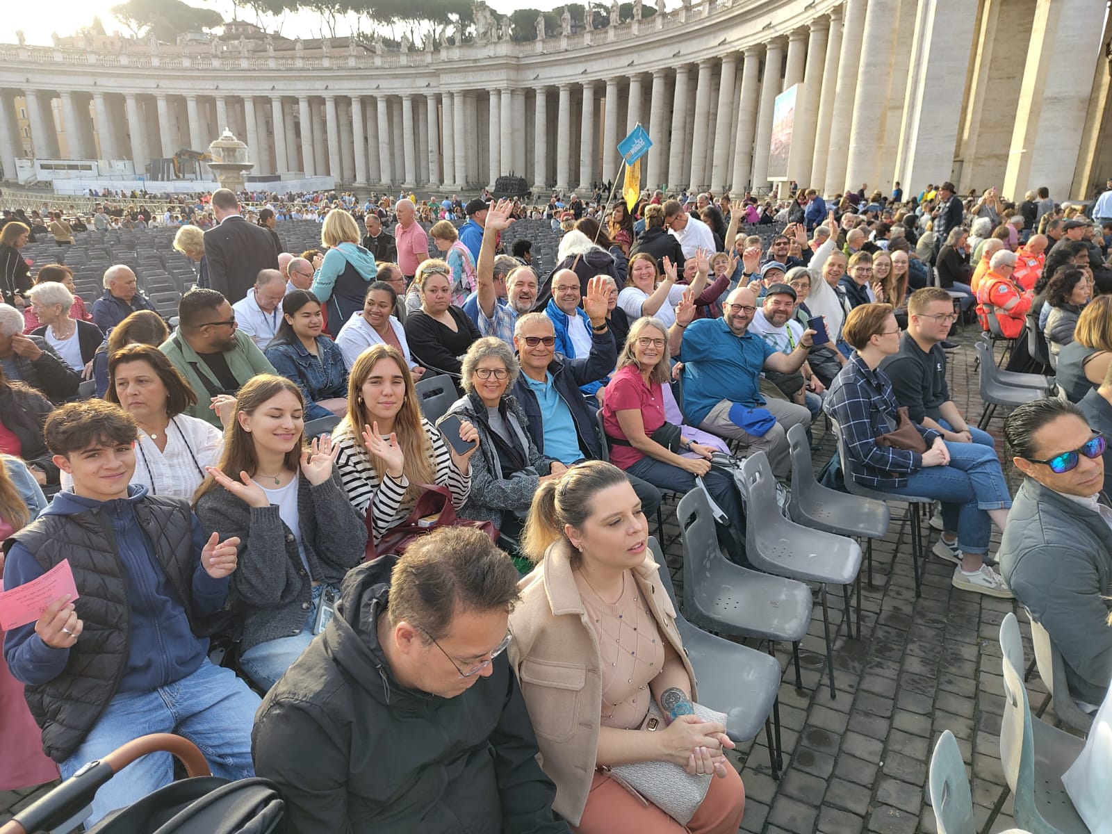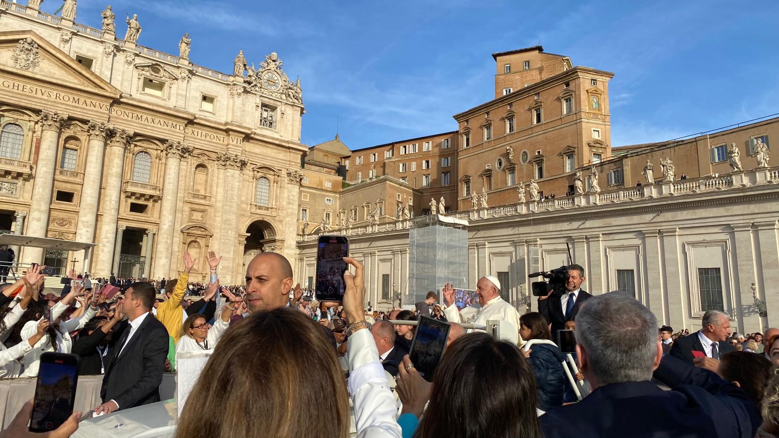 Um 7 Uhr am Mittwochmorgen hiess es Abmarsch zum Petersplatz. Mit dem inzwischen Lieblingsbus Nummer 46 fuhren wir gemeinsam zu der Generalaudienz mit Papst Franziskus. Dank erfahrenem Reisebegleiter konnten die Gruppe aus nächster Nähe den Papst sehen. Eindrücklich war es, dass Papst Franziskus Ansprache nur 45 Minuten ging aber er sich danach ca. 90 Minuten Zeit nahm für die persönliche Begegnung mit den Menschen. Nach einer kleinen Stärkung konnten die Reisenden bei der Schweizergarde im Theatersaal eine besondere Begegnung mit Helena Jeppesen wahrnehmen. Frau Jeppesen gehört zu den Auserwählten, die an der Synode teilnehmen können, und so erzählte sie, dass die Aussichten gross sind und dass es einige Änderungen in der Kirche geben könnte. Wie sie sprach, gibt uns Hoffnung und motiviert sehr.