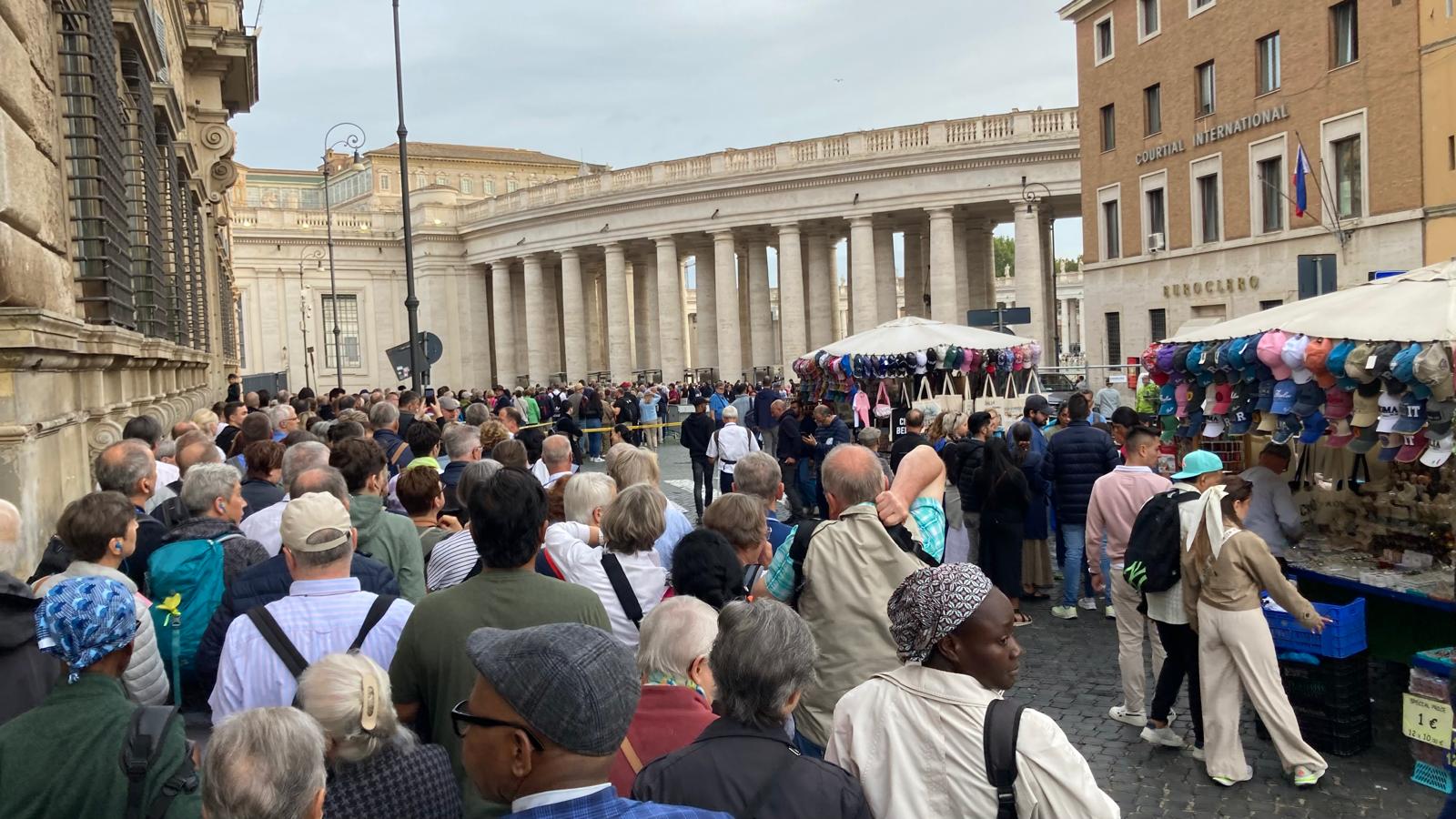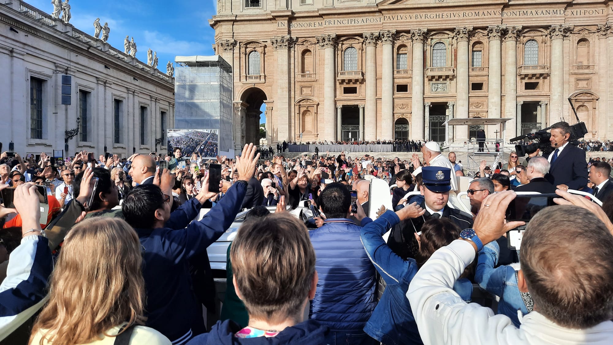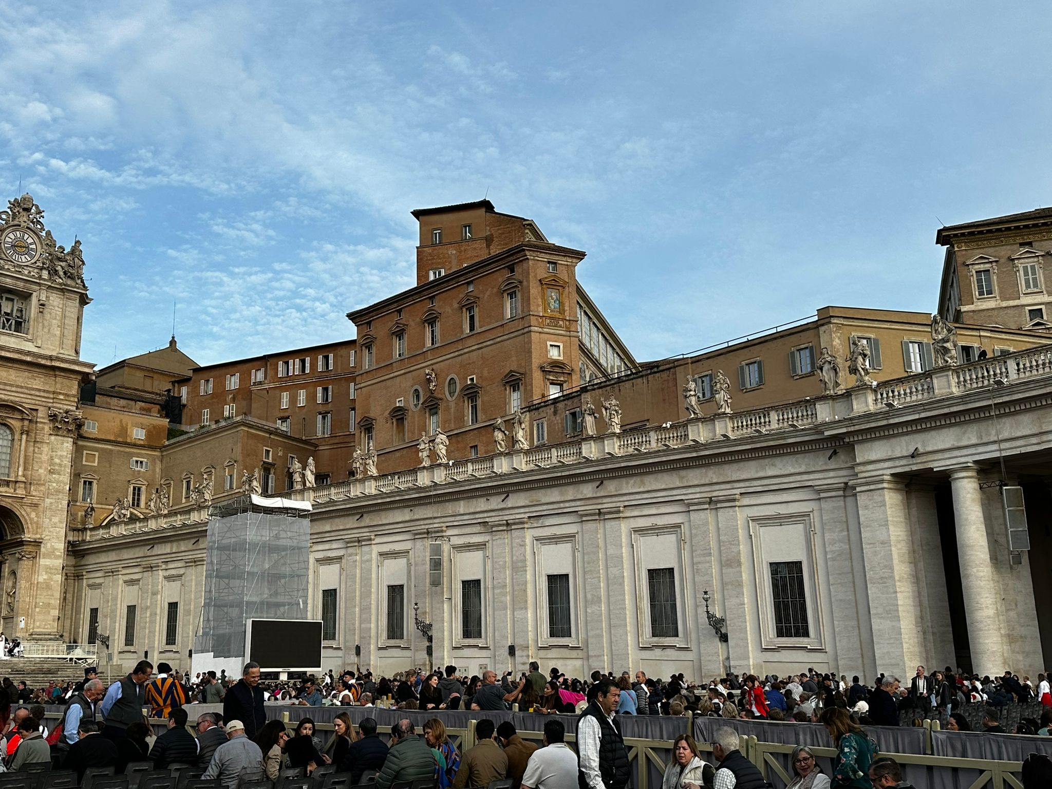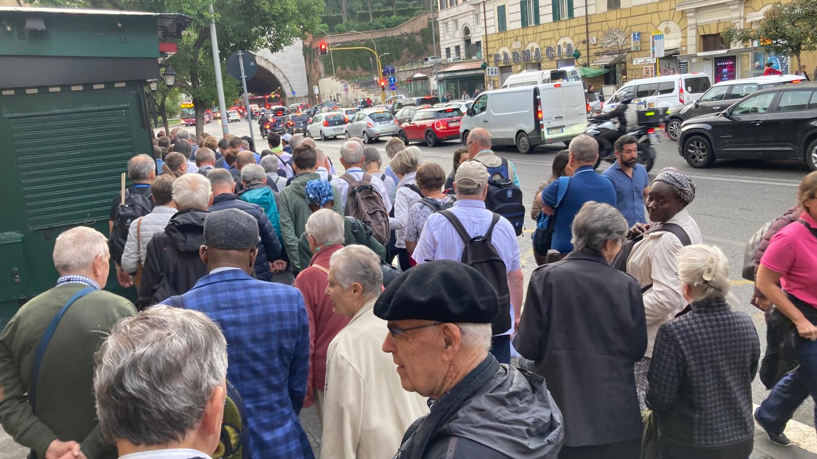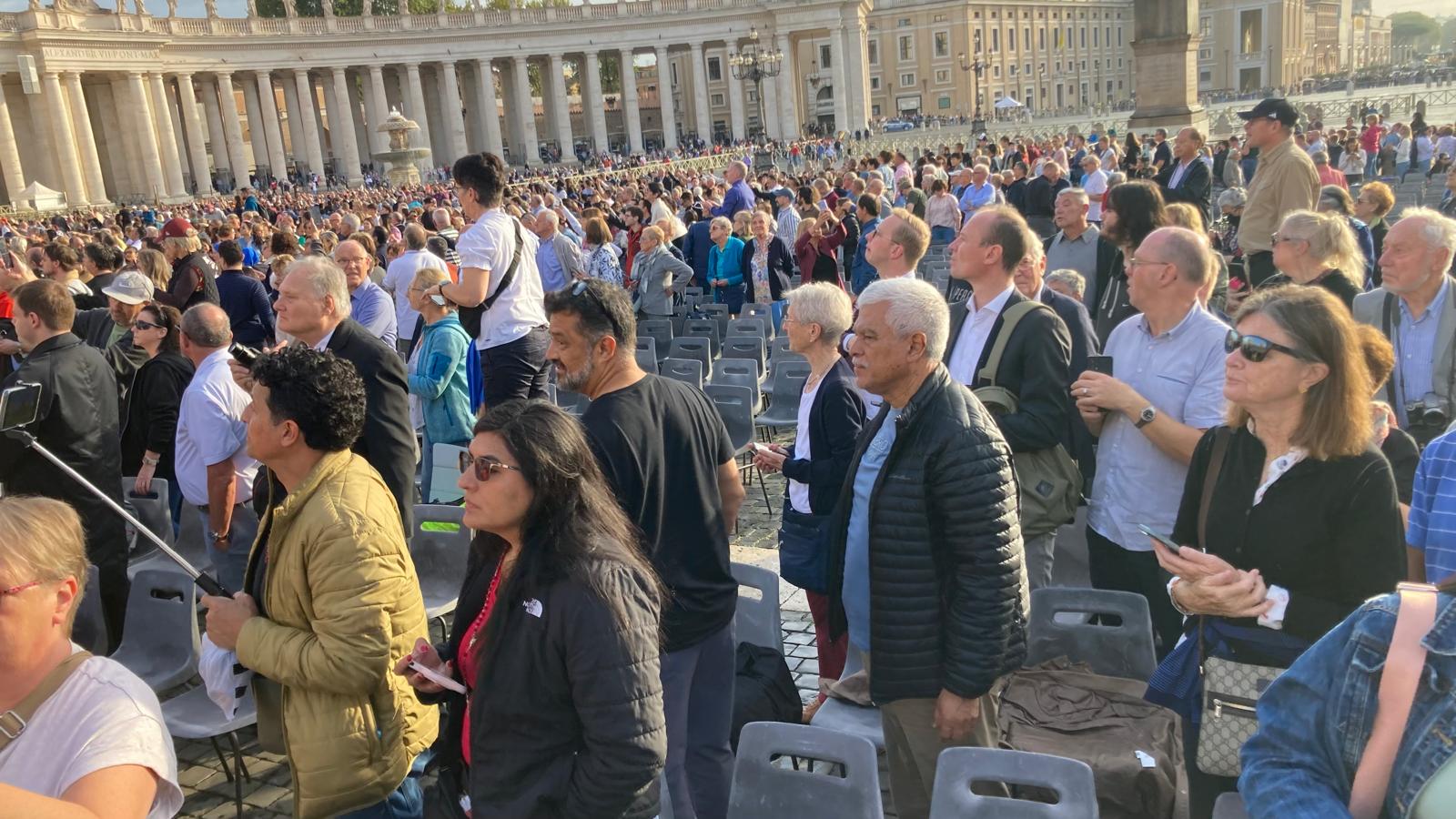 Um 7 Uhr am Mittwochmorgen hiess es Abmarsch zum Petersplatz. Mit dem inzwischen Lieblingsbus Nummer 46 fuhren wir gemeinsam zu der Generalaudienz mit Papst Franziskus. Dank erfahrenem Reisebegleiter konnten die Gruppe aus nächster Nähe den Papst sehen. Eindrücklich war es, dass Papst Franziskus Ansprache nur 45 Minuten ging aber er sich danach ca. 90 Minuten Zeit nahm für die persönliche Begegnung mit den Menschen. Nach einer kleinen Stärkung konnten die Reisenden bei der Schweizergarde im Theatersaal eine besondere Begegnung mit Helena Jeppesen wahrnehmen. Frau Jeppesen gehört zu den Auserwählten, die an der Synode teilnehmen können, und so erzählte sie, dass die Aussichten gross sind und dass es einige Änderungen in der Kirche geben könnte. Wie sie sprach, gibt uns Hoffnung und motiviert sehr.