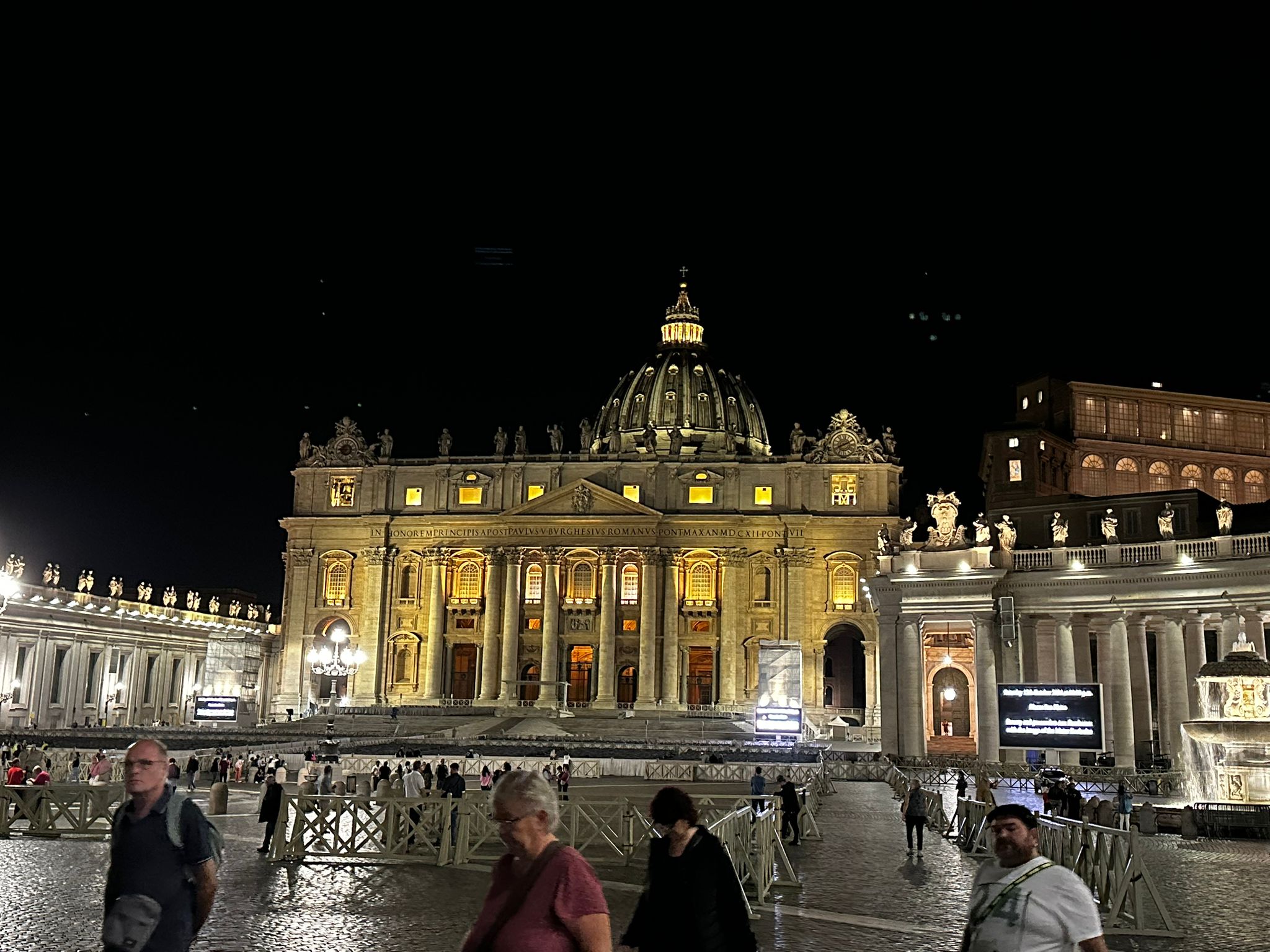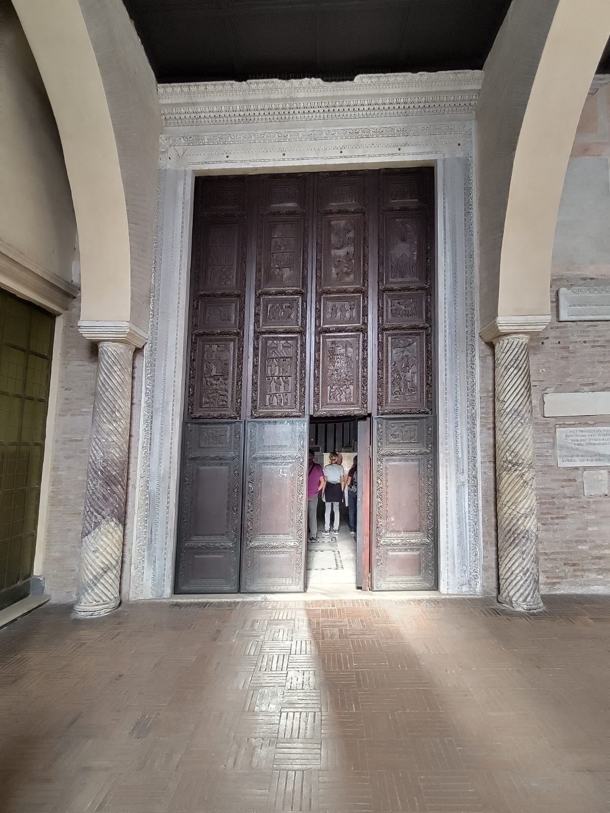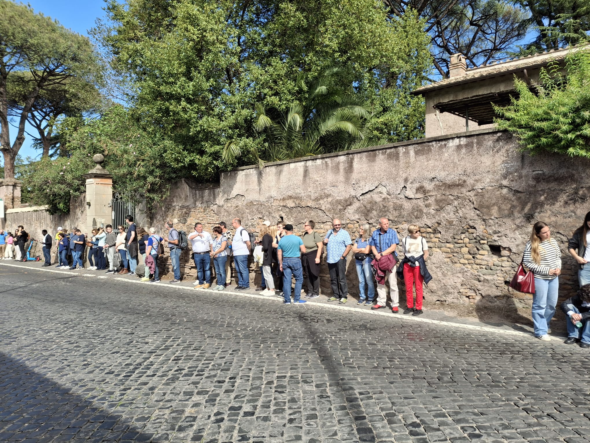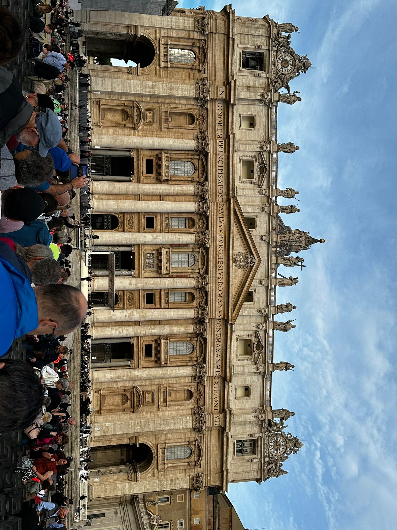 Gestärkt und ein wenig ausgeruht bewunderte man die «Basilica San Paolo fluori le mura» Paul vor der Mauer. Die Gruppe spazierte über den Aventin, auf der eine der ältesten Kirchen Roms liegt, die «Santa Sabina. Den Blick durch das Schlüsselloch bei der «Villa del Priorato di Malta», dem Hauptsitze des Souveränen Malteserordens, durfte nicht im Programm fehlen. Was die Gruppe aber durch das Schlüsselloch sah, verraten wir nicht, das muss man selber gesehen haben. Es ist eine Reise wert. Gegen 17 Uhr beschloss der eine Teil der Gruppe, noch in den Petersdom zu gehen, da die Warteschlange nicht mehr so gross war, mit dem Verzicht die Kuppel zu besteigen, da diese um 17 Uhr schlisst. Das Abendessen konnten die Reisenden auf der Piazza Navona zu sich nehmen, anschliessend fielen die meisten müde und mit vielen Eindrücken in den Schlaf.