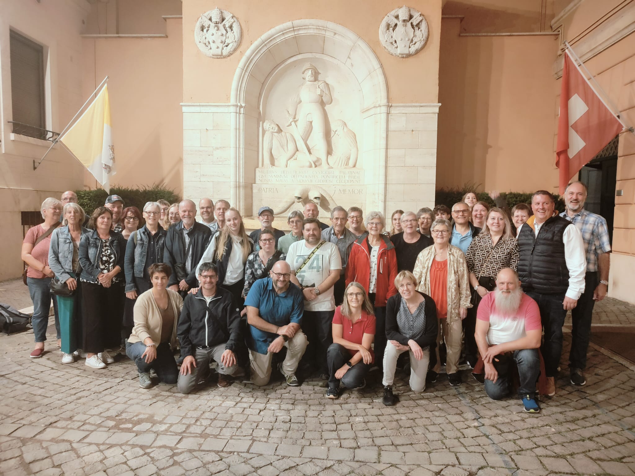 Um 16.30 Uhr konnten wir eine sehr persönliche Führung durch die Schweizergarde erleben. Mit sehr viel neuen und interessanten Informationen über die Schweizergardisten konnte die Reisenden einen Apero im Innenhof geniessen. In der Kapelle der Schweizergarde wurde zuletzt noch ein schöner Gottesdienst gefeiert. Aber der Tag war noch nicht vorbei, denn wir begaben uns noch zu der »Spanischen Treppe» und von dort aus zum «Trevi-Brunnen». Müde kamen wir beim Hotel «Casa per ferie Ravasco» an und fielen mit vielen Endrücken ins Bett.