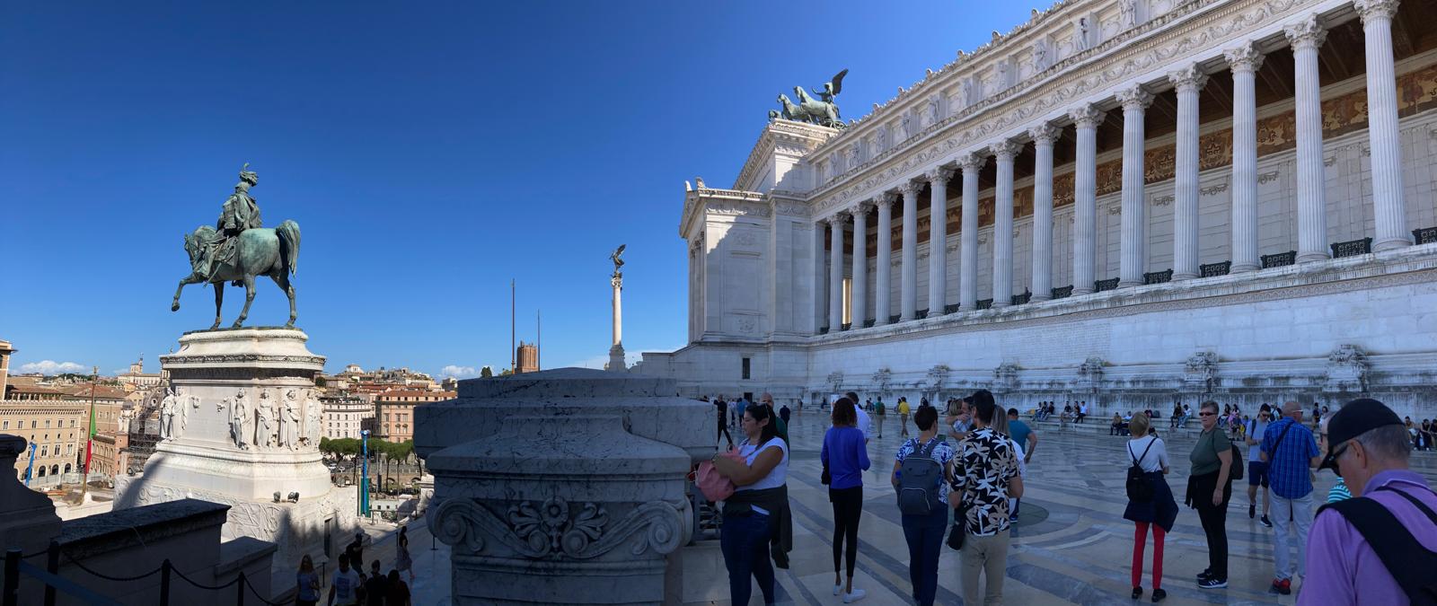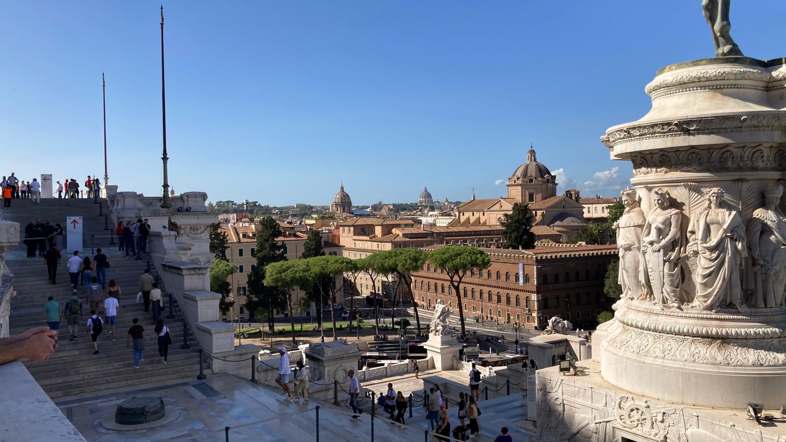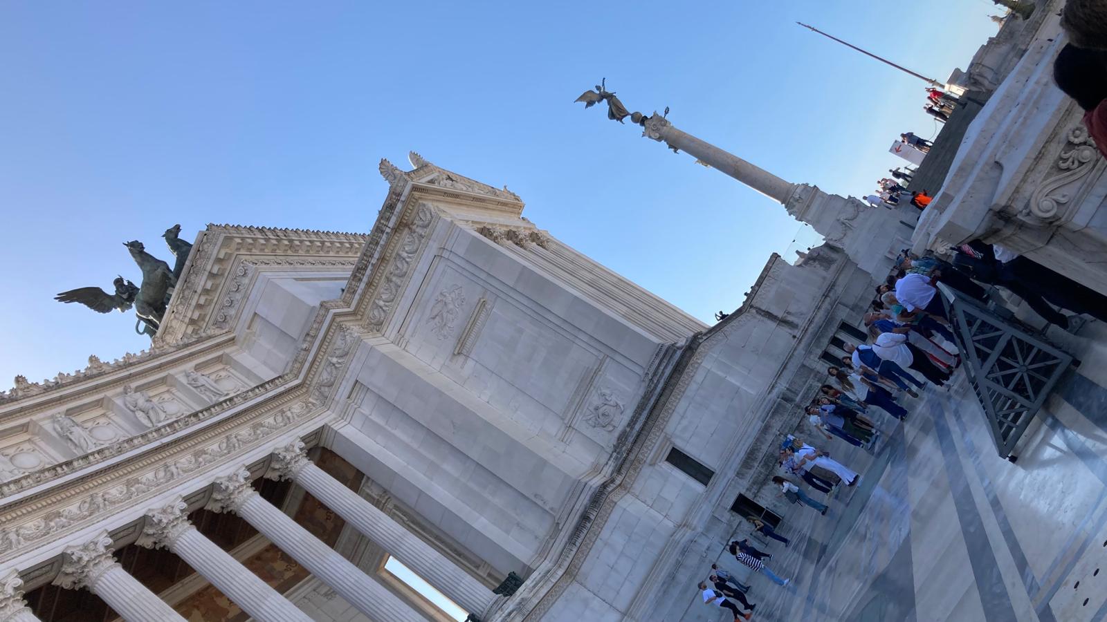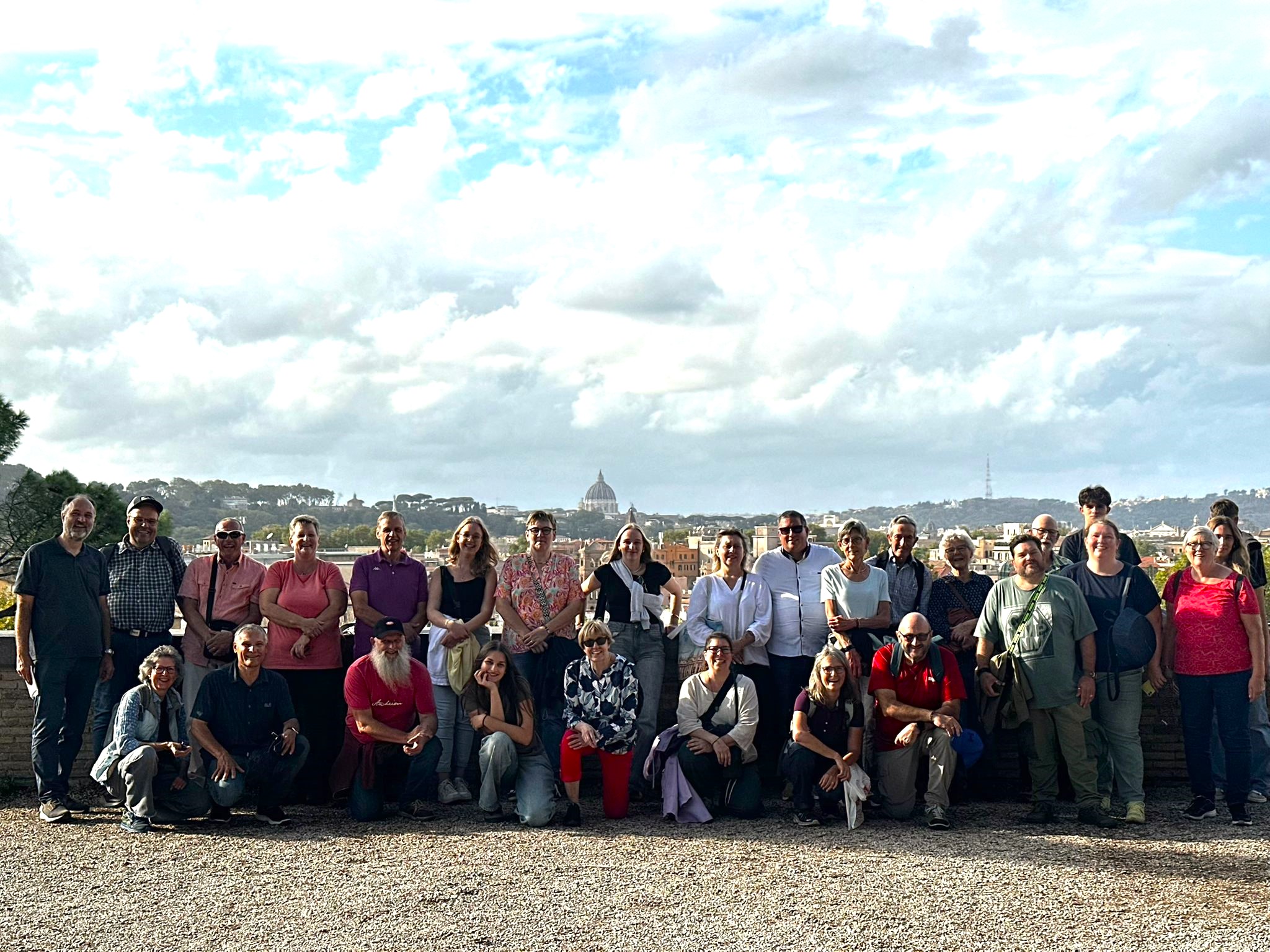 Einige wollten nach den Katakomben noch in den Petersom, um die Kuppel zu erklimmen und die sagenhafte Aussicht zu geniessen. Andere bewunderten die wunderschöne schlichte Kirche «Santa Maria sopra Minverva» die die Grabstätte der heiligen Katarina von Siena beherbergt. Eine dritte Gruppe genoss die herrliche Aussicht von der Dachterrasse des Nationaldenkmals.