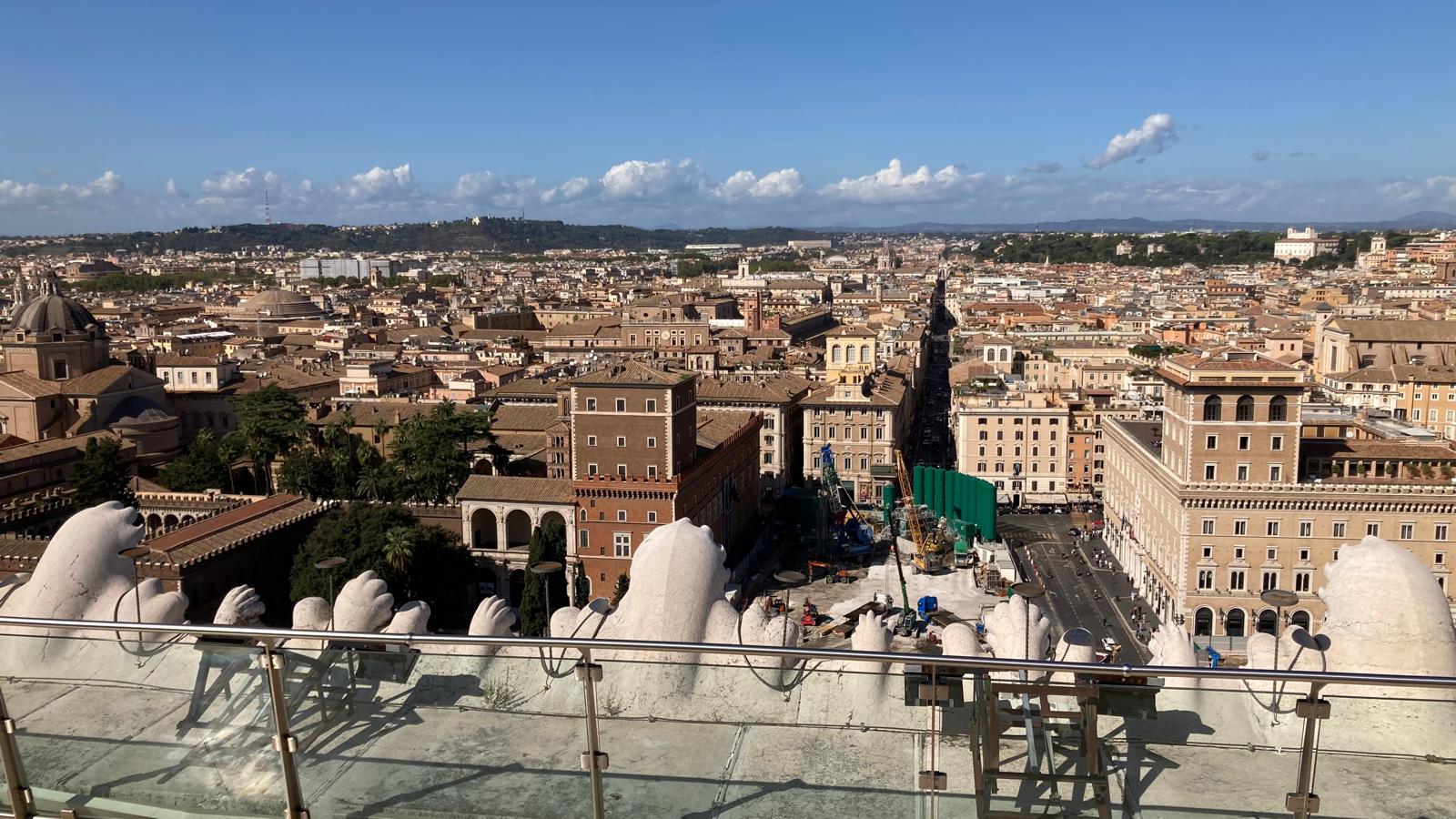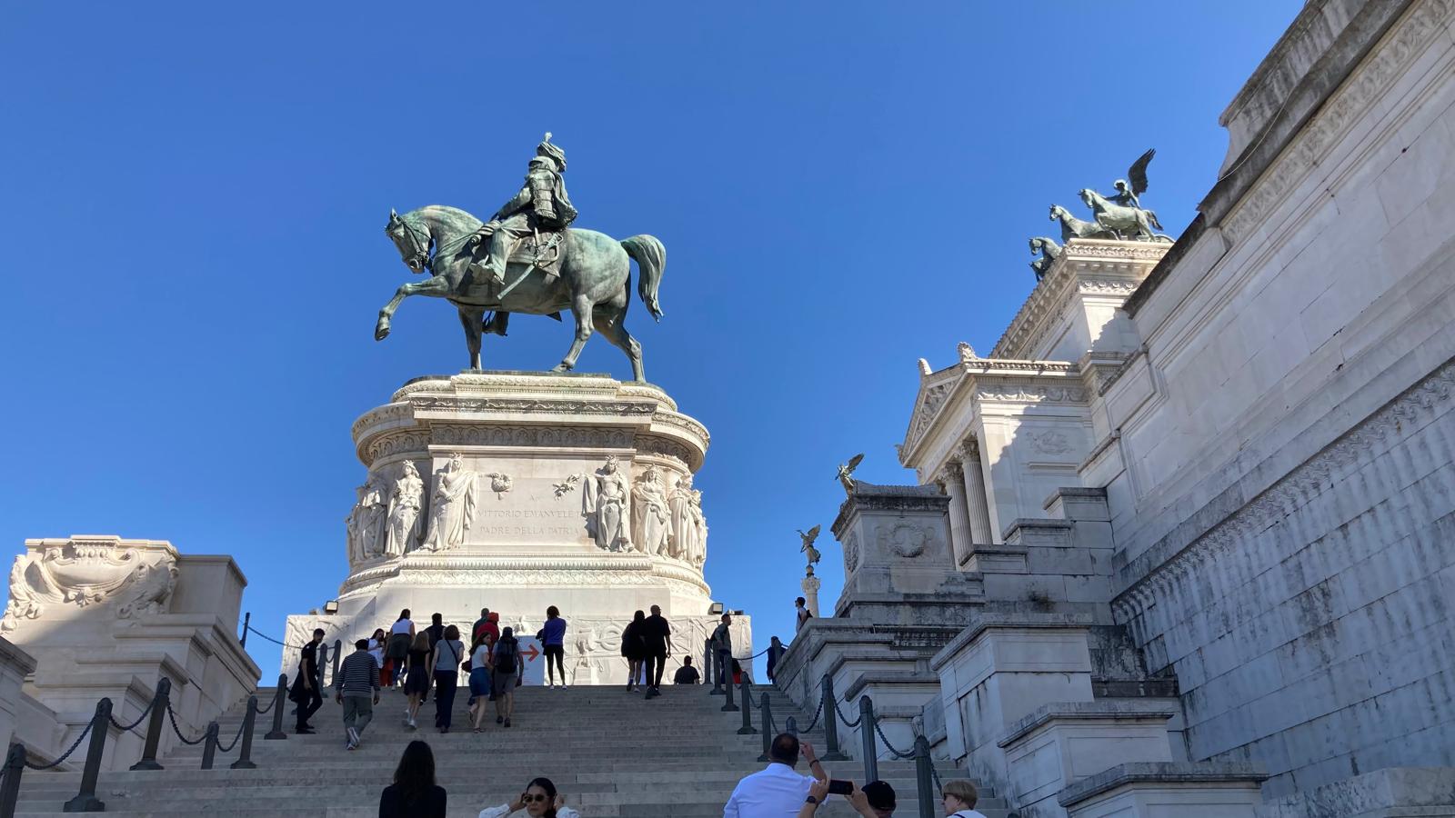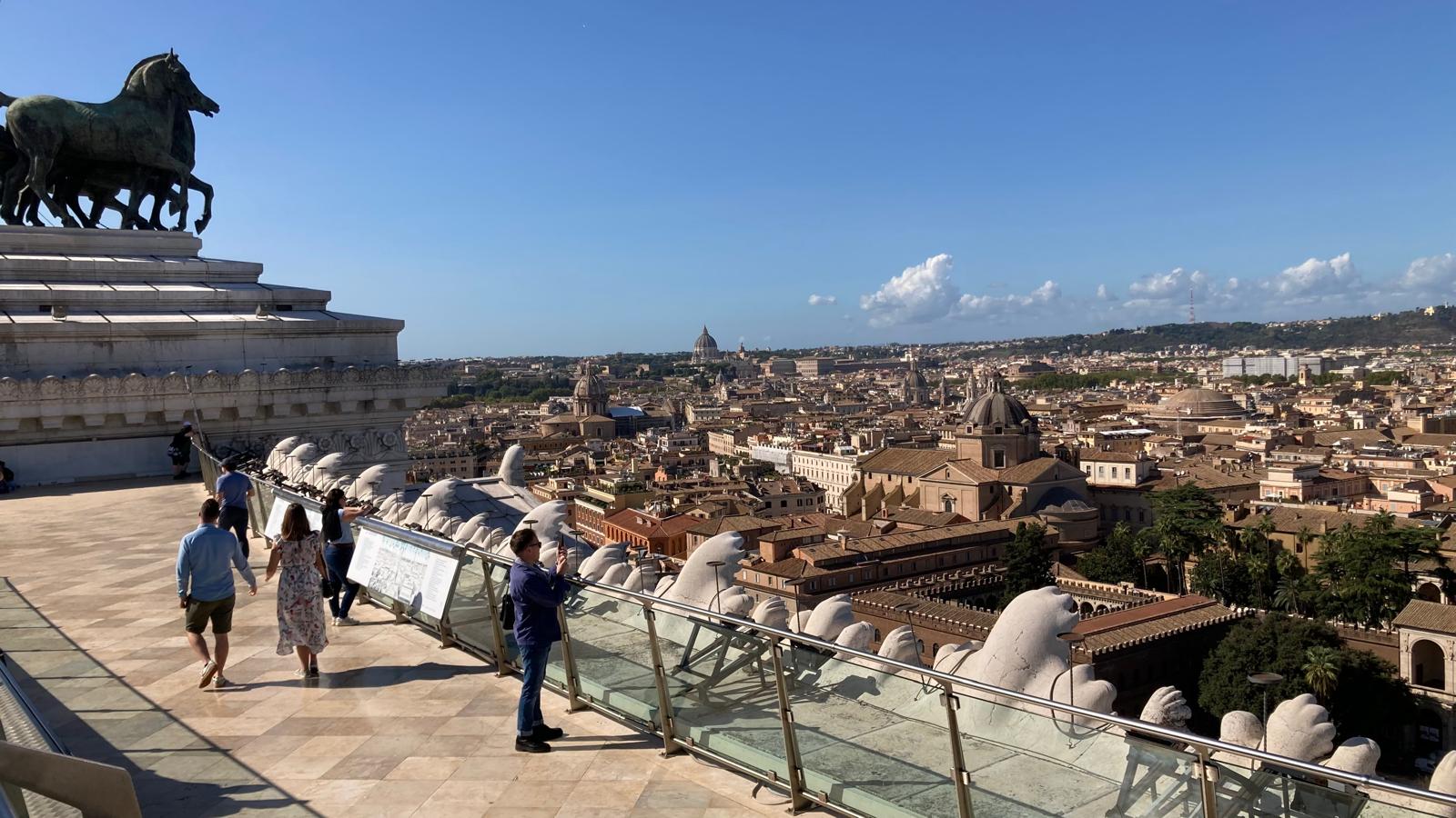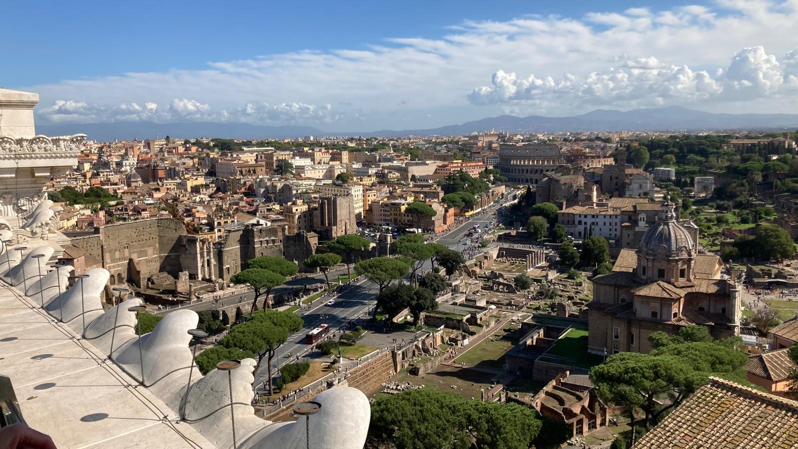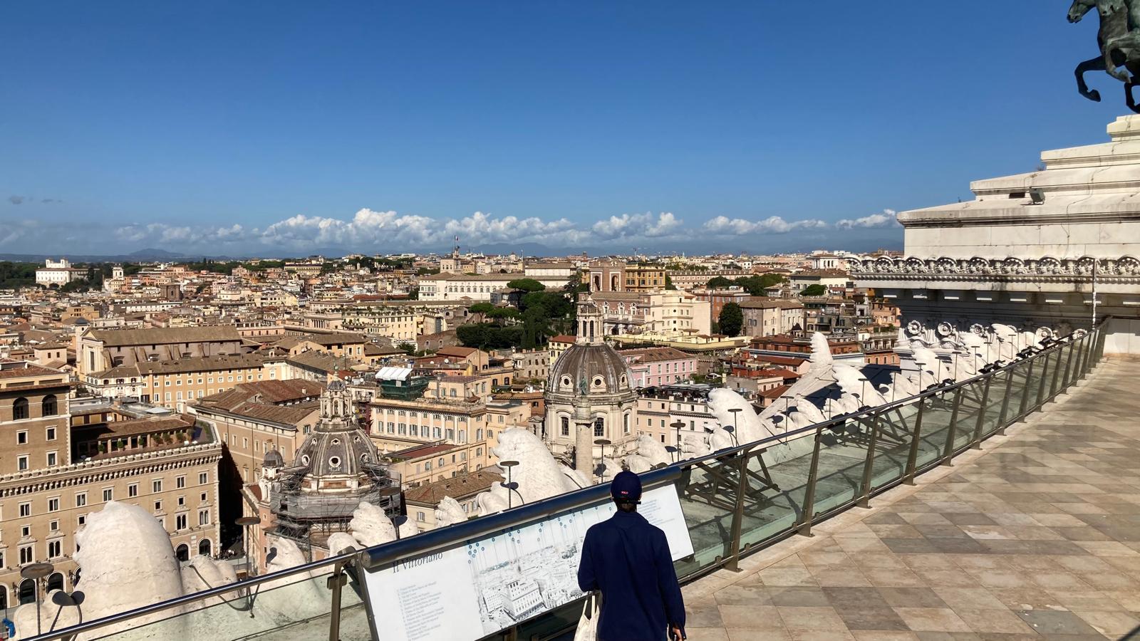Einige wollten nach den Katakomben noch in den Petersom, um die Kuppel zu erklimmen und die sagenhafte Aussicht zu geniessen. Andere bewunderten die wunderschöne schlichte Kirche «Santa Maria sopra Minverva» die die Grabstätte der heiligen Katarina von Siena beherbergt. Eine dritte Gruppe genoss die herrliche Aussicht von der Dachterrasse des Nationaldenkmals.