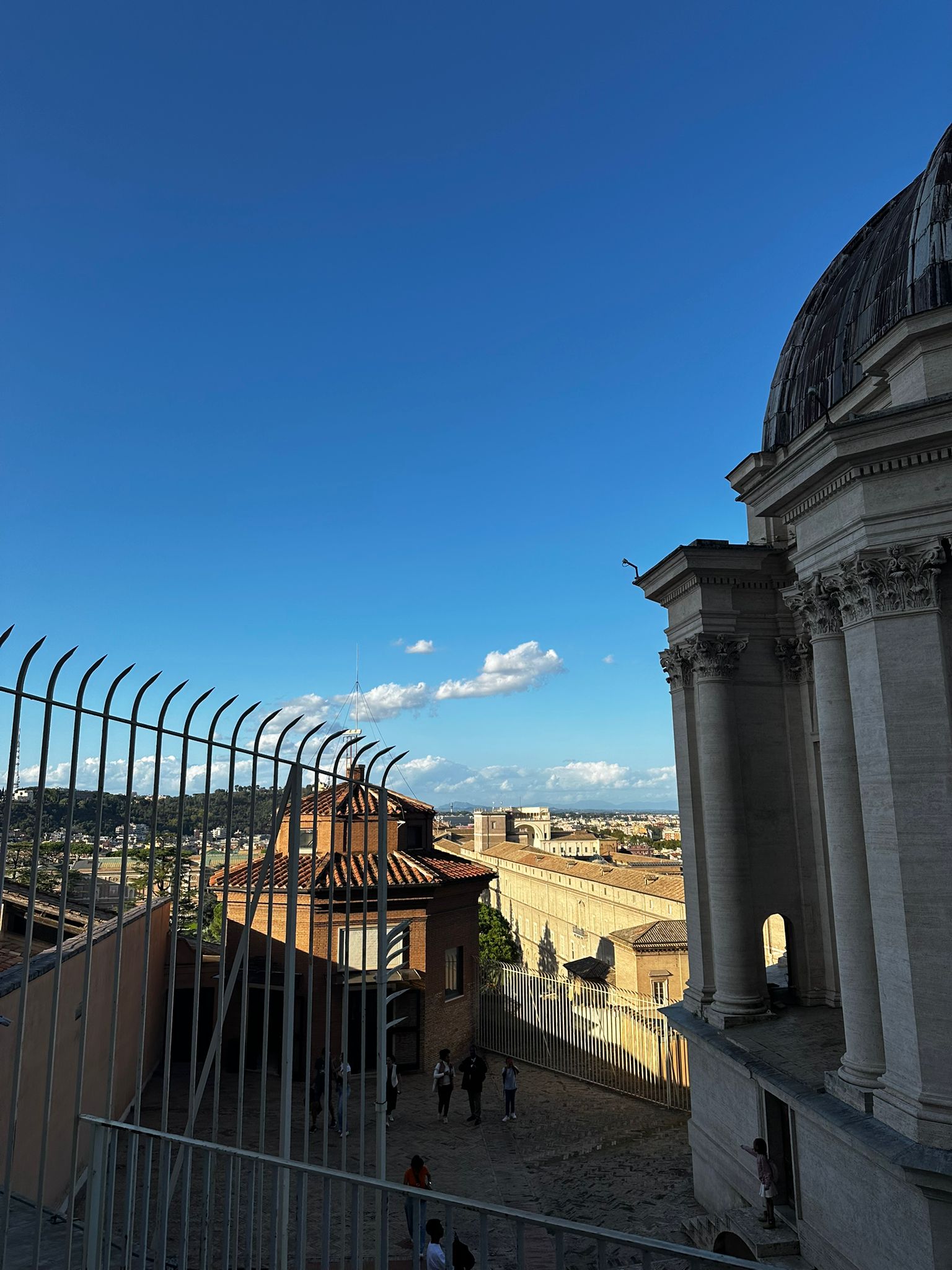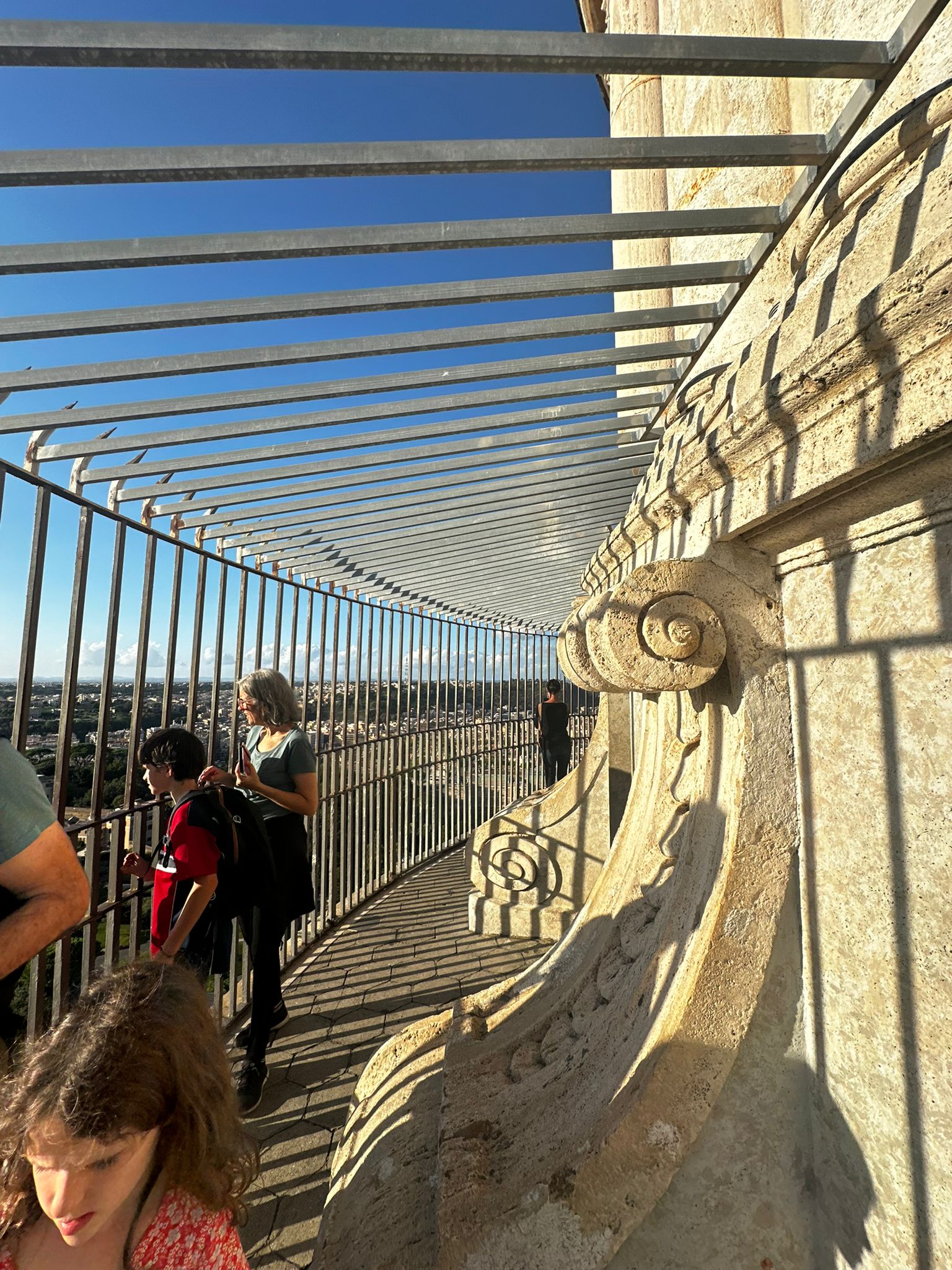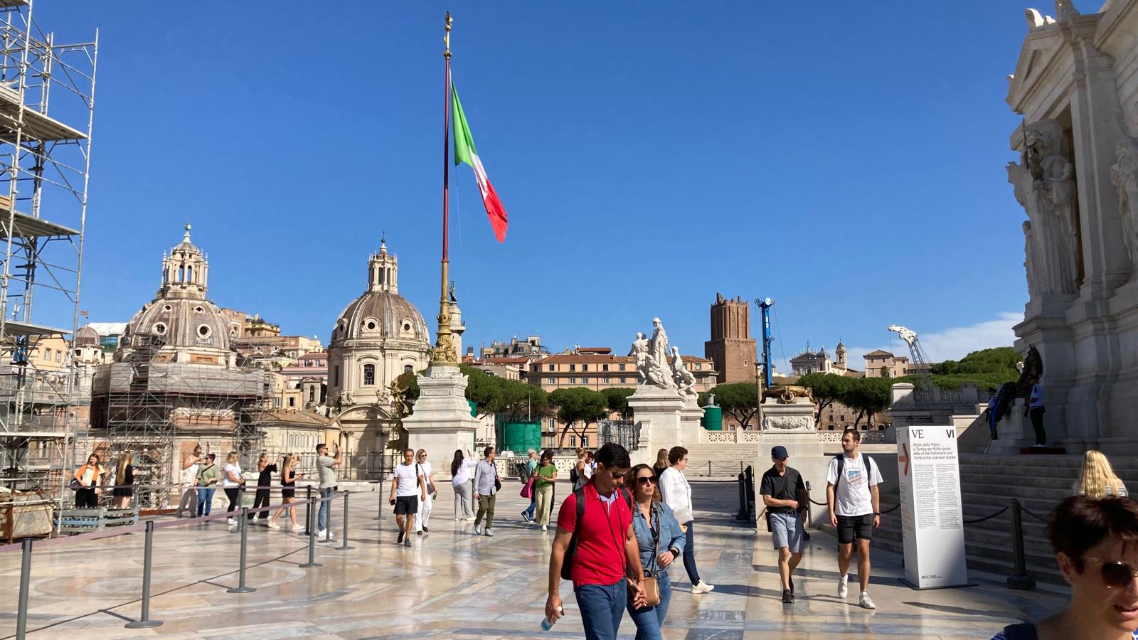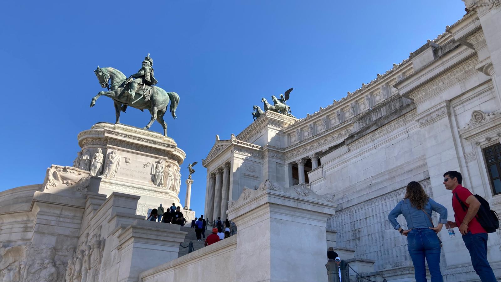 Einige wollten nach den Katakomben noch in den Petersom, um die Kuppel zu erklimmen und die sagenhafte Aussicht zu geniessen. Andere bewunderten die wunderschöne schlichte Kirche «Santa Maria sopra Minverva» die die Grabstätte der heiligen Katarina von Siena beherbergt. Eine dritte Gruppe genoss die herrliche Aussicht von der Dachterrasse des Nationaldenkmals.