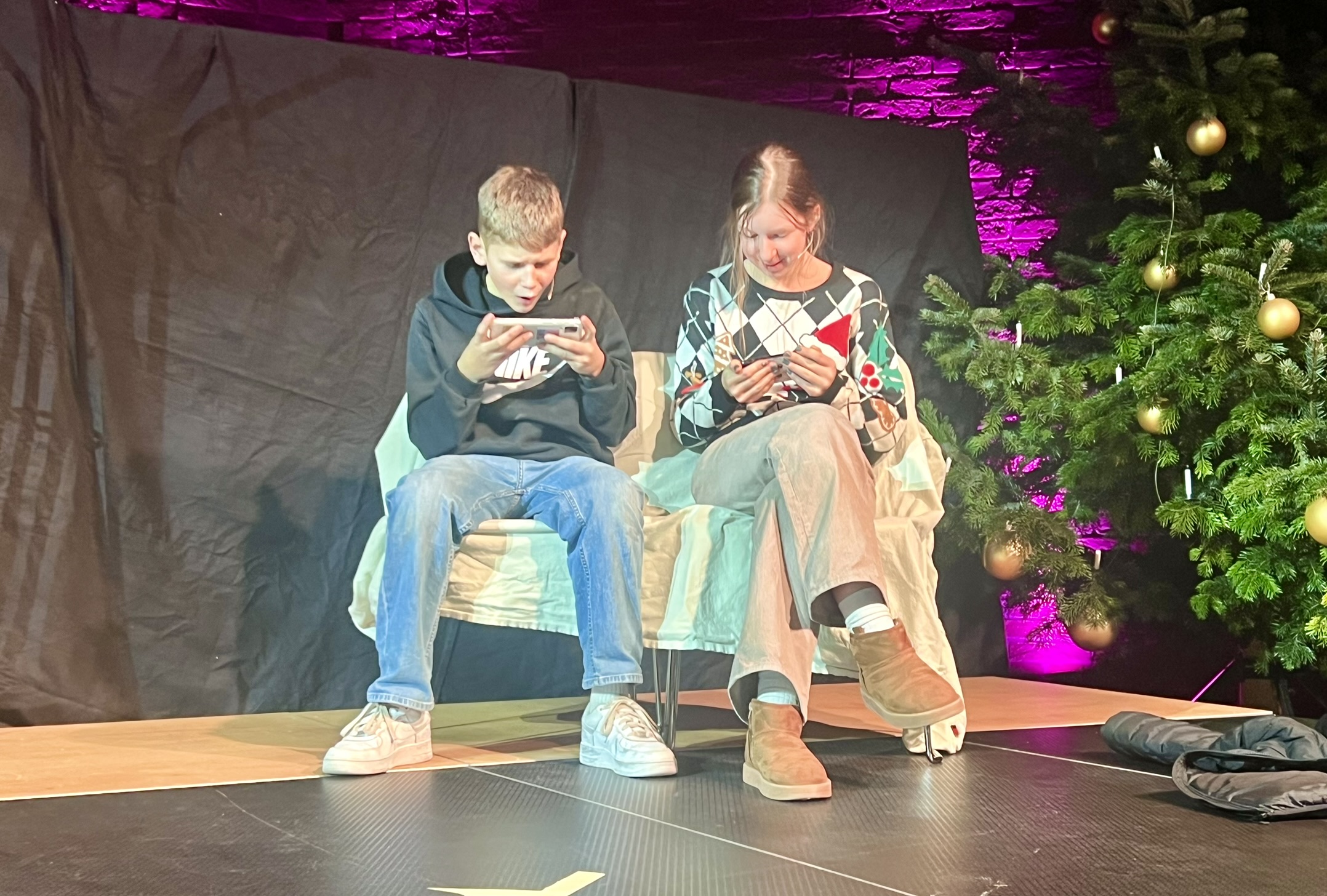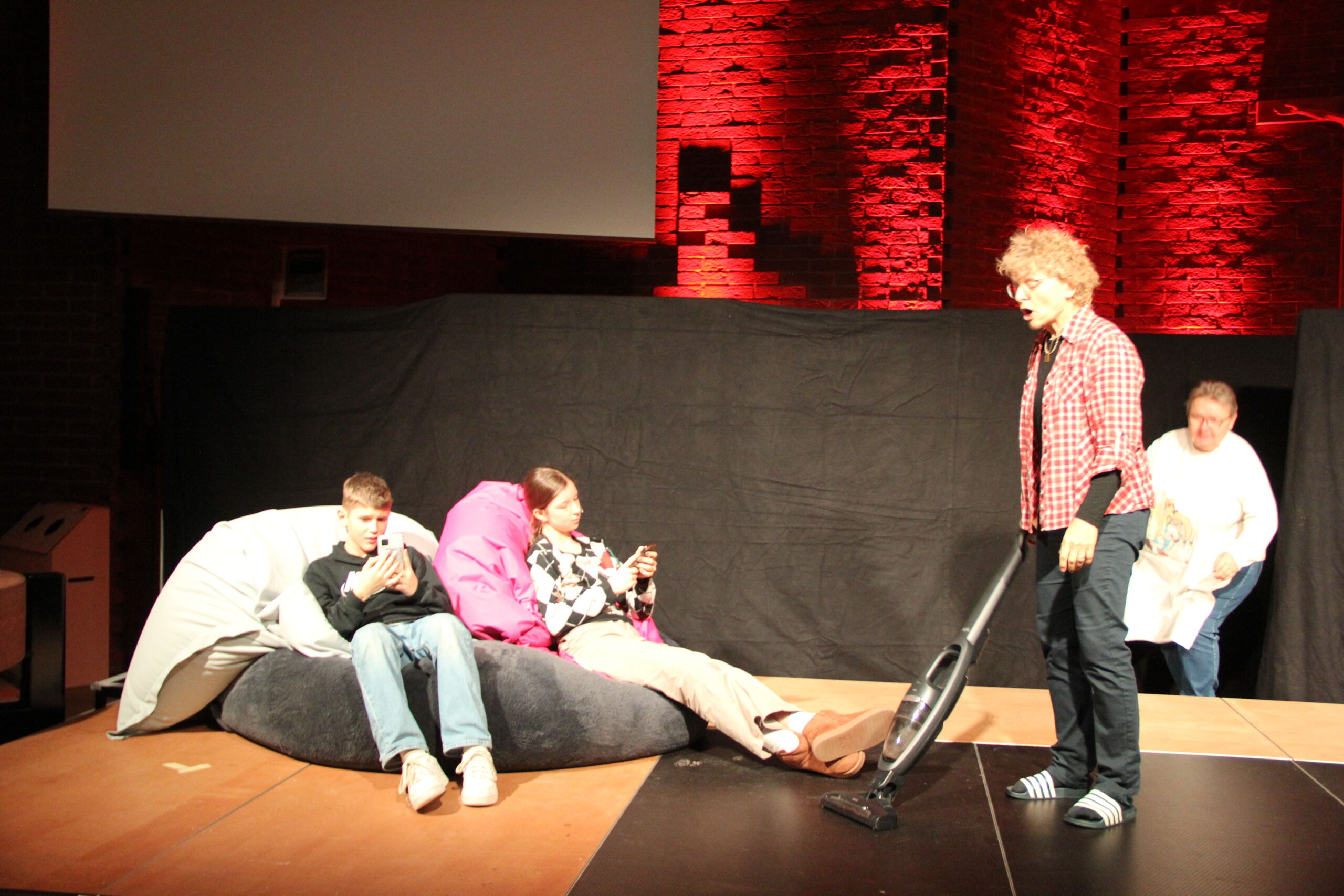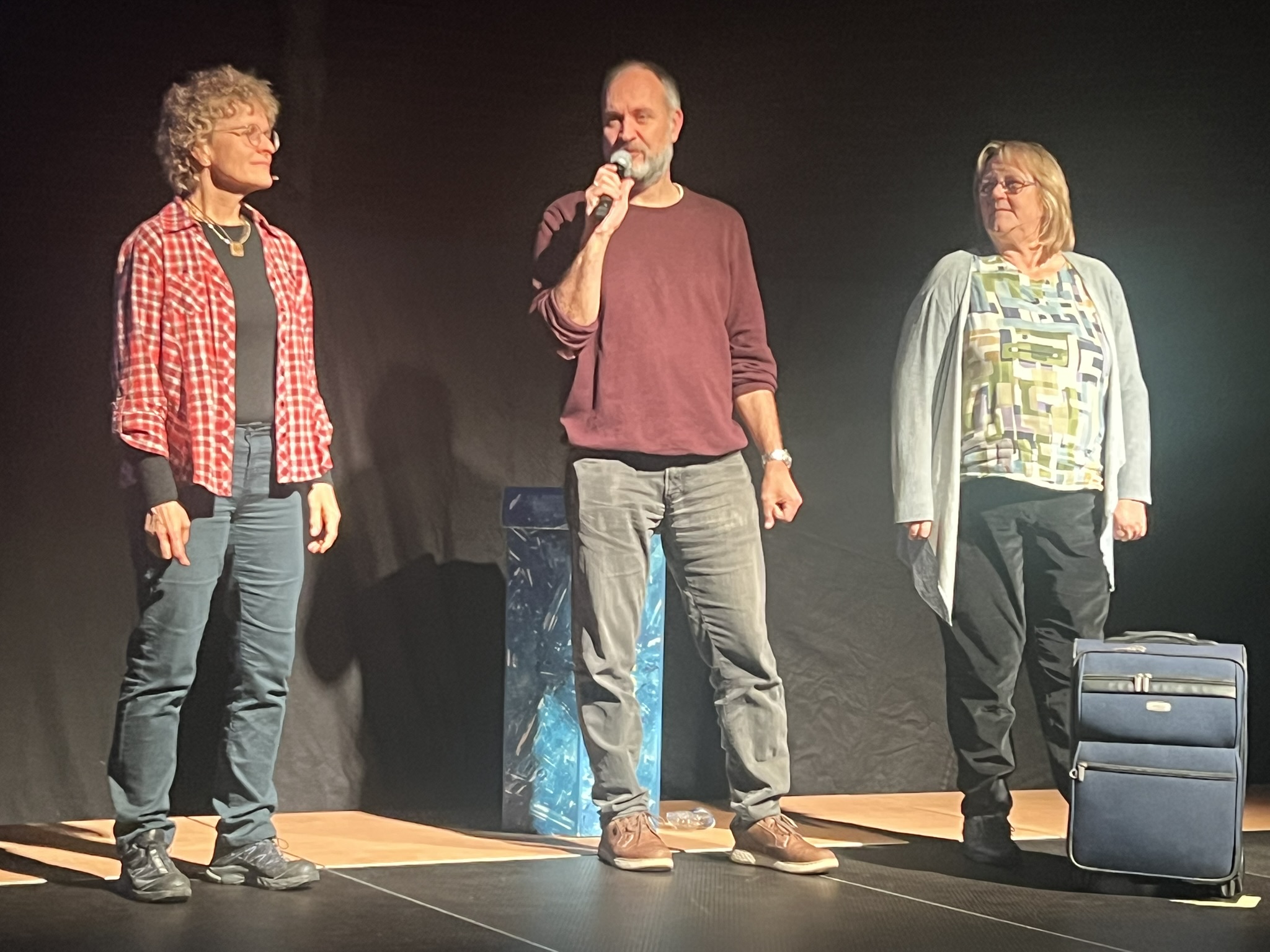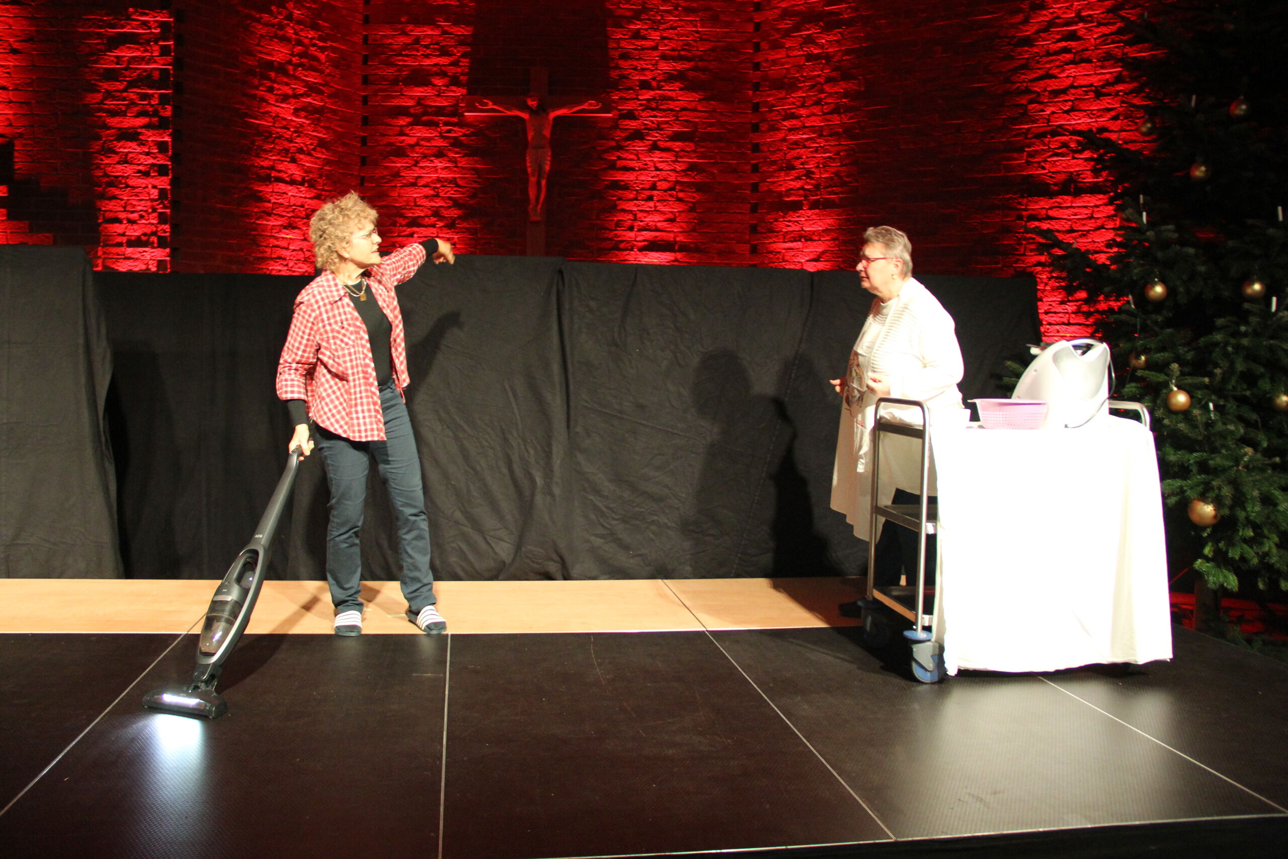 In diesem Jahr waren es nicht Maria und Josef, Hirten und Könige, sondern Menschen wie du und ich, die sich zunächst ganz normal auf die Weihnachtsfeiertage vorbereiteten. Den eigentlichen Sinn von Weihnachten kennen nur noch wenige, wie z. B. der Grossvater Nonno Pi (gespielt von Giuseppe Longo). Der jungen Mutter Angie (gespielt von Clia Bugmann) geht es vor allem um coole Fotos für ihren SocialMedia-Account, und die Krippenfiguren, die sie zufällig in einem alten Koffer auf dem Recycling-Hof finden, sind für die Teenies (gepsielt von Jette John und Til Schmidt-Taube) ziemlich uninteressant. Nur die etwas verwirrt scheinende ältere Dame Hannah (gespielt von Maria Longo) scheint mehr zu wissen als alle anderen. Sie ist immer im richtigen Moment am richtigen Ort und macht die richtigen Dinge, die aber oft erst später Sinn ergeben.