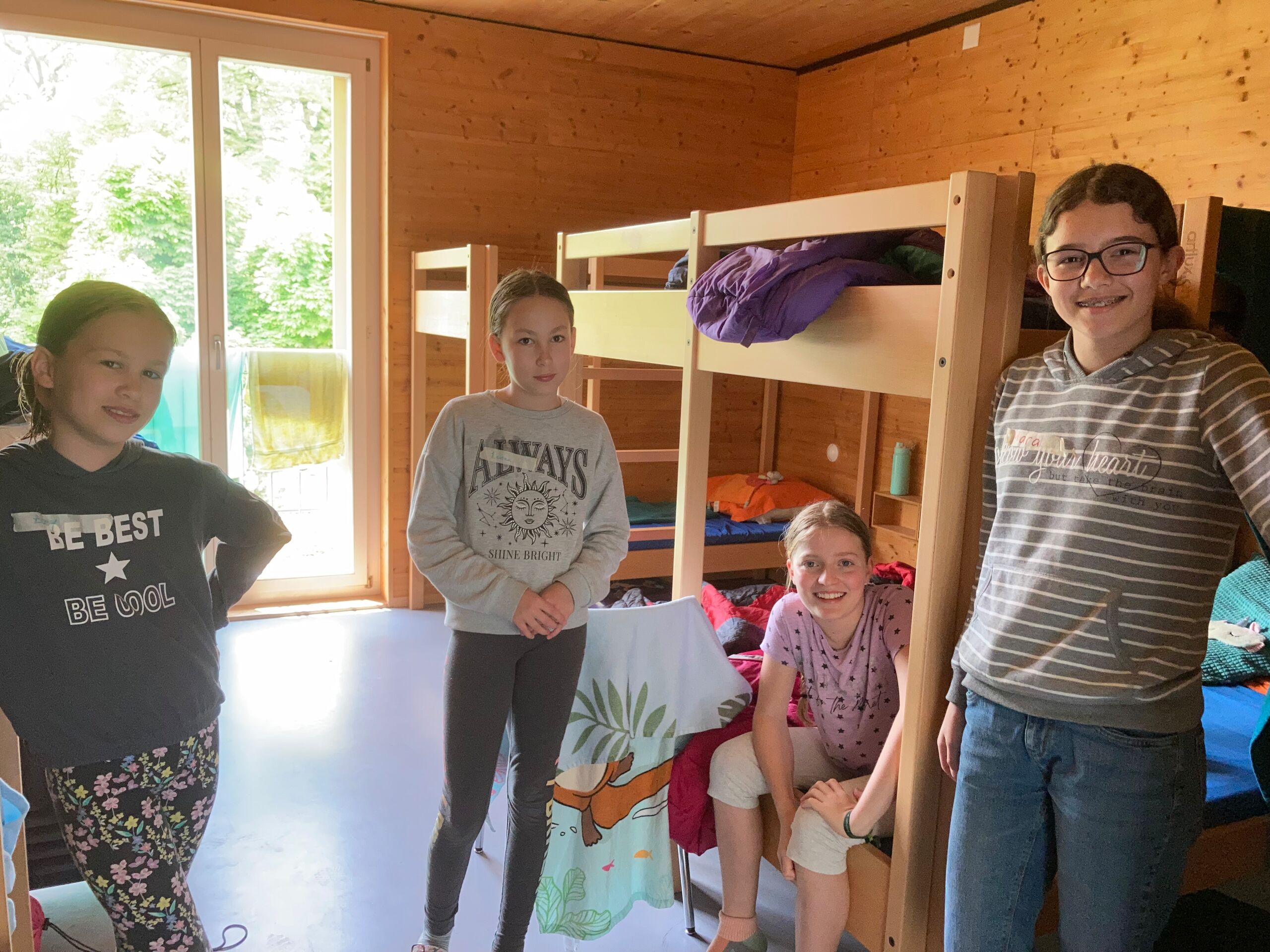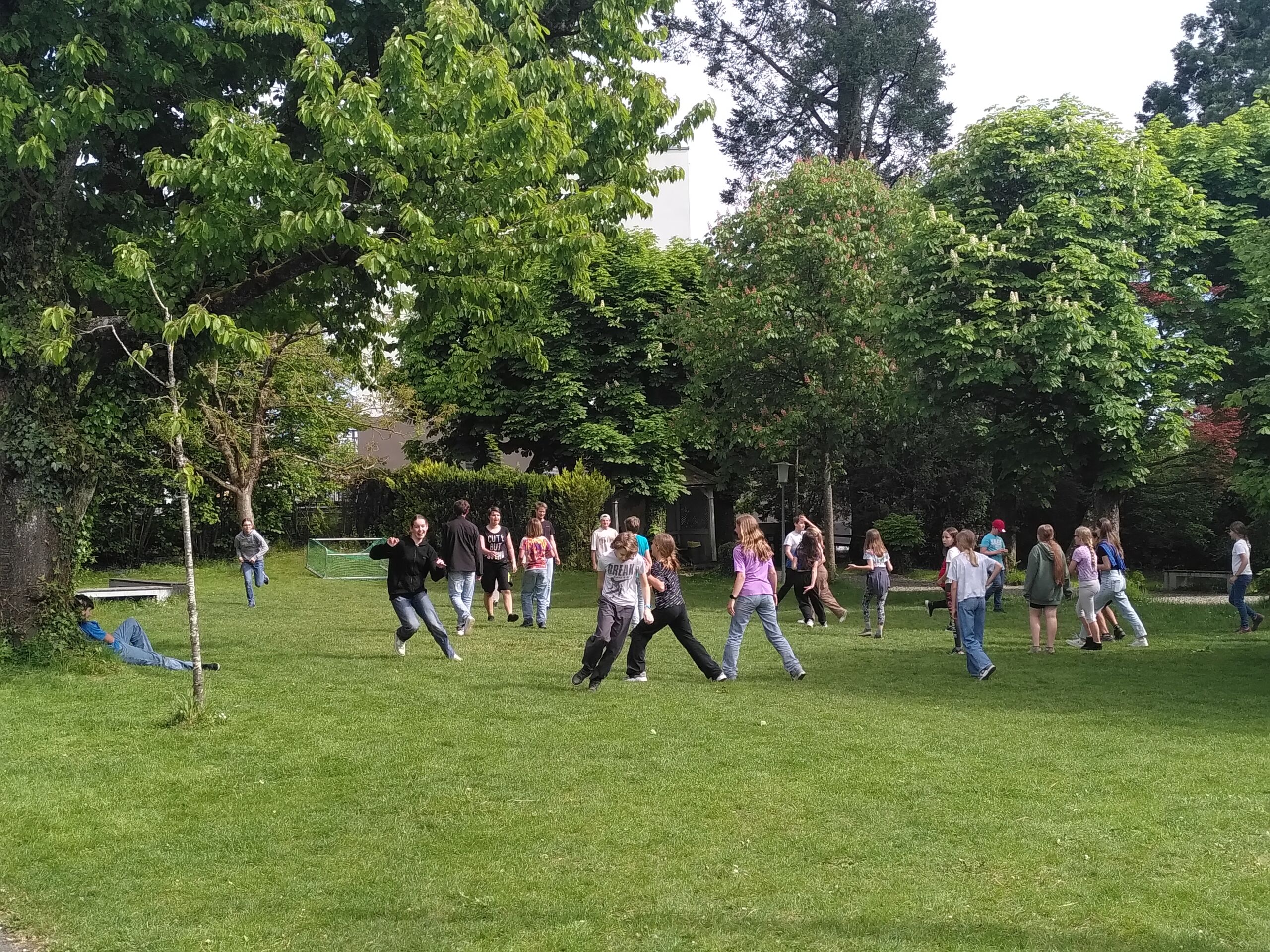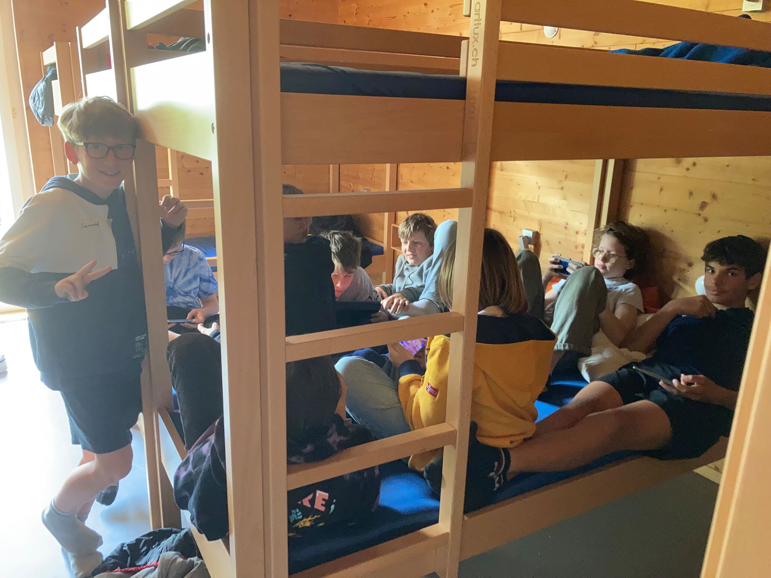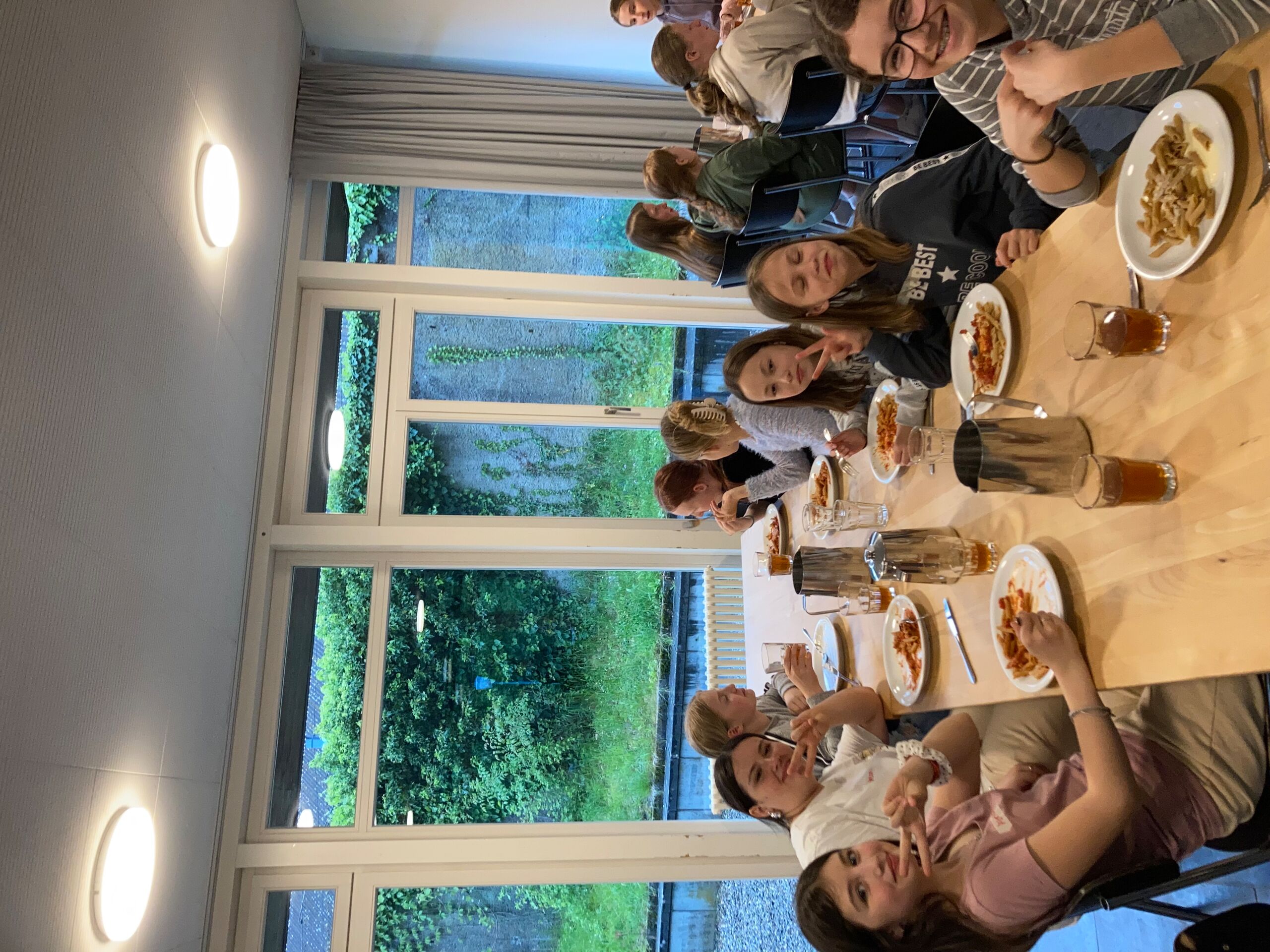 Schon bei der Abfahrt am Freitagnachmittag am Bahnhof Döttingen war die Spannung und Vorfreude spürbar. Nach einer rund einstündigen Zugfahrt und einem kurzen Fussweg vom Bahnhof Aarburg-Oftringen stand die Gruppe im herrlichen Park der „Villa Jugend“ und richtete sich kurz darauf in den 8er-Zimmern ein. Zum letzten Mal stand Pfarrer Stefan Essig in der Küche, unterstützt von drei Oberstufenschüler*innen. Mit Teigwaren und verschiedenen Saussen konnten sich alle für die Kennenlernspiele am Abend stärken. Und vor dem Schlafengehen gab es noch feinen Kuchen, den die Eltern ihren Kindern mitgegeben hatten.