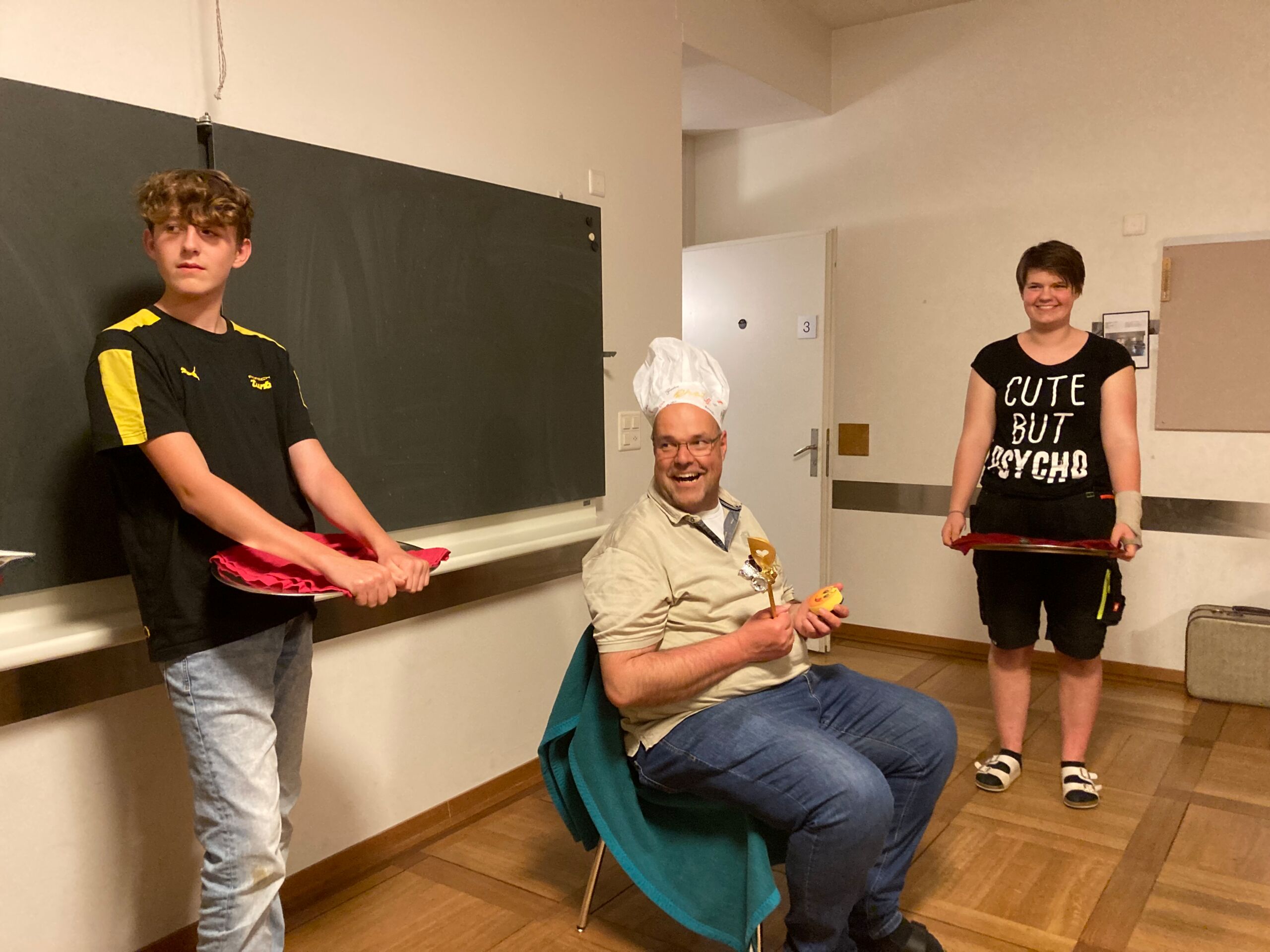 Für den Bunten Abend dachten sich alle Zimmer Sketche aus und trugen diese vor. Diesmal waren es vor allem die Lachmuskeln, die zum Einsatz kamen. Etwas melancholisch wurde es dann ganz zum Schluss, als Stefan Essig für seinen langjährigen Küchen-Dienst in der „Villa Jugend“ bedankt und verabschiedet wurde.