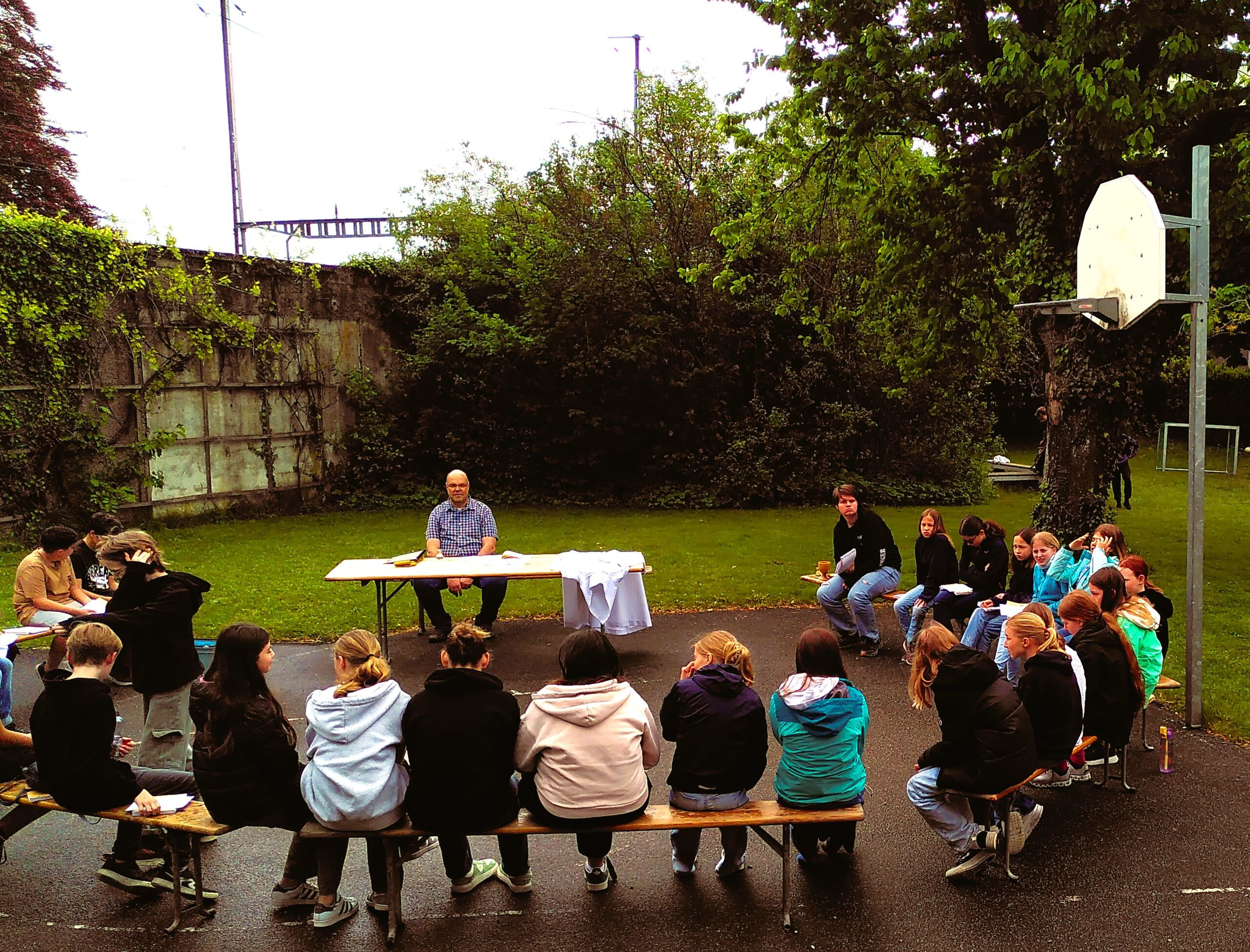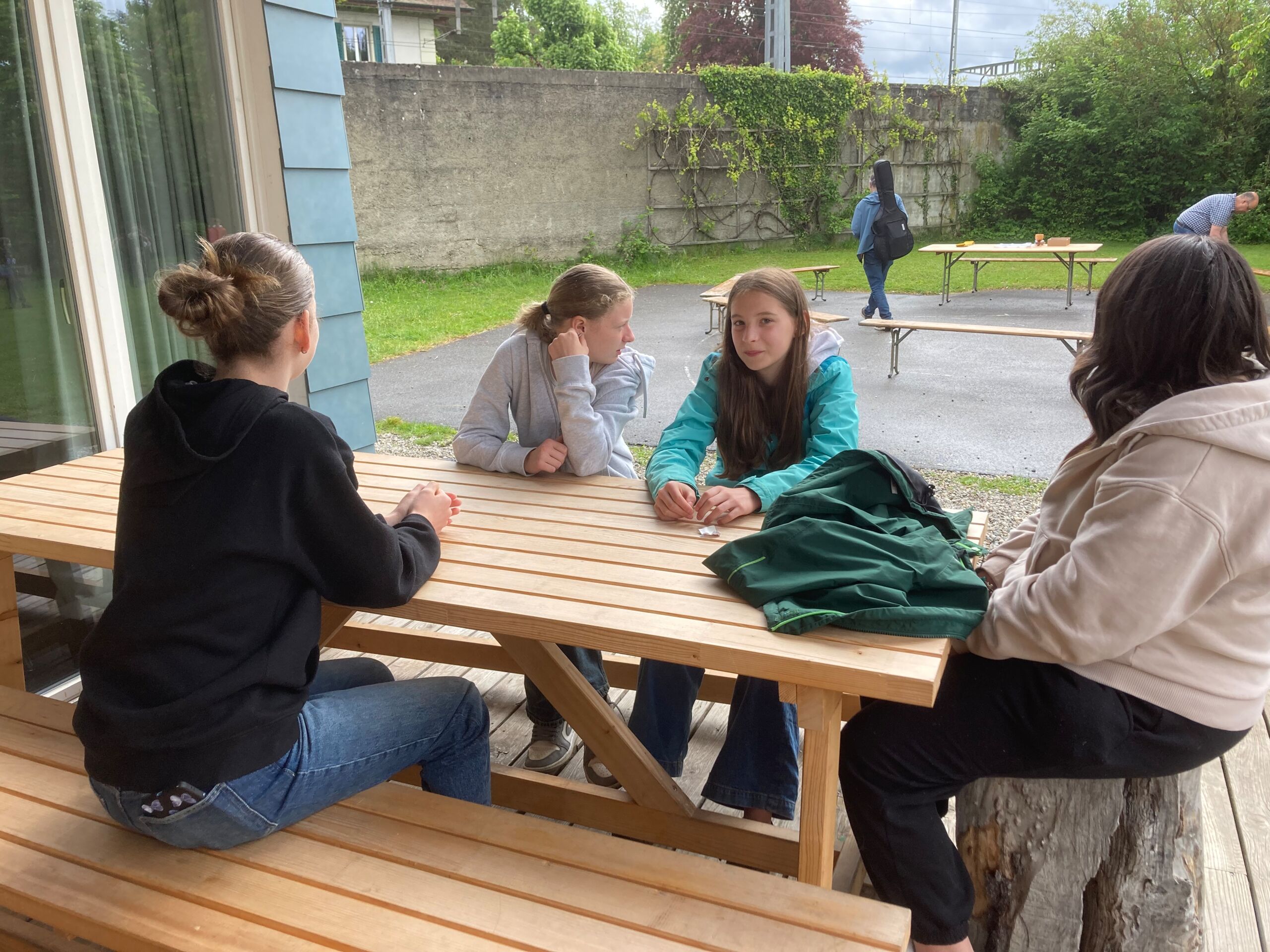 Der Dank für ein schönes, unfallfreies Wochenende, an dem auch das Wetter ganz gut mitgespielt hatte, aber auch der Wunsch für Menschen in Not und für den weiteren Lebensweg der Jugendlichen standen im Gottesdienst am Sonntagmorgen im Mittelpunkt. Weil sich die Regenwolken gerade noch rechtzeitig verzogen hatten, konnte die Feier sogar im Freien vor der Villa stattfinden. Auch der kräftige Gesang liess die starke Gemeinschaft spüren.